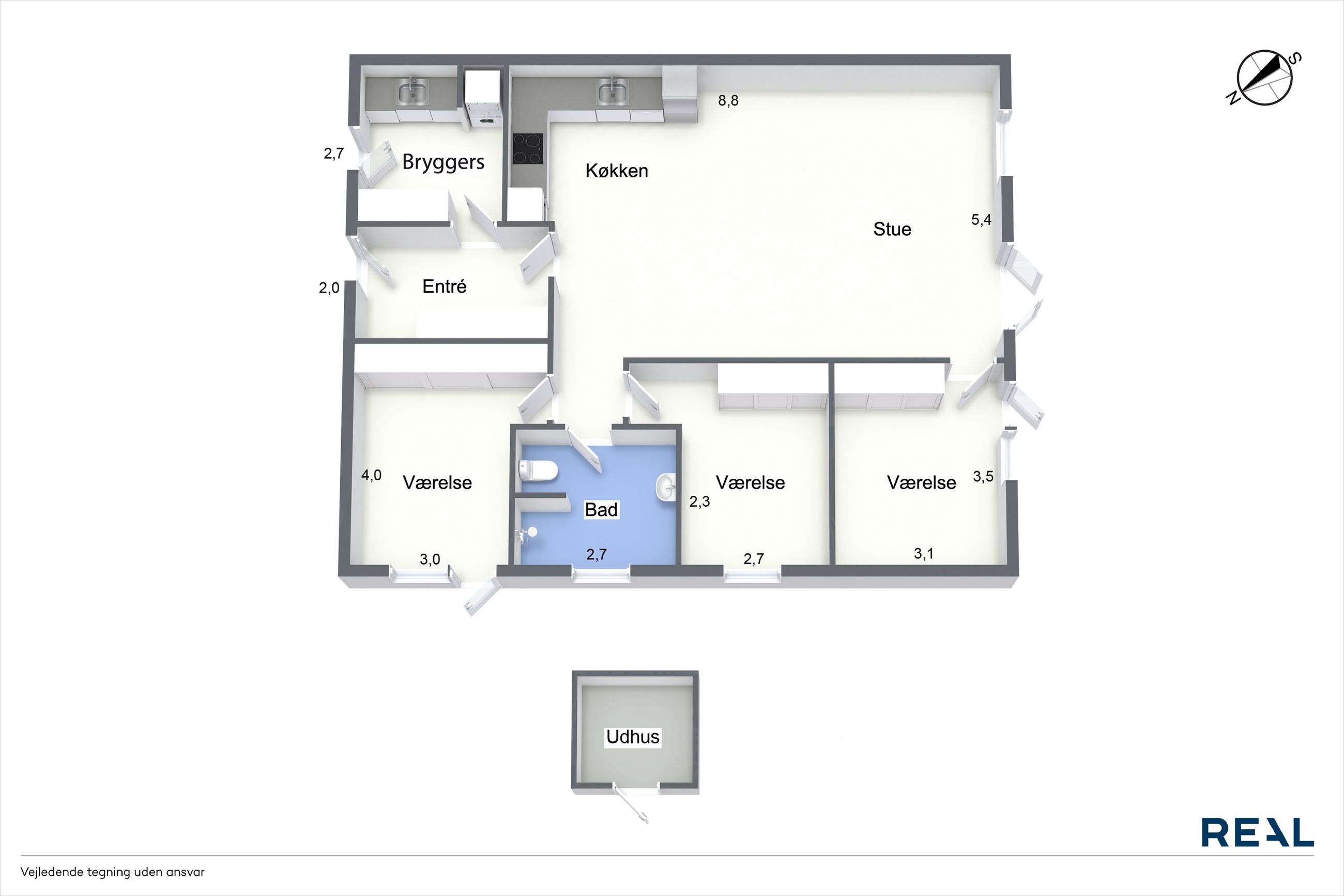 Bemærk: Beregneren gælder for almindelige ejerboliger og sommerhuse. Har du en andelsbolig, ideel anpart, landbrug, nybyg eller ejendom med erhverv? Så giv din lokale mægler et kald for en præcis vurdering.