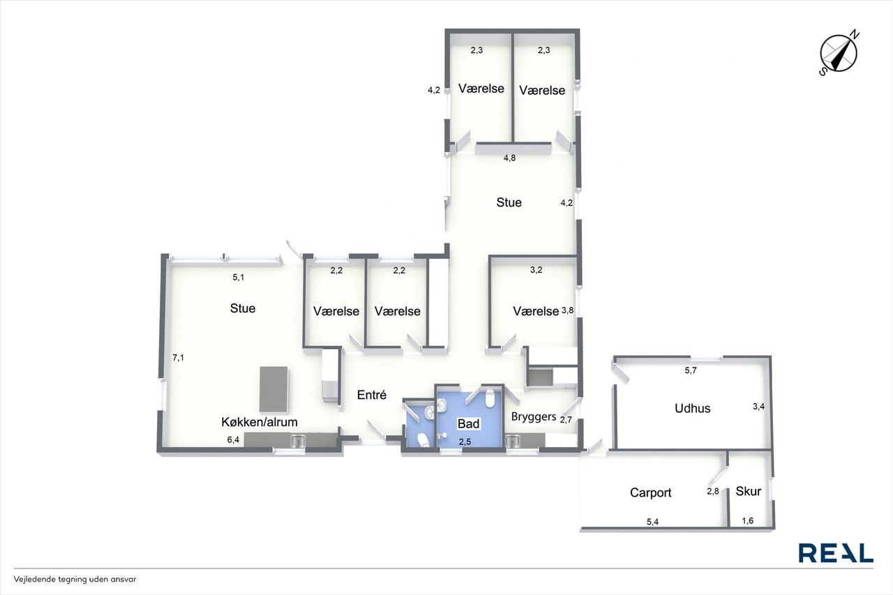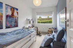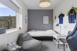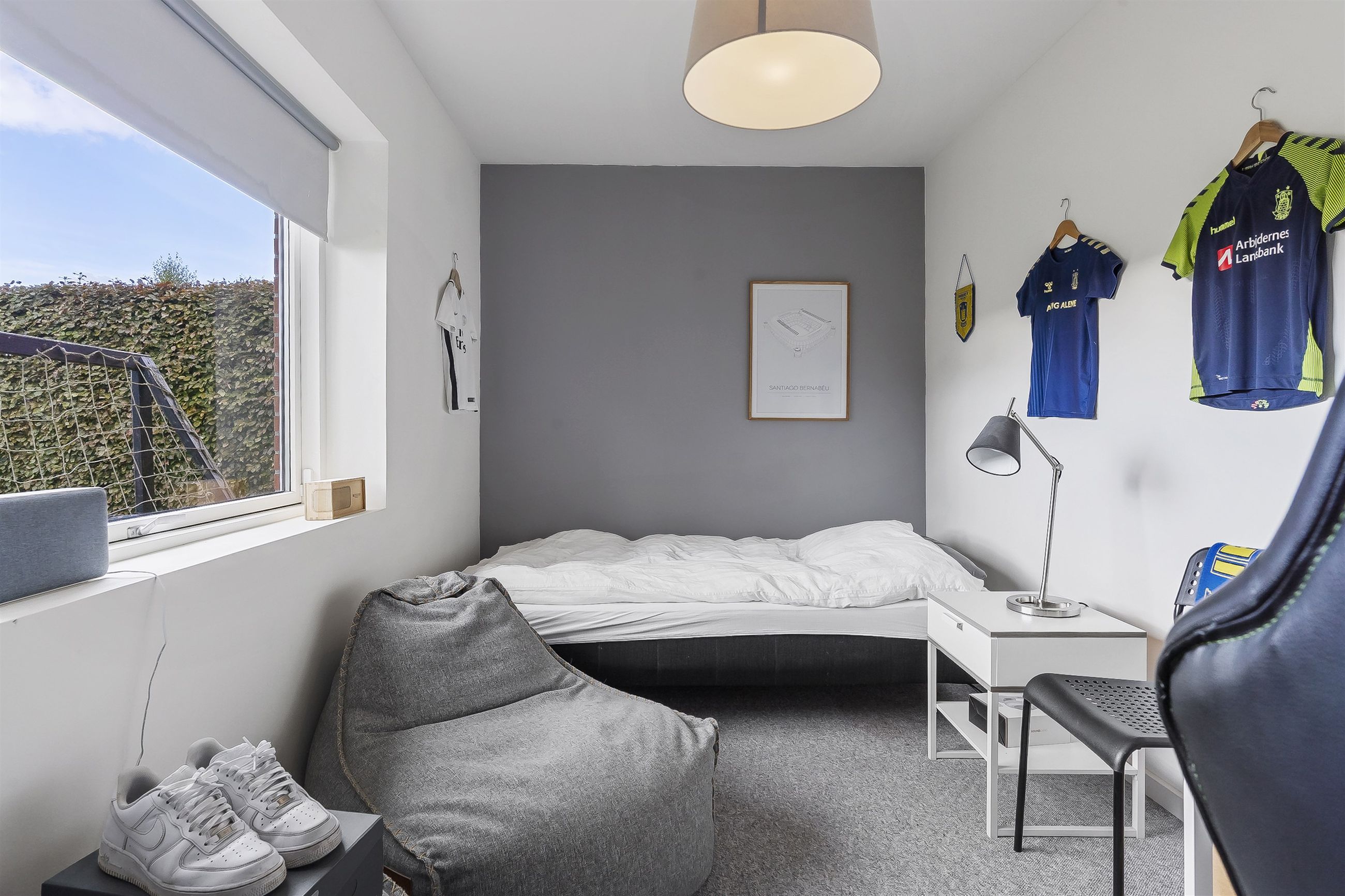 Boligen byder på hele 5 gode soveværelser, fordelt over 3 sektioner i huset, så man har mulighed for både forældreafdeling og børneafdeling. Særligt illustreret ved et stort aktivitetsrum til børnene, med adgang fra to af børneværelserne.