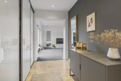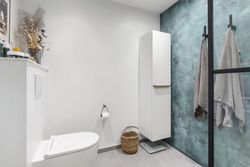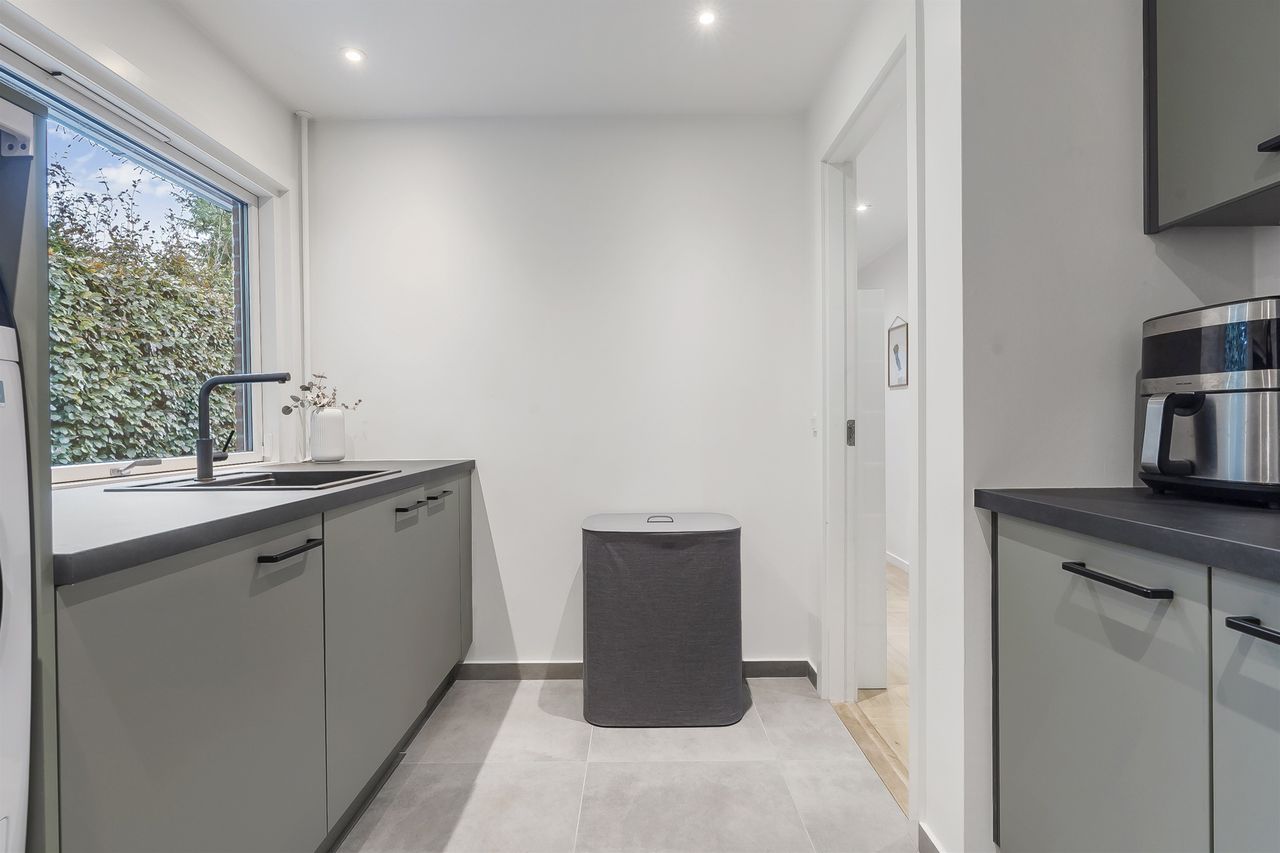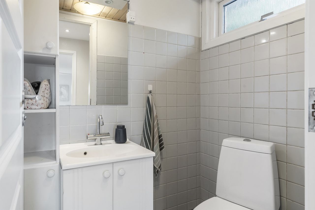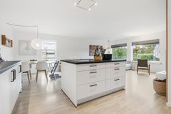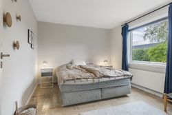 Masser af praktiske indbyggede skabe, så pladsen udnyttes optimalt. Dertil kommer et flot nyistandsat badeværelse og bryggers samt et gæstetoilet.