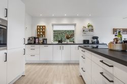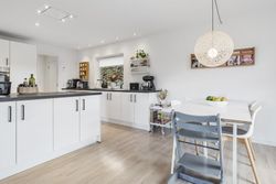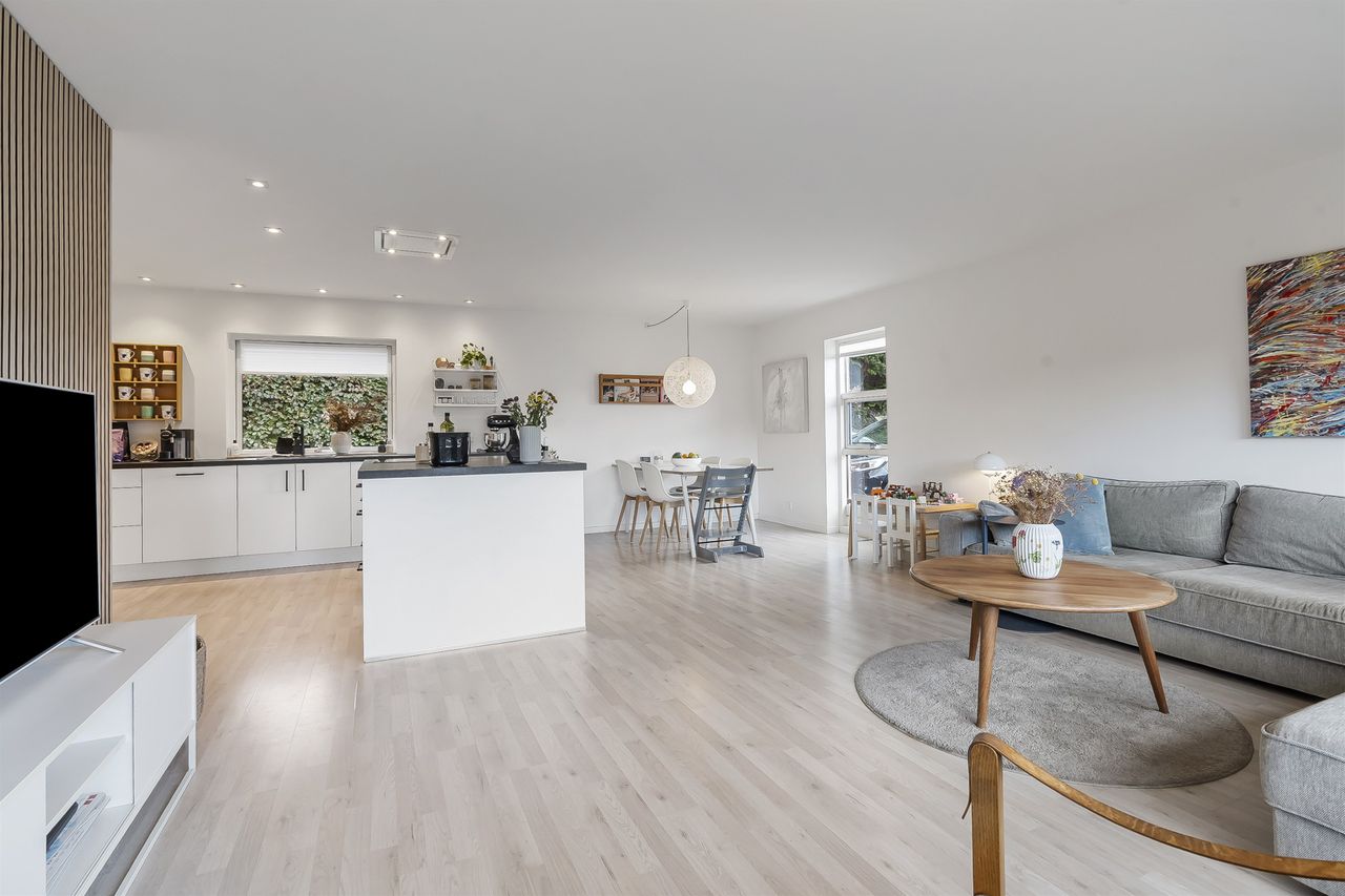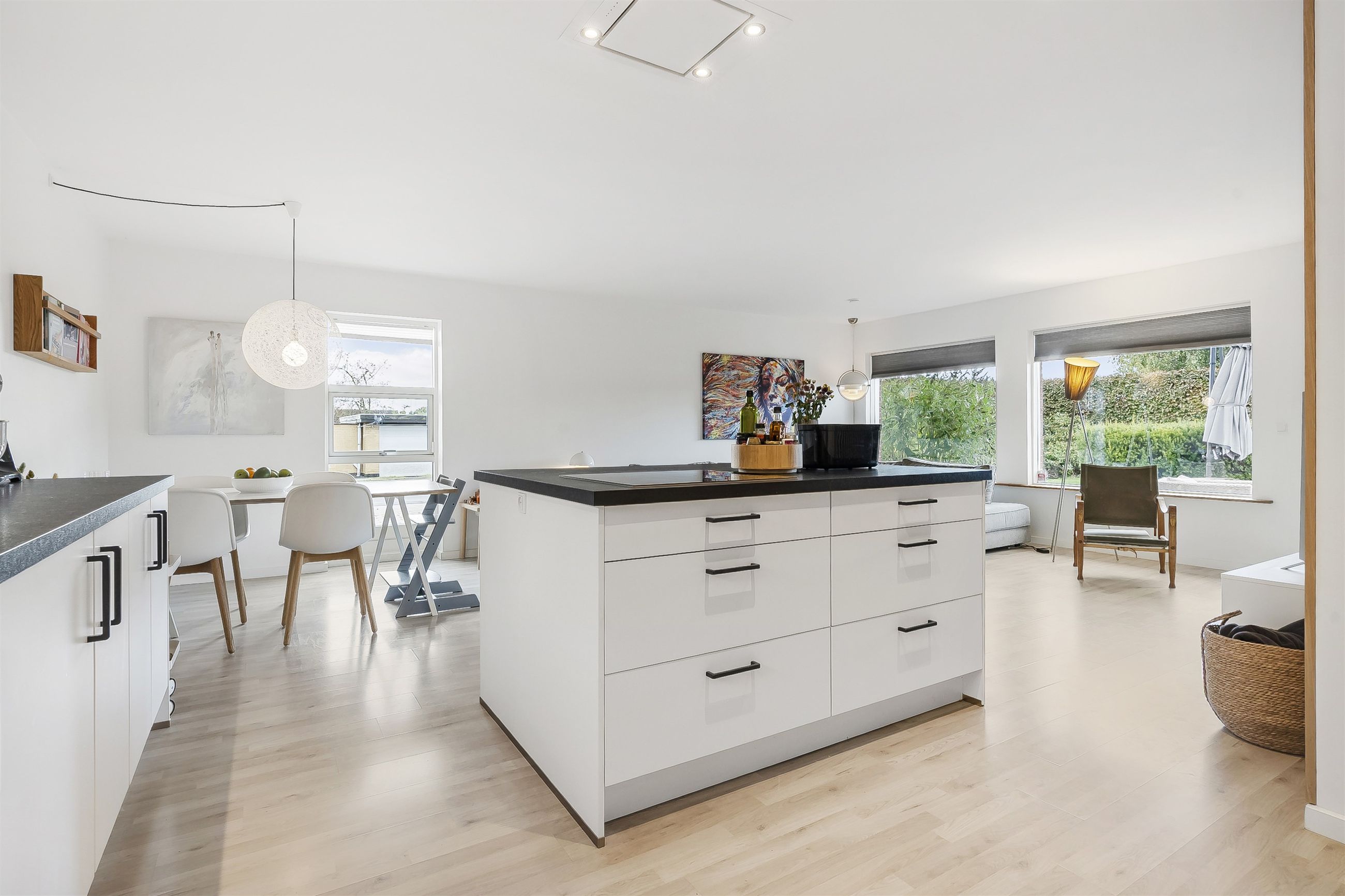 Husets hjerte er det lyse og rummelige køkken-alrum i åben forbindelse med stuen, et naturligt samlingspunkt for både hverdag og festlige stunder. Herfra er der let adgang til husets øvrige rum, og planløsningen gør det nemt at indrette sig som familie.