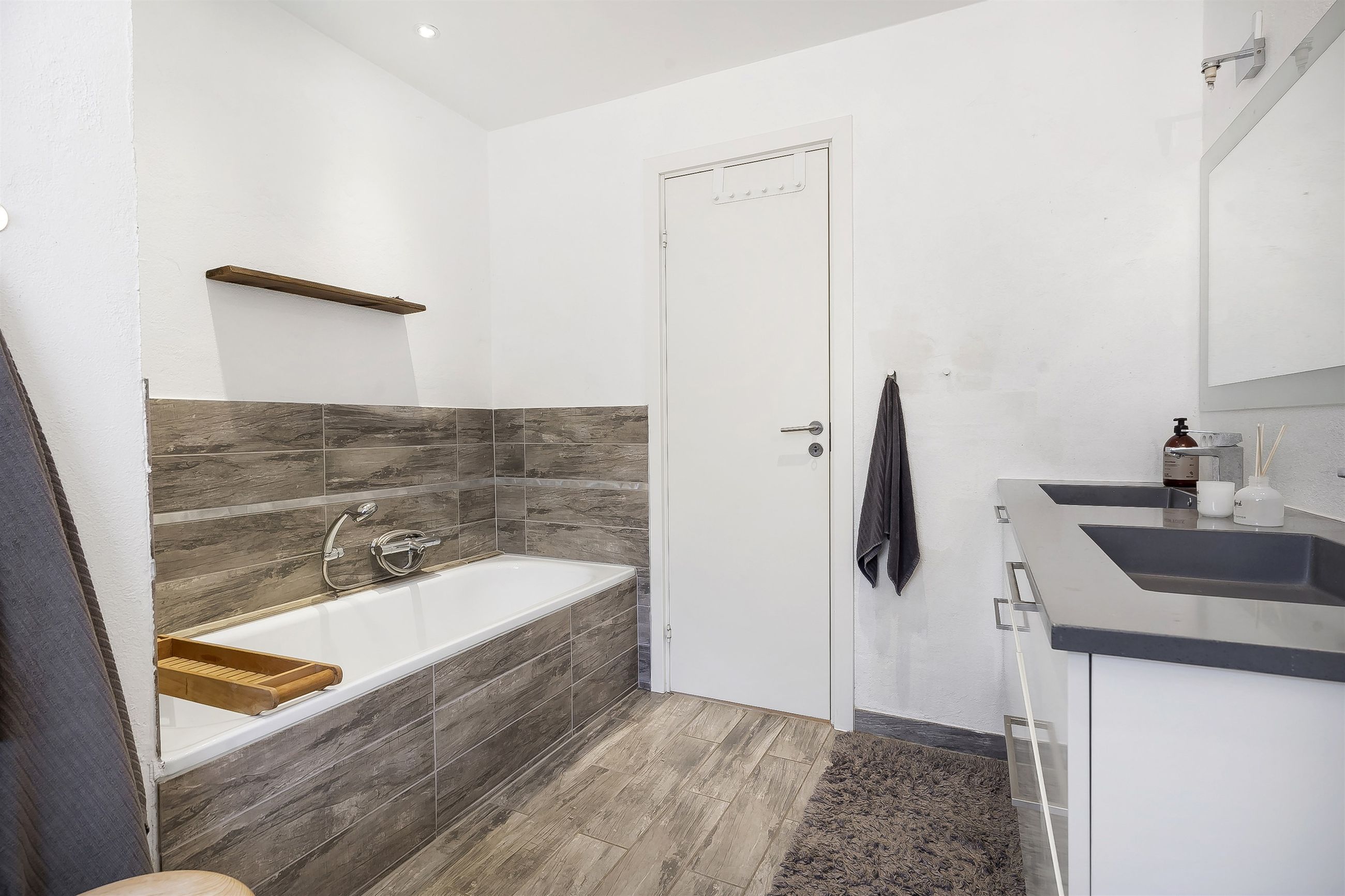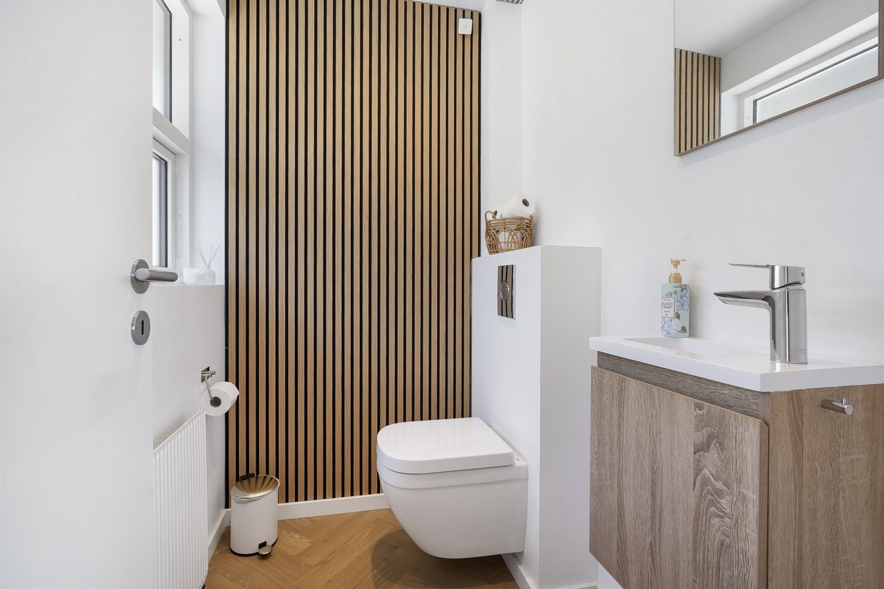 Der er lækre sildebensgulve med gulvvarme.