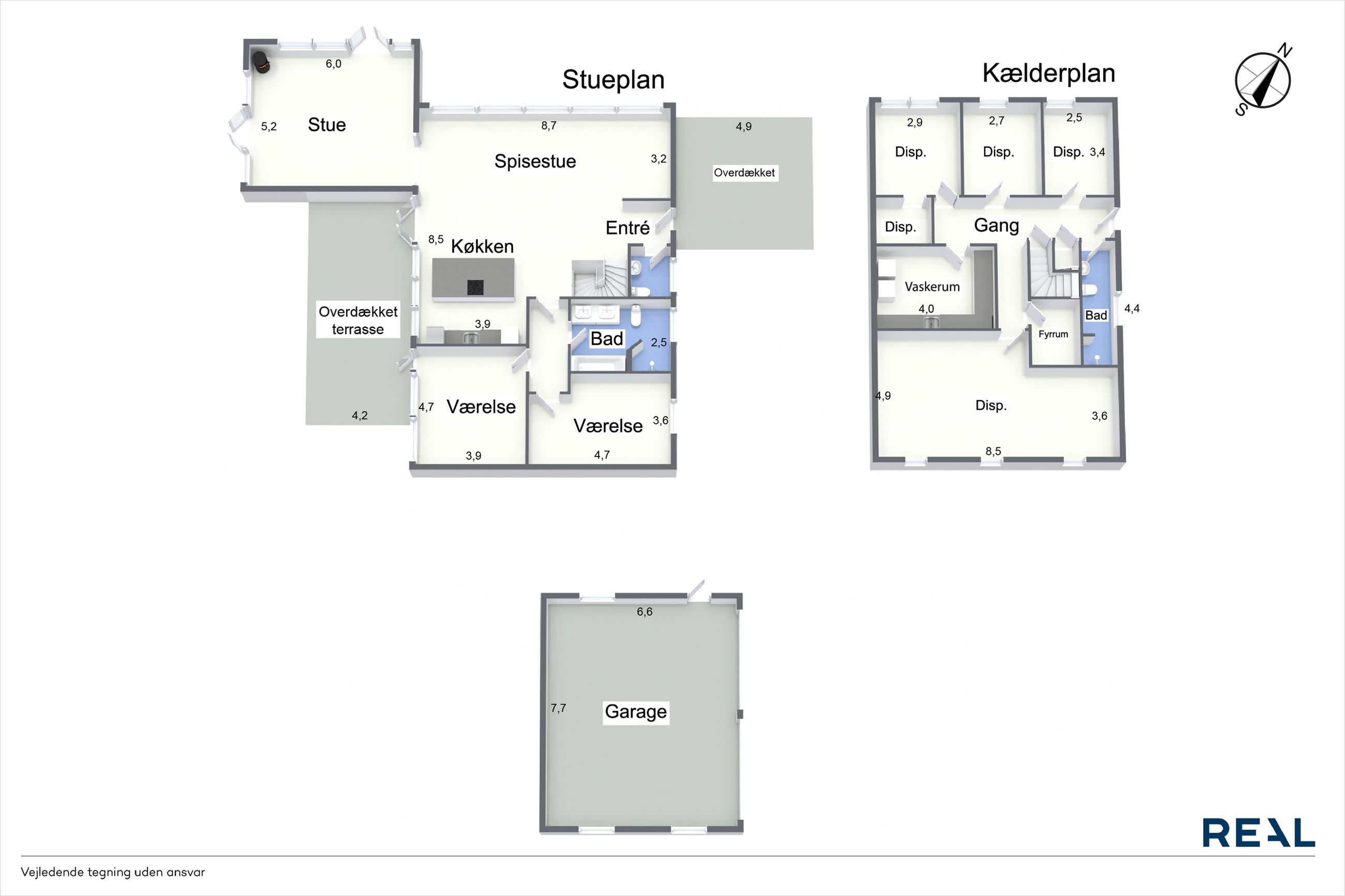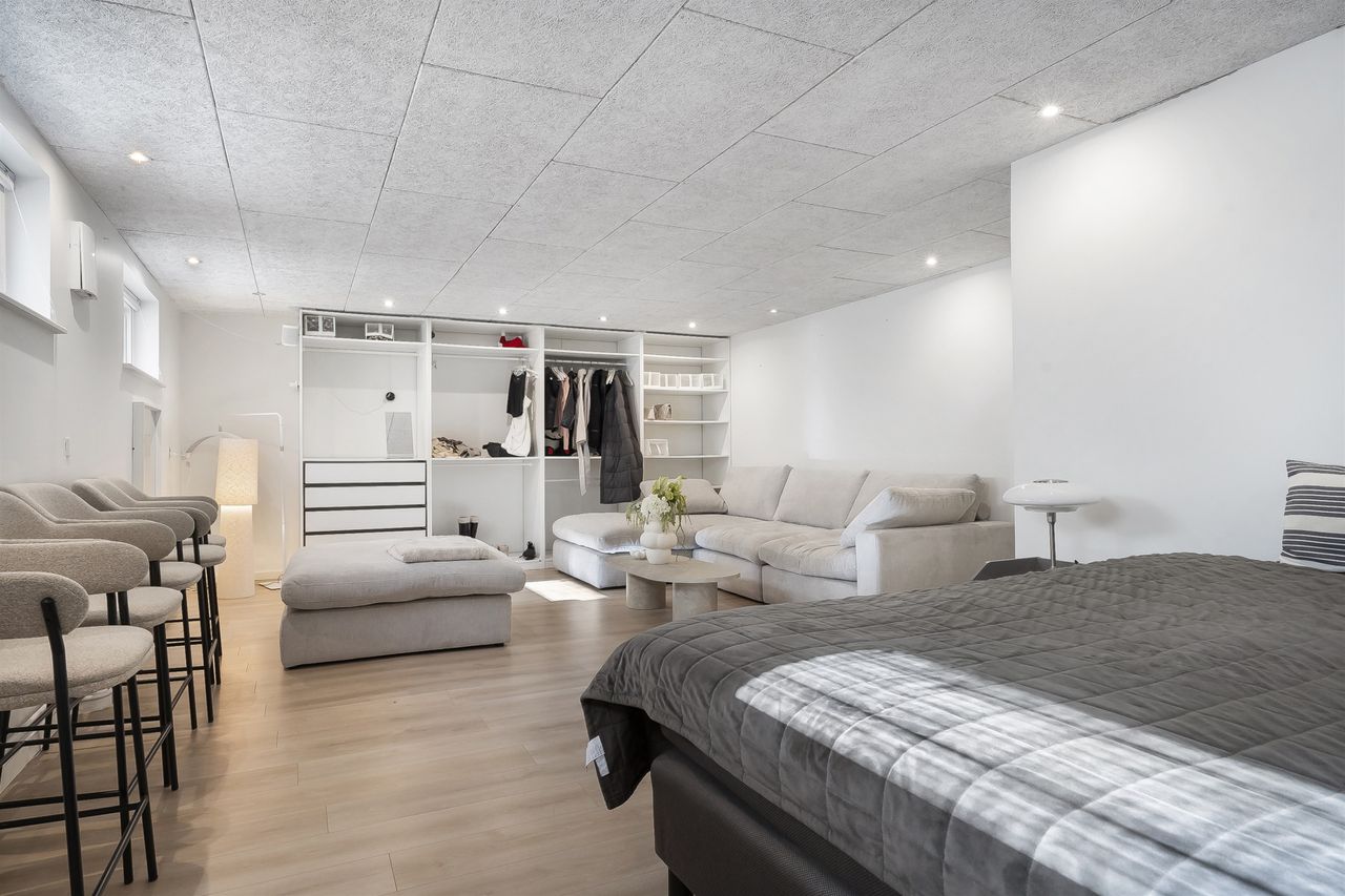 I underetagen er der tre gode disponible rum, et stort bryggers med god vaskefaciliteter og masser af skabs og bordplads. Der er desuden et badeværelse med bruseniche. Fyrrum. Ydermere er der et stort opholdsrum, hvor der er god plads til mange forskellige gøremål.