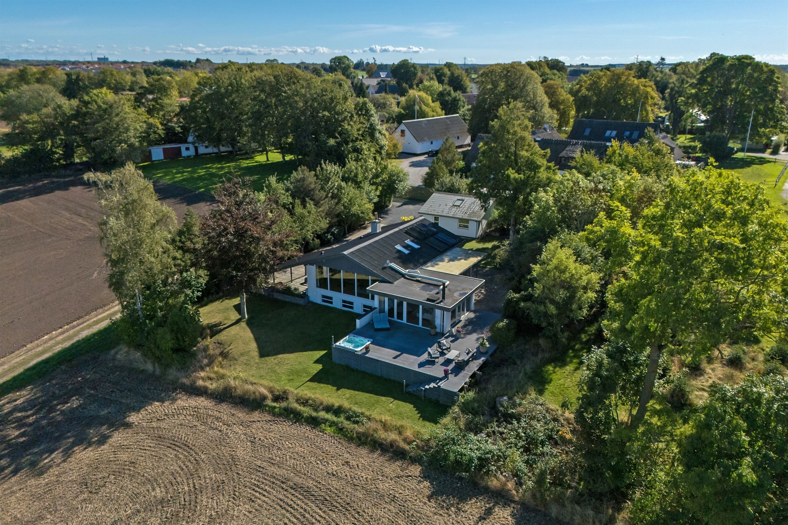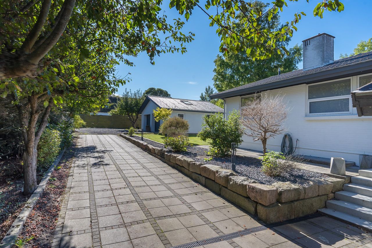 Som prikken over i’et finder du en garage i særklasse fra 2018, isoleret, opvarmet og med dobbeltporte, på hele 60 m2, perfekt til både bilentusiasten og den kvalitetsbevidste køber.