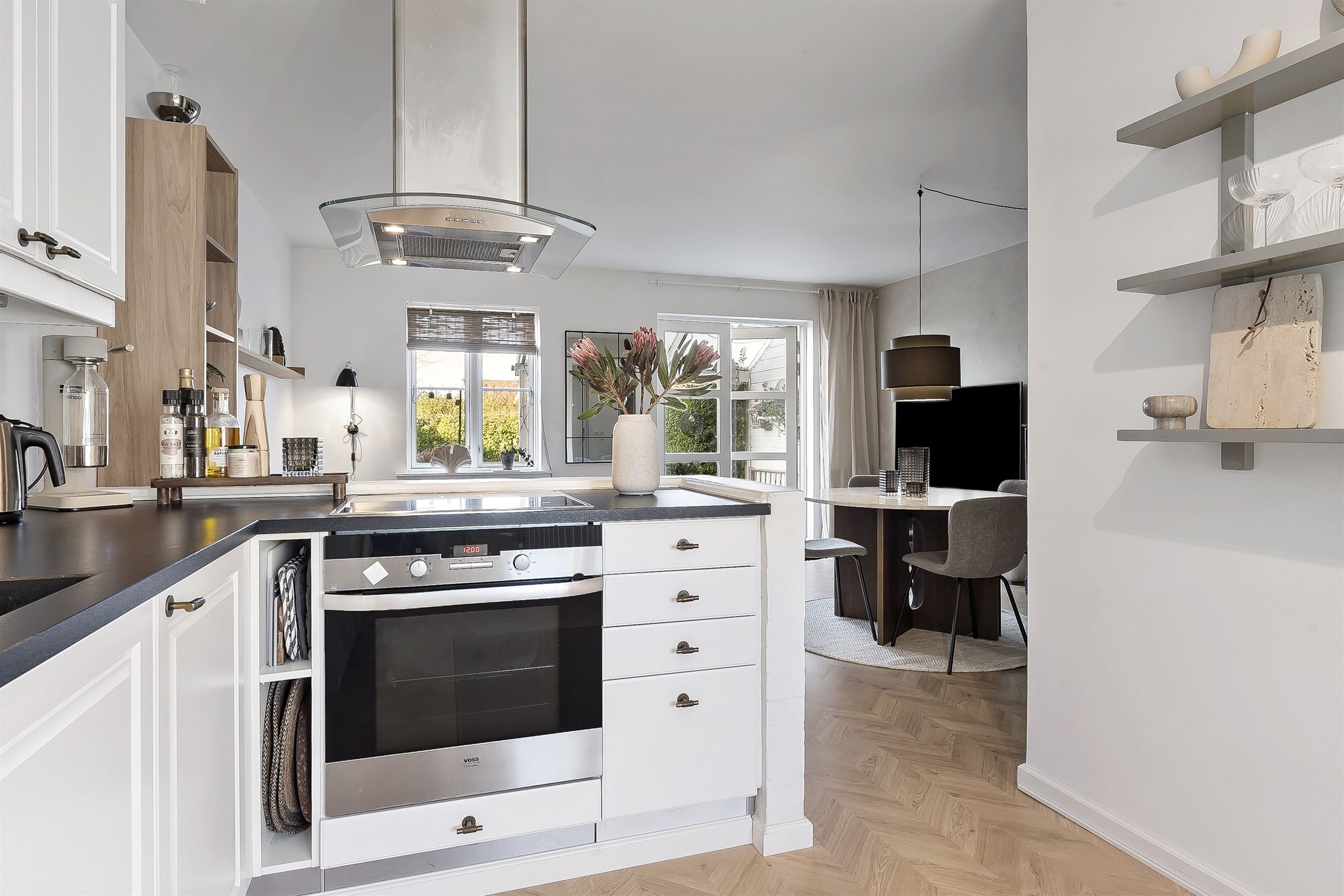 Lækkert moderniseret og indflytningsklart rækkehus i det attraktive Nøddelunden.Boligen fremstår meget indbydende og er istandsat med en gennemgående "rød tråd" vedr. materialevalget, som giver et harmonisk og moderne udtryk, med bl.a. flot køkken og bad, samt fuldspartlet vægge og lofter påsat filt, samt lyse gulve. Ejendommen indeholder:Lys entre med trappe til 1. sal. Entreen er indrettet med vaskefaciliteter under trappen, gemt inde i skabsarrangement. Åbent køkken opført i hvide elementer og med sort bordplade, som står i flot kontrast. Spise- og opholdsstue med udgang til lukket have, med lækker loungeområde. Opholdsstue, terrasse og have, er placeret sydvestvendt og fremstår dermed både lyst og solrigt. 1 sal: Repos/fordelingsgang med adgang til loftrum. Flot brusebadeværelse med muret bruseniche. 2 store værelser Område:Vælger man at bosætte sig i Nøddelunden, er man tæt på stort set det hele. Her er cykelsti hele vejen til Boesagerskolen. Børneinstitution Regnbuen ligger 100 meter væk, ligesom Netto ligger meget tæt på huset. De gode stisystemer i Smørum fører dig ligeledes hurtigt ned til Smørum Centret, hvor der findes indkøb, Pizzaria, frisør og mv. Ved siden af Centret findes Smørums Idrætspark, som har et hav af sportsfaciliteter, ligeledes er Smørum Golfklub lige i nærheden. Nøddelunden er et familievenligt område med grønne områder, legepladser og meget andet. Ejendommen opvarmes med fjernvarme. Der er fibernet installeret. - Moderniseret og indflytningsklart rækkehus- Nye gulve i stueplan fra 2025- Lækkert køkken og badeværelse - Dejlig overdækket terrasse- Skønt og børnevenligt område - Ca. 25 minutter til KBH C.