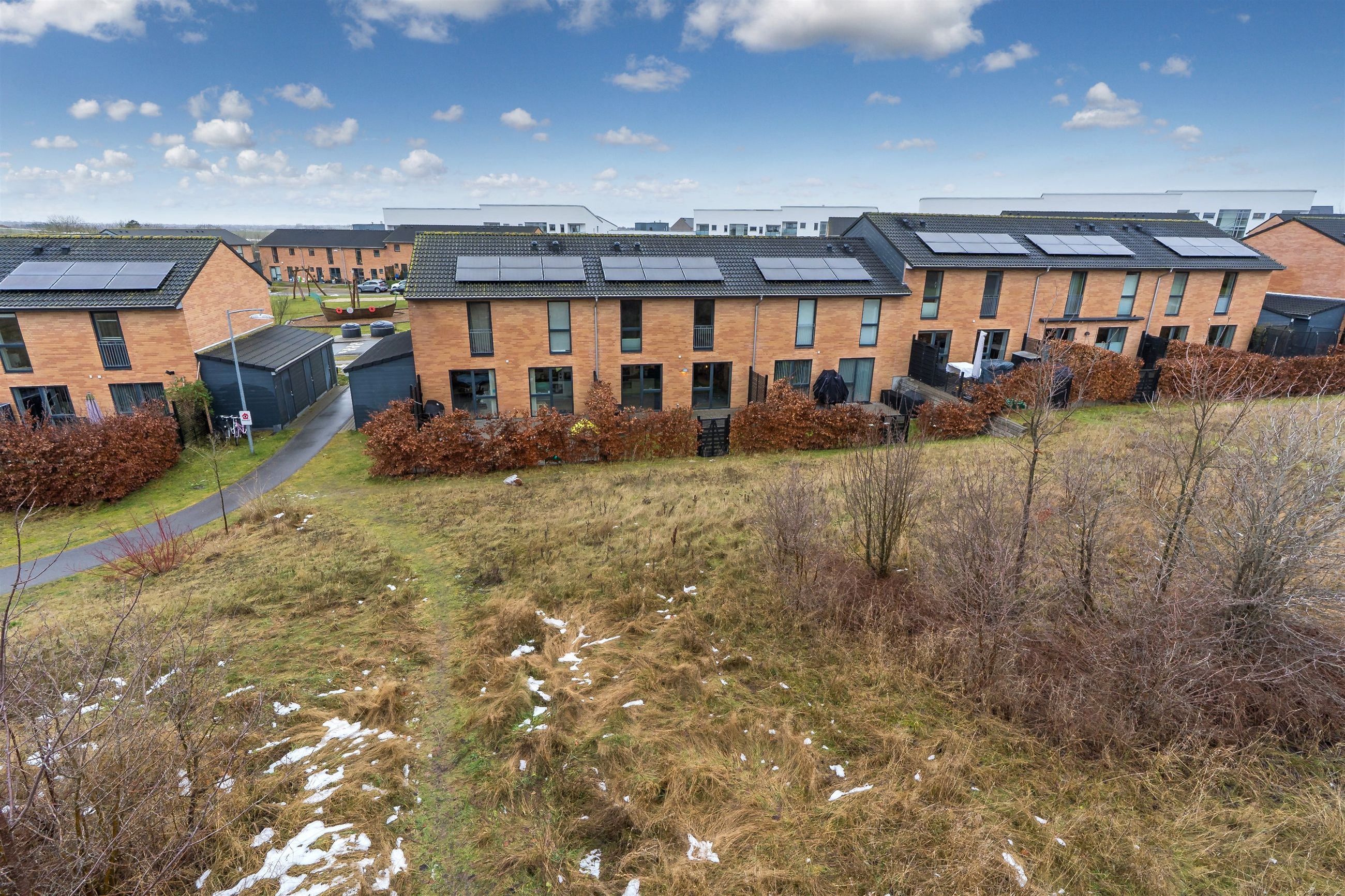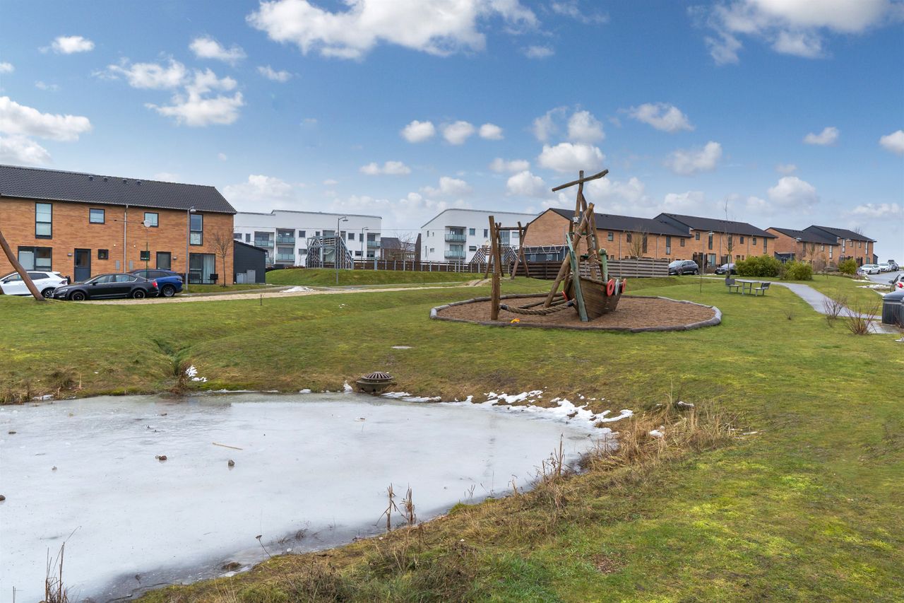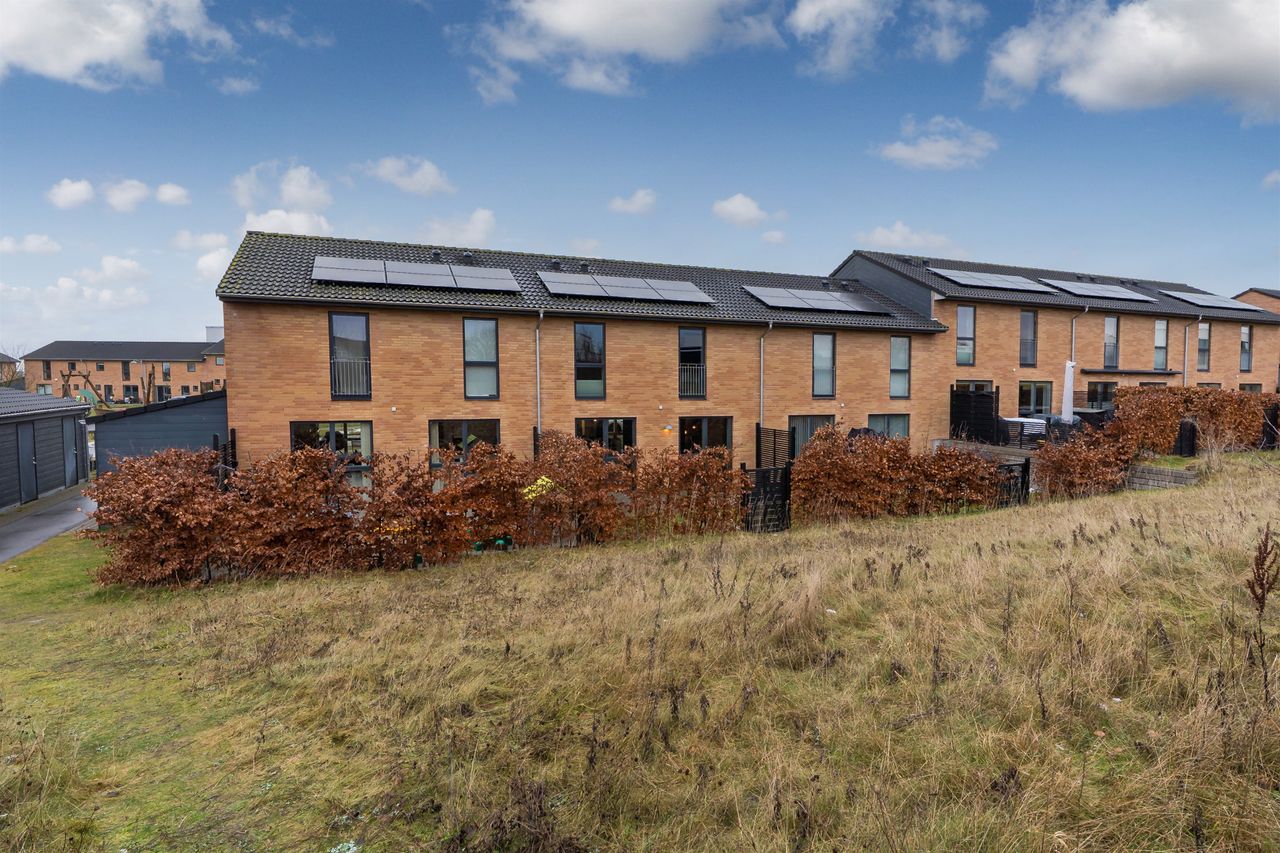 Virkeligt dejligt rækkehus med veludnyttede kvadratmeter, samt lavt energiforbrug og solceller! Kong Knuds Park er en mindre ejerforening med rækkehuse opført i 2015/2016, der er beliggende i "det nye Smørum", som rummer villaer, ejerlejligheder, rækkehuse samt andelslejligheder, som alle er opført indenfor de senere år - alle i dejlige grønne omgivelser. Området er beliggende tæt på Smørum Centret, Smørum Idrætspark, skole samt børneinstitution og i kort afstand til offentlig transport - hvor både Kildedal St. samt Måløv St. kan nås ganske hurtigt. Der er etableret stisystemer som er koblet på Smørums øvrige stier, og mange af de benævnte ting kan derfor nås helt uden at skulle krydse en vej. Ejendommen indeholder: Entré med adgang til kombineret bryggers og gæstetoilet med vaskemaskine og tumbler. Derudover er der en stor og lys opholds-spisestue med godt lysindfald fra de store vinduespartier, opholdsstuen ligger i åben forbindelse med det rummelige og lækre HTH køkken. Fra opholds-spisestuen er der adgang til terrasse og have. 1 sal. byder på repos med adgang til to rummelige børneværelser hvor der er god skabsplads, stort soveværelse med indbyggede skabe. Lækkert flisebadeværelse med masser af skabsplads. Endvidere: Udhus/redskabsrum og solcelleanlæg på taget.