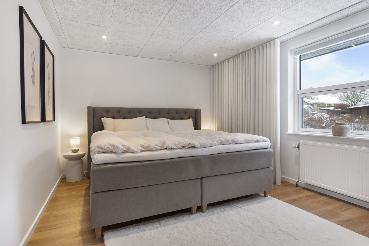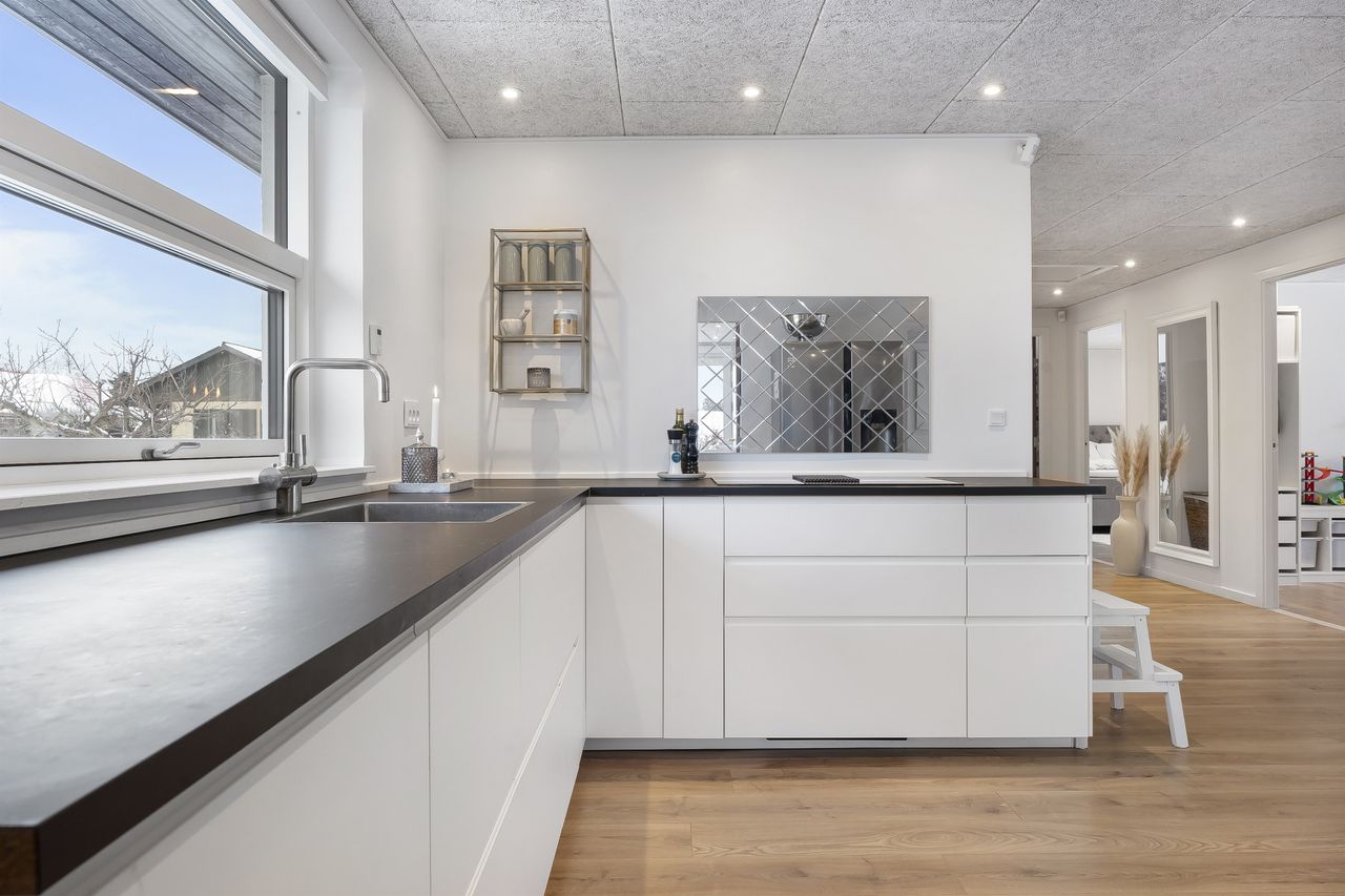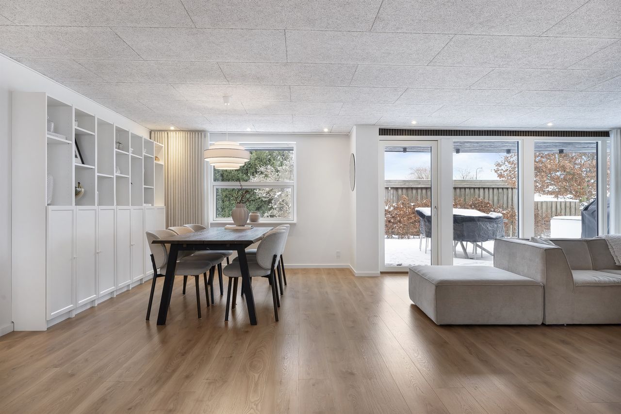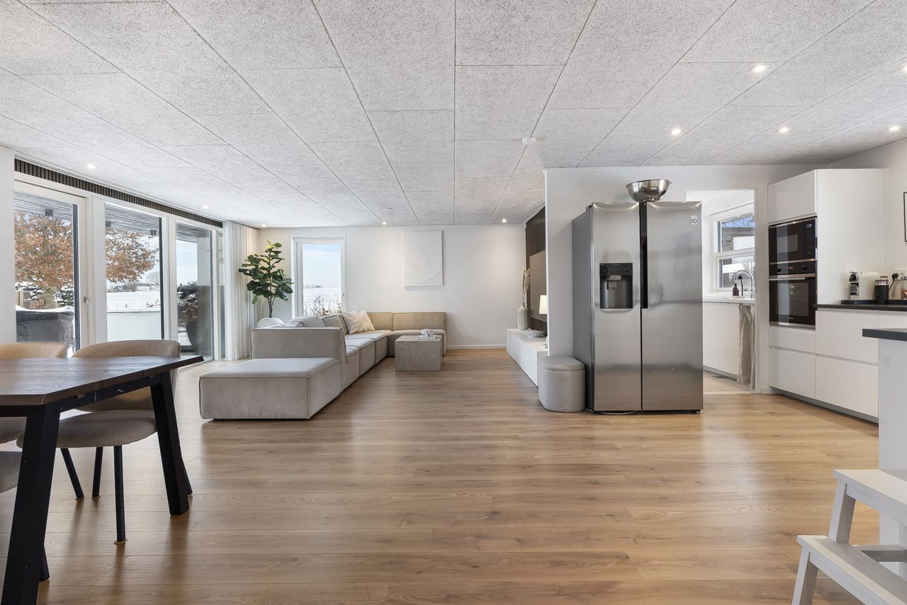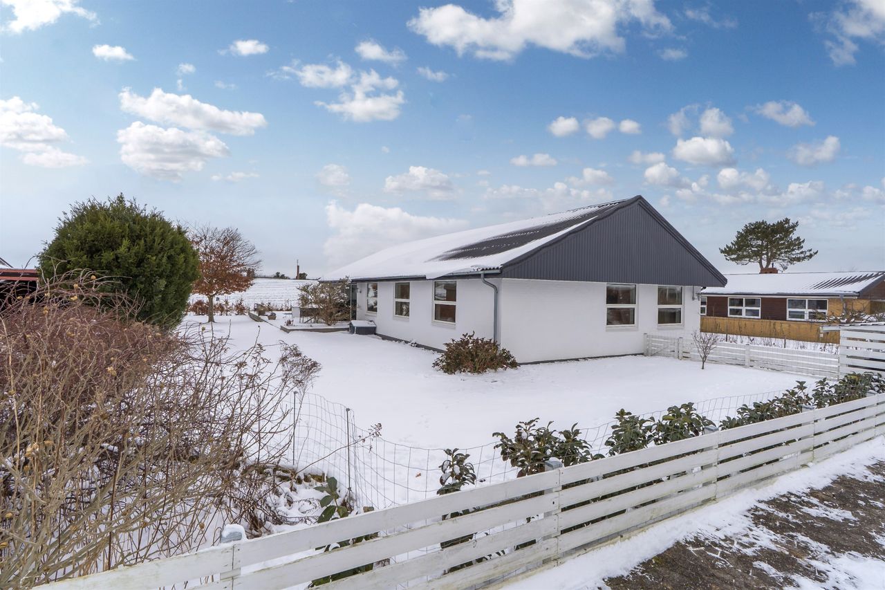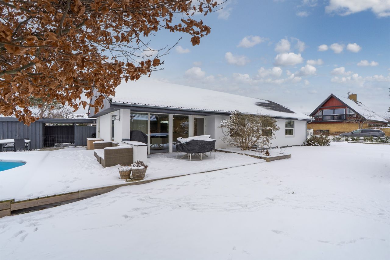 Fantastisk udsigtsejendom i den idylliske og naturrige landsby, Ledøje. Huset har siden 2021 gennemgået en omfattende renoveringsproces. Huset er blevet filset op i hvid, flere tagplader er blevet skiftet og taget er blevet malet og renset. Hævet gangbro og derefter 300 mm. isolering på loftet. Nye lavenergivinduer, heriblandt et helt nyetableret vinduesparti, med henblik på at udnytte den skønne udsigt.Alle gulve, isolering mv. er taget op og der er lagt ny isolering i gulvene (120 mm), dampspærre, radonspærre, gulvvarme (ikke i soveværelserne), støbt og lagt nye gulve. Troldtekt lofter over det hele, hvilket giver en fremragende akustik. Nyt gasfyr i 2023. Alt el er udskiftet og ny tavle er installeret. To nye badeværelser. Nyt køkken. Vægge er i den forbindelse fjernet, for at åbne mellem køkken og stue.Etablering af stor fliseindkørsel og ligeledes stor og lækker træterrasse. Installeret spots i carport. Der er nyligt plantet kirsebærlaurbær hæk i forhaven mod vejen. Herudover er der installeret ny pumpe til poolen. Huset blev malet indvendigt i 2025. Gennemistandsat étplanshus indeholder: - Entre - Lækkert nyistandsat badeværelse fra 2022 med gulvvarme- Hele tre gode børneværelser/kontor- Stort forældresoveværelse (16,5 m2)- Endnu et nyistandsat badeværelse fra 2022 med gulvvarme- Stor og åben opholdsstue med fantastisk lysindfald og udsigt via de store gulv-til-loft vinduer og udgang til træterrasse med pool område og udsigt til de åbne marker- Dejligt køkken fra 2022 i hvide elementer og sort bordplader. Masser af skuffer og gode hårde hvidevarer. Der er gulvvarme i stue og køkken- Bryggers med gode vaskefaciliteter (heriblandt helt ny vaskemaskine) og ligeledes med udsigt til markerne. Gulvvarme i bryggers Endvidere: - Stor fliseindkørsel, carport og to udhuse Landsbyen Ledøje:Her får du glæde af fredfyldte omgivelser blandt søer, marker, gadekær og ikke mindst den områdekendte og særdeles populære 'Jordbærgården'. Der er sti langs marker direkte til Vestskoven og den gamle Vikinge landsby i Risby.Derudover er der cykelsti til Smørum, hvor du på ganske kort tid kommer direkte til Smørum Golfklub. Herudover Boesagerskolen, Smørum Centret, Smørum Idrætshal og bibliotek. Der er børnehave lokalt i Ledøje.Trods de landlige omgivelser, er der under 5 minutters kørsel til indkøb i Netto. Nogenlunde samme tid tager det, at tage den nyere tværvej til Smørum Centeret eller Idrætsklubben. På omkring 10 minutters kørsel når du Ballerup Centeret og Ballerup Station. Der er ca. 25 minutters kørsel til indre København, via den nyere motorsvejstilkørsel mellem Ledøje og Smørum. - Fantastisk udsigt over marker- Gulvvarme i hele huset (på nær værelser)- Gennemistandsat ude og inde- Under 25 minutter til København- 5 minutter til Vestskoven