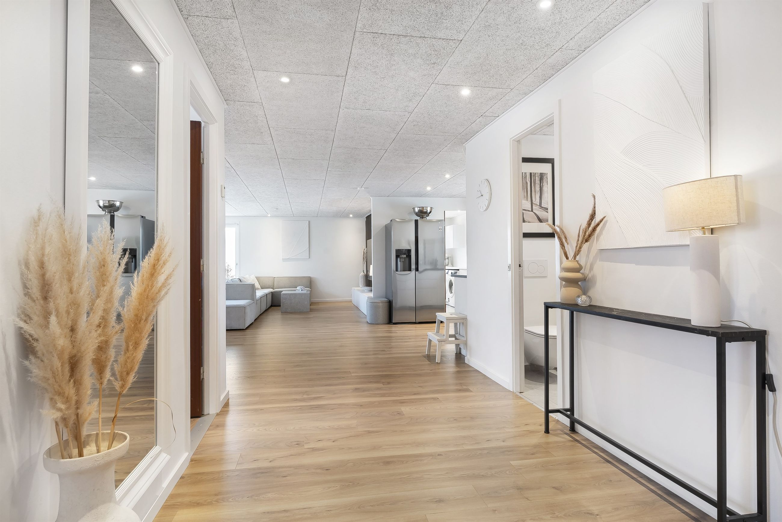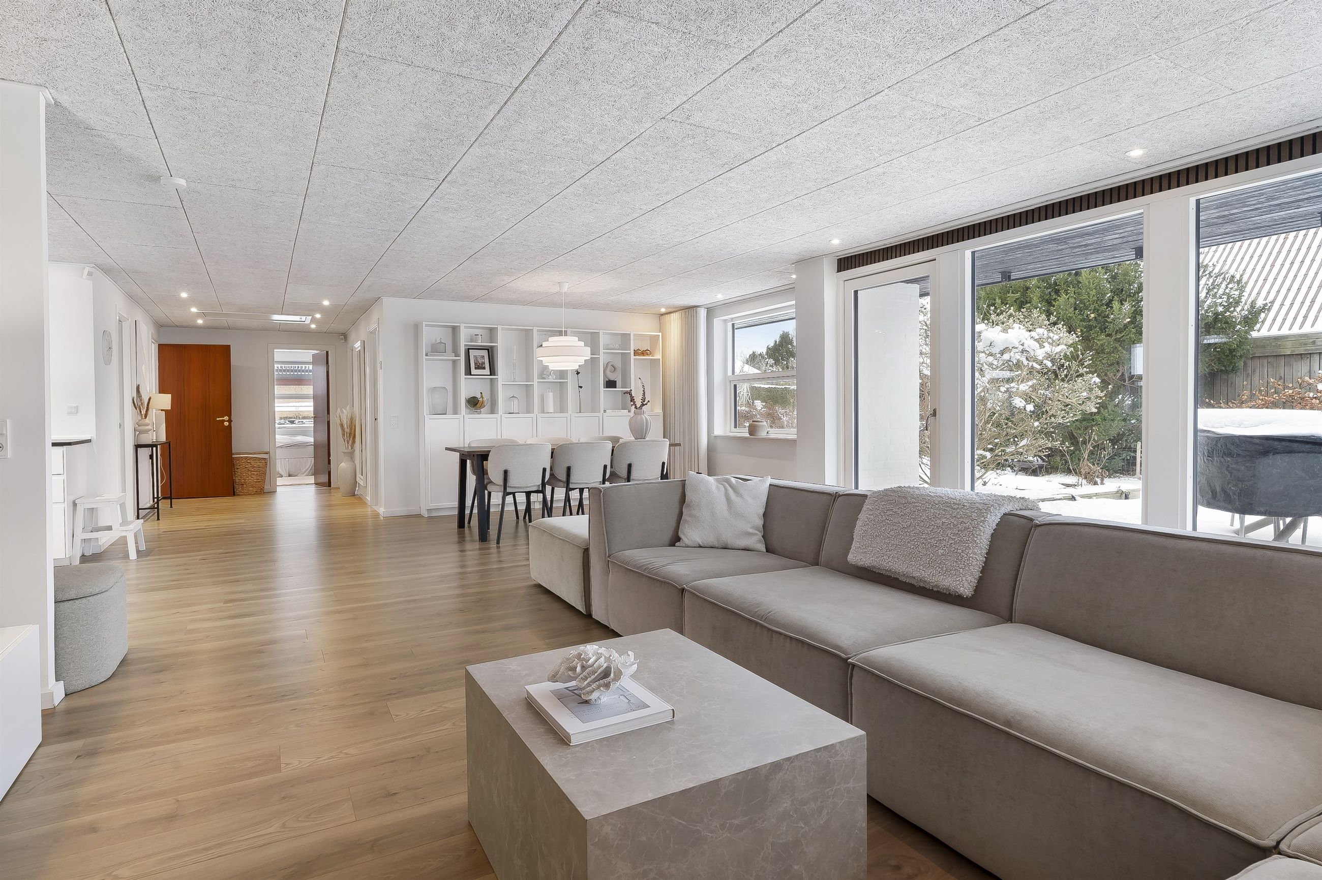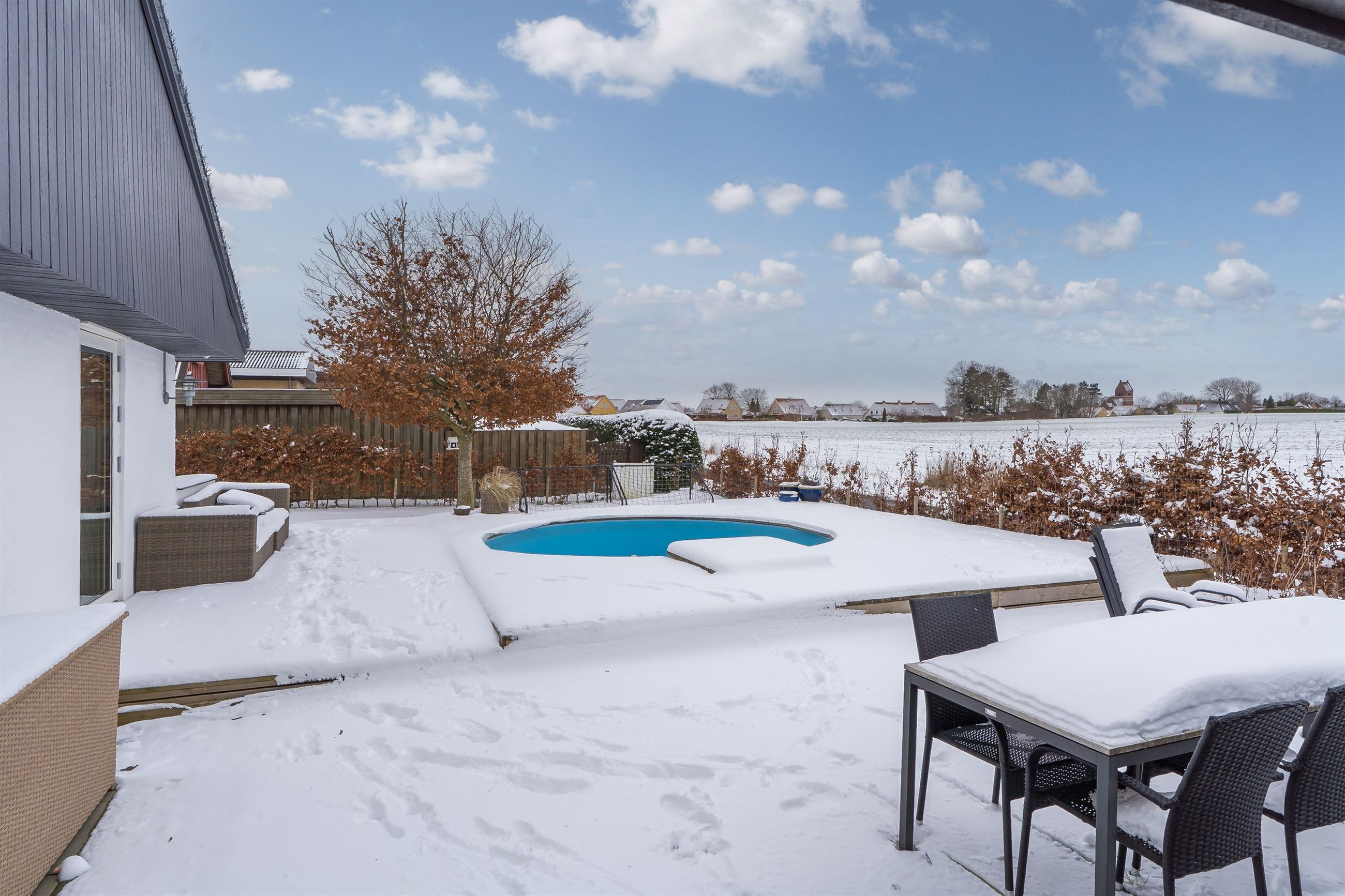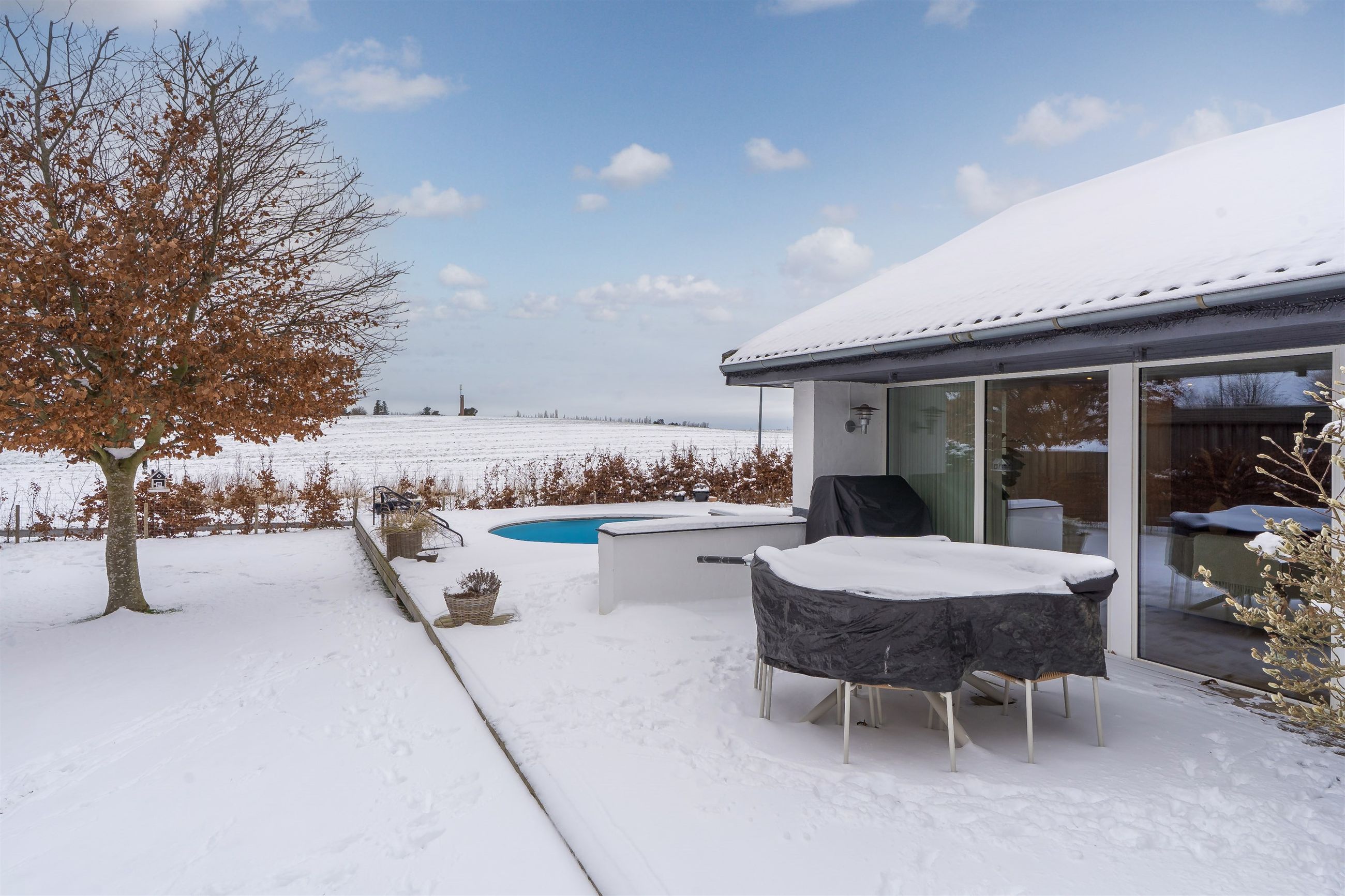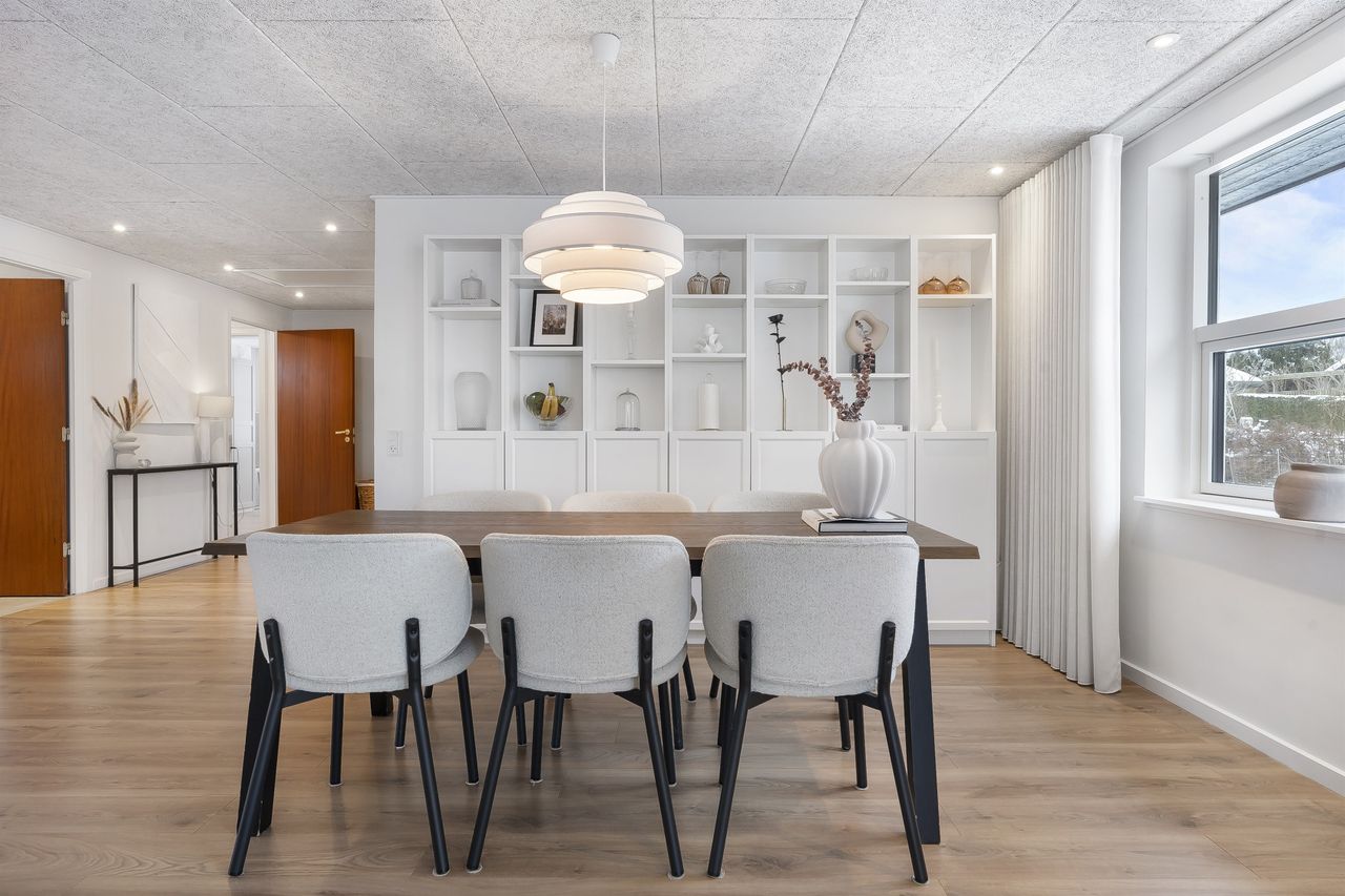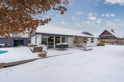Fantastisk udsigtsejendom i den idylliske og naturrige landsby, Ledøje. Huset har siden 2021 gennemgået en omfattende renoveringsproces. Huset er blevet filset op i hvid, flere tagplader er blevet skiftet og taget er blevet malet og renset. Hævet gangbro og derefter 300 mm. isolering på loftet. Nye lavenergivinduer, heriblandt et helt nyetableret vinduesparti, med henblik på at udnytte den skønne udsigt.Alle gulve, isolering mv. er taget op og der er lagt ny isolering i gulvene (120 mm), dampspærre, radonspærre, gulvvarme (ikke i soveværelserne), støbt og lagt nye gulve. Troldtekt lofter over det hele, hvilket giver en fremragende akustik. Nyt gasfyr i 2023. Alt el er udskiftet og ny tavle er installeret. To nye badeværelser. Nyt køkken. Vægge er i den forbindelse fjernet, for at åbne mellem køkken og stue.Etablering af stor fliseindkørsel og ligeledes stor og lækker træterrasse. Installeret spots i carport. Der er nyligt plantet kirsebærlaurbær hæk i forhaven mod vejen. Herudover er der installeret ny pumpe til poolen. Huset blev malet indvendigt i 2025. Gennemistandsat étplanshus indeholder: - Entre - Lækkert nyistandsat badeværelse fra 2022 med gulvvarme- Hele tre gode børneværelser/kontor- Stort forældresoveværelse (16,5 m2)- Endnu et nyistandsat badeværelse fra 2022 med gulvvarme- Stor og åben opholdsstue med fantastisk lysindfald og udsigt via de store gulv-til-loft vinduer og udgang til træterrasse med pool område og udsigt til de åbne marker- Dejligt køkken fra 2022 i hvide elementer og sort bordplader. Masser af skuffer og gode hårde hvidevarer. Der er gulvvarme i stue og køkken- Bryggers med gode vaskefaciliteter (heriblandt helt ny vaskemaskine) og ligeledes med udsigt til markerne. Gulvvarme i bryggers Endvidere: - Stor fliseindkørsel, carport og to udhuse Landsbyen Ledøje:Her får du glæde af fredfyldte omgivelser blandt søer, marker, gadekær og ikke mindst den områdekendte og særdeles populære 'Jordbærgården'. Der er sti langs marker direkte til Vestskoven og den gamle Vikinge landsby i Risby.Derudover er der cykelsti til Smørum, hvor du på ganske kort tid kommer direkte til Smørum Golfklub. Herudover Boesagerskolen, Smørum Centret, Smørum Idrætshal og bibliotek. Der er børnehave lokalt i Ledøje.Trods de landlige omgivelser, er der under 5 minutters kørsel til indkøb i Netto. Nogenlunde samme tid tager det, at tage den nyere tværvej til Smørum Centeret eller Idrætsklubben. På omkring 10 minutters kørsel når du Ballerup Centeret og Ballerup Station. Der er ca. 25 minutters kørsel til indre København, via den nyere motorsvejstilkørsel mellem Ledøje og Smørum. - Fantastisk udsigt over marker- Gulvvarme i hele huset (på nær værelser)- Gennemistandsat ude og inde- Under 25 minutter til København- 5 minutter til Vestskoven