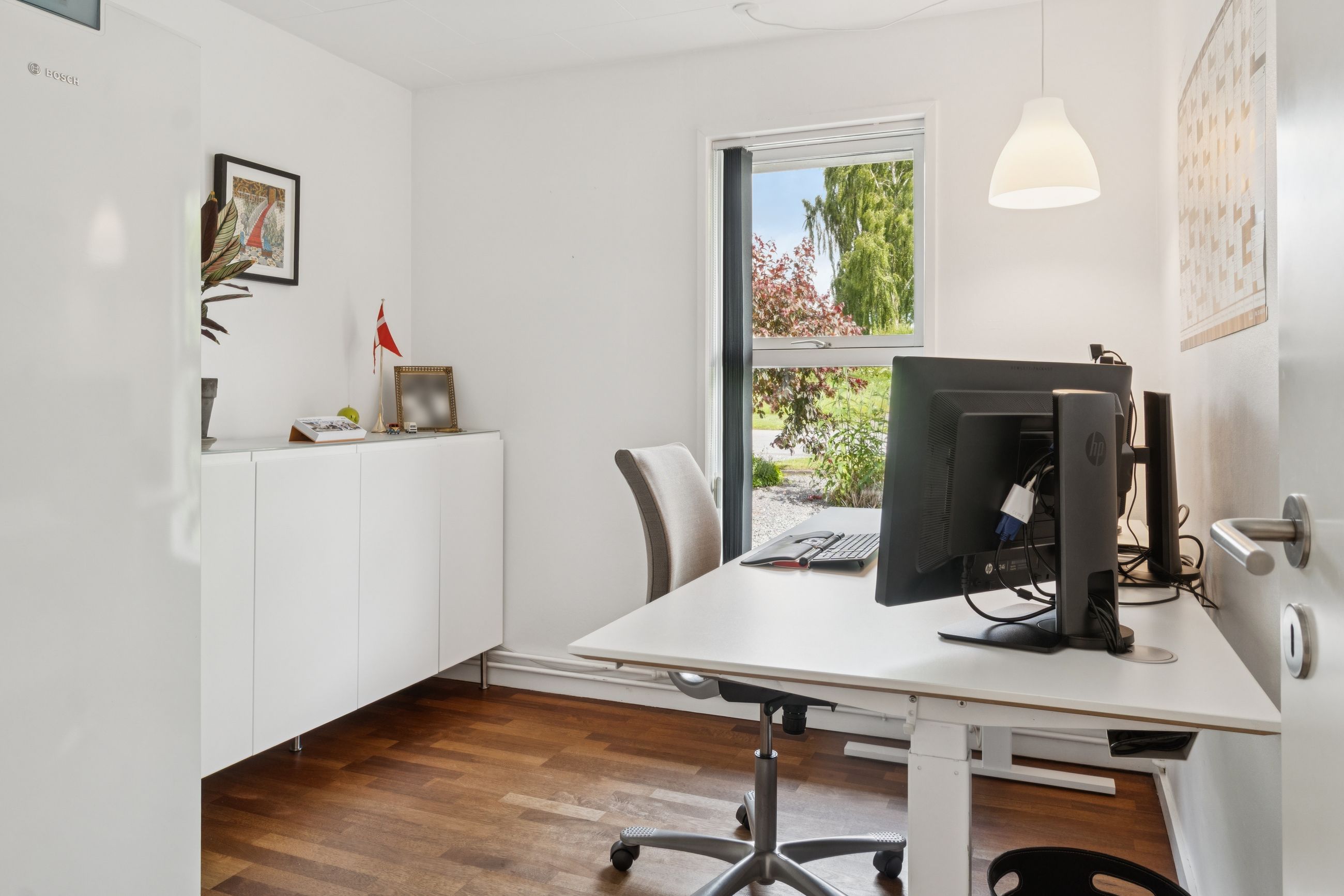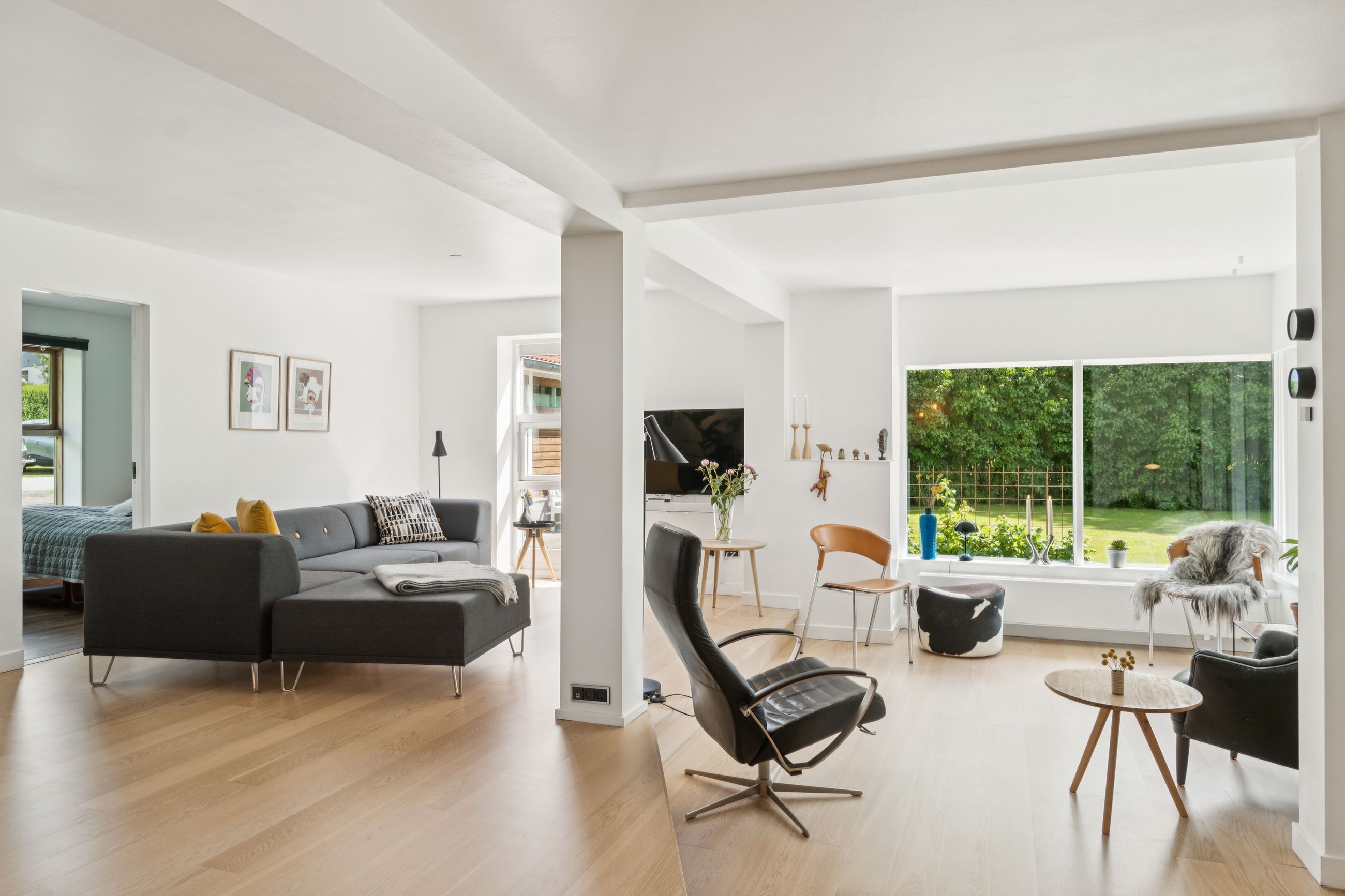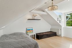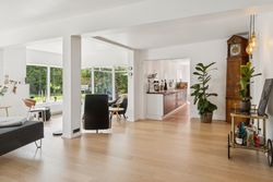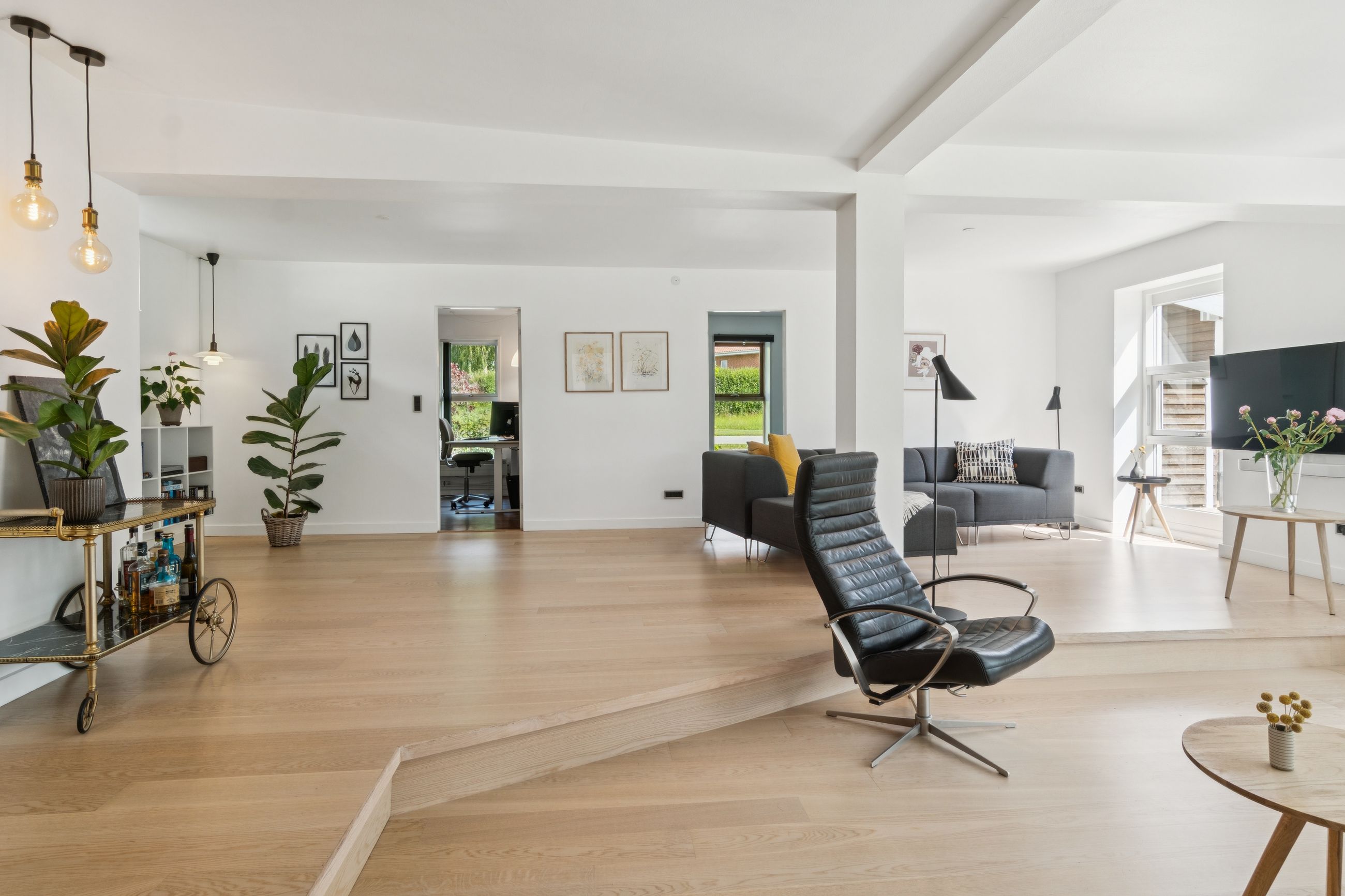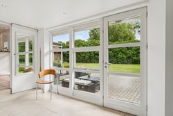 Stuen ligger i åben forbindelse med alrummet og har et flot lysindfald samt god plads til sofaarrangement. Der er mulighed for at etablere et ekstra værelse i denne del af huset, hvis behovet opstår. Herudover rummer boligen to gode soveværelser samt et lyst og stilrent badeværelse.