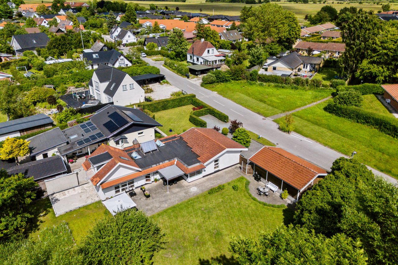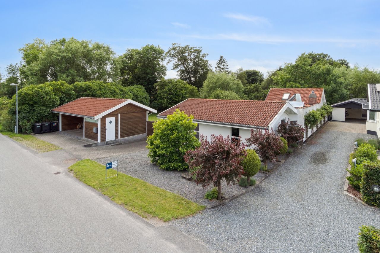 Huset er opført i 1949 og er senere blevet tilbygget og ombygget. Over de seneste år har de nuværende ejere været det meste igennem, så huset i dag fremstår i pæn og indflytningsklar stand. Boligarealet udgør 158 kvadratmeter, dertil kommer en hems i boligkvalitet. Til boligen hører en stor og fantastisk grund på 1140m2 med den skønneste have samt dobbelt carport og udhus.
