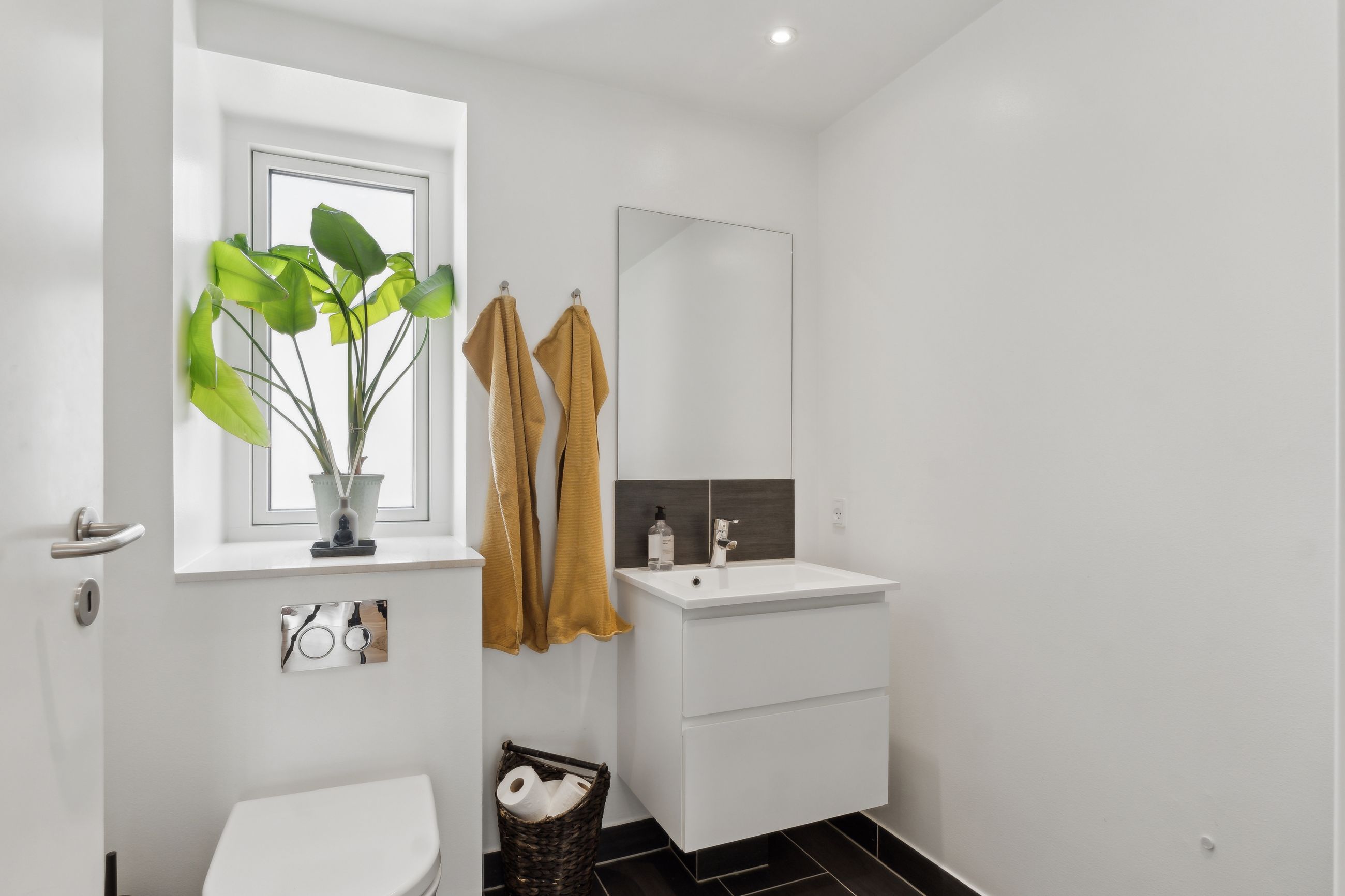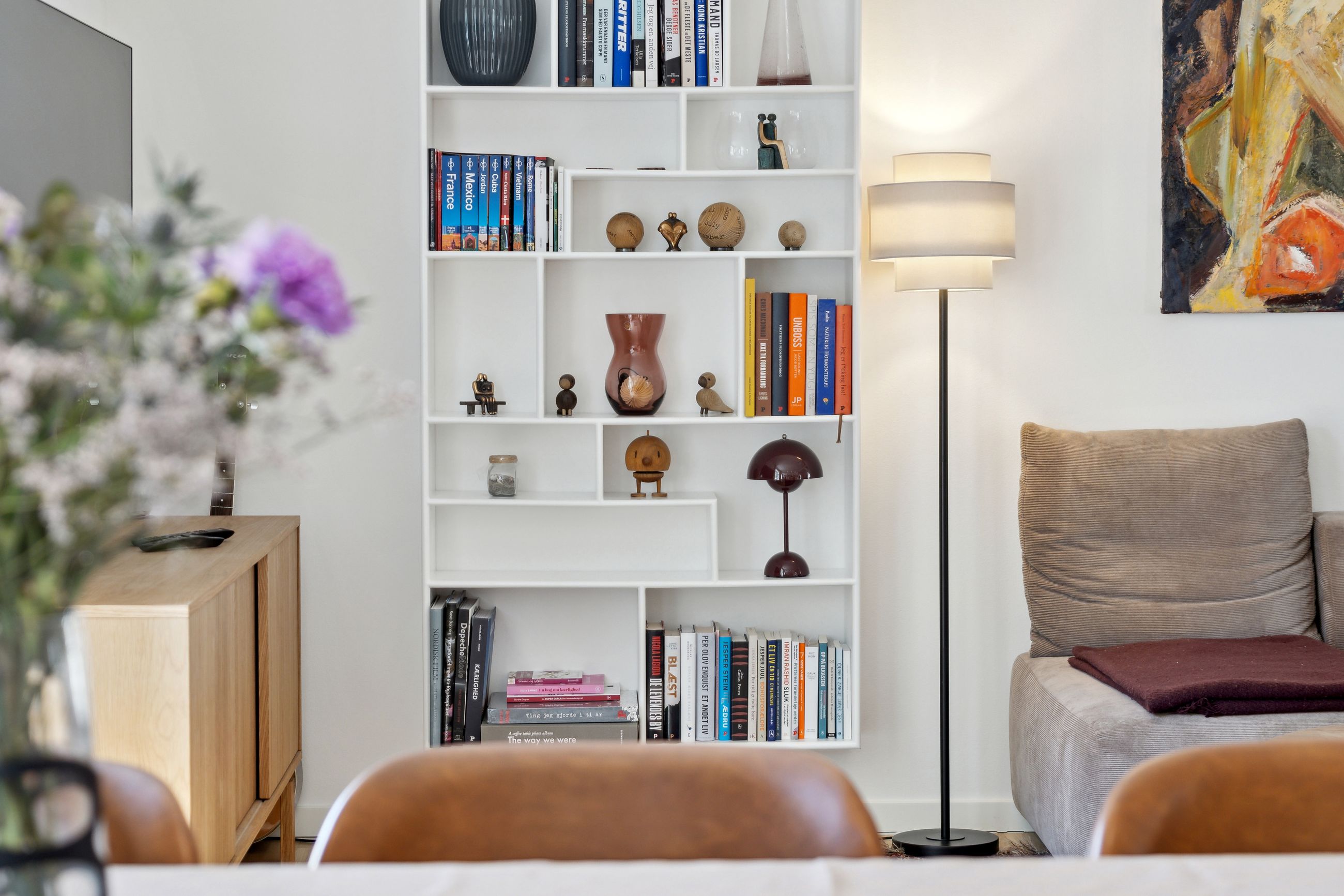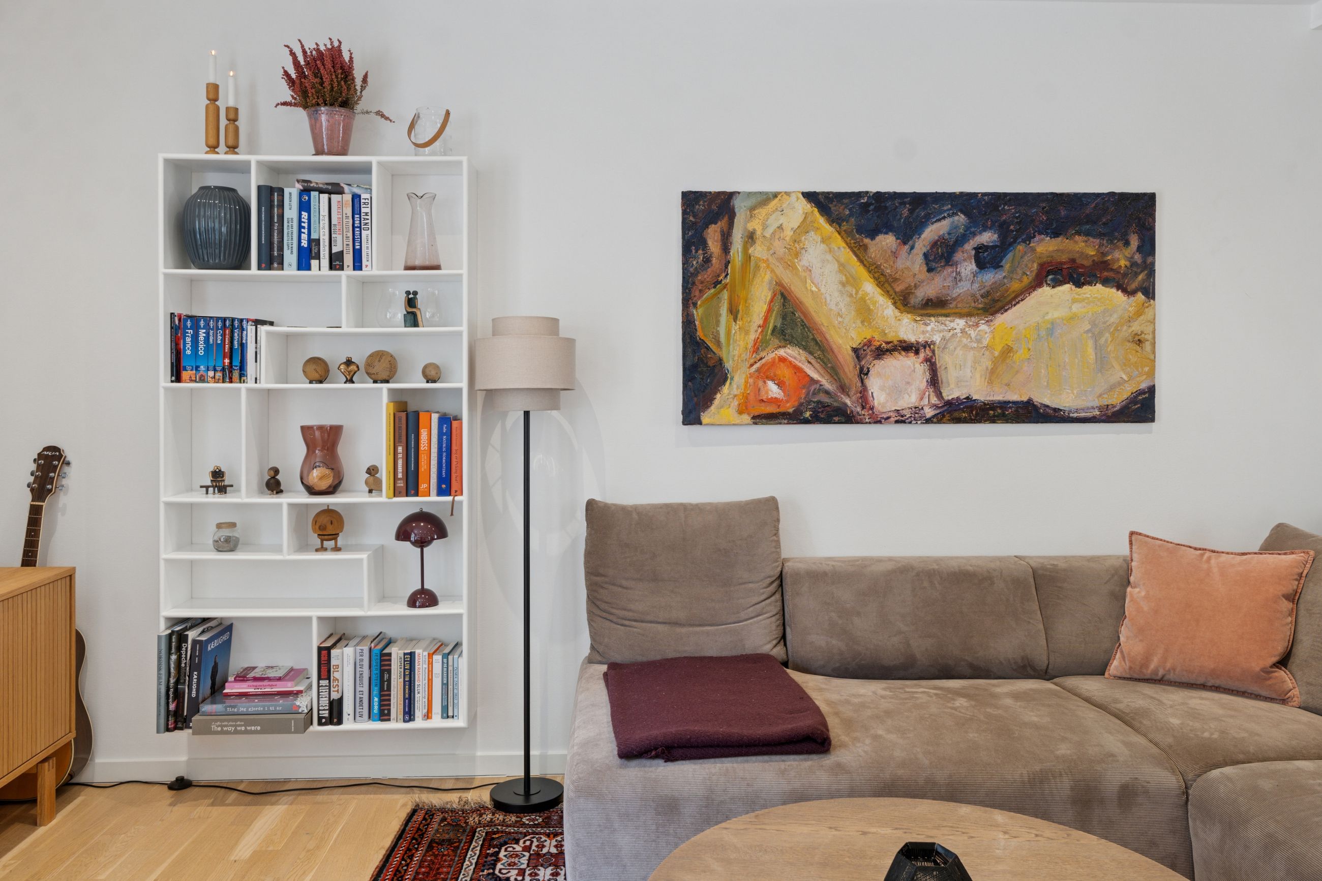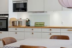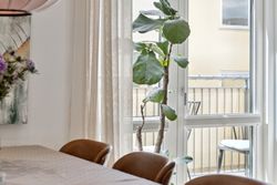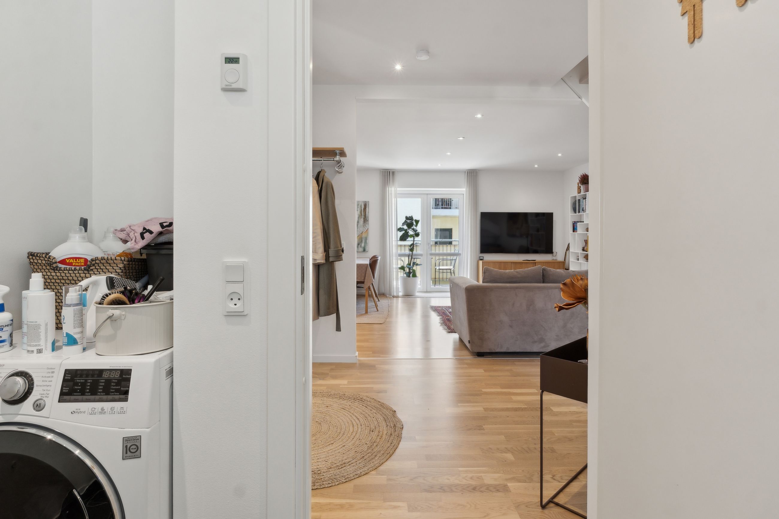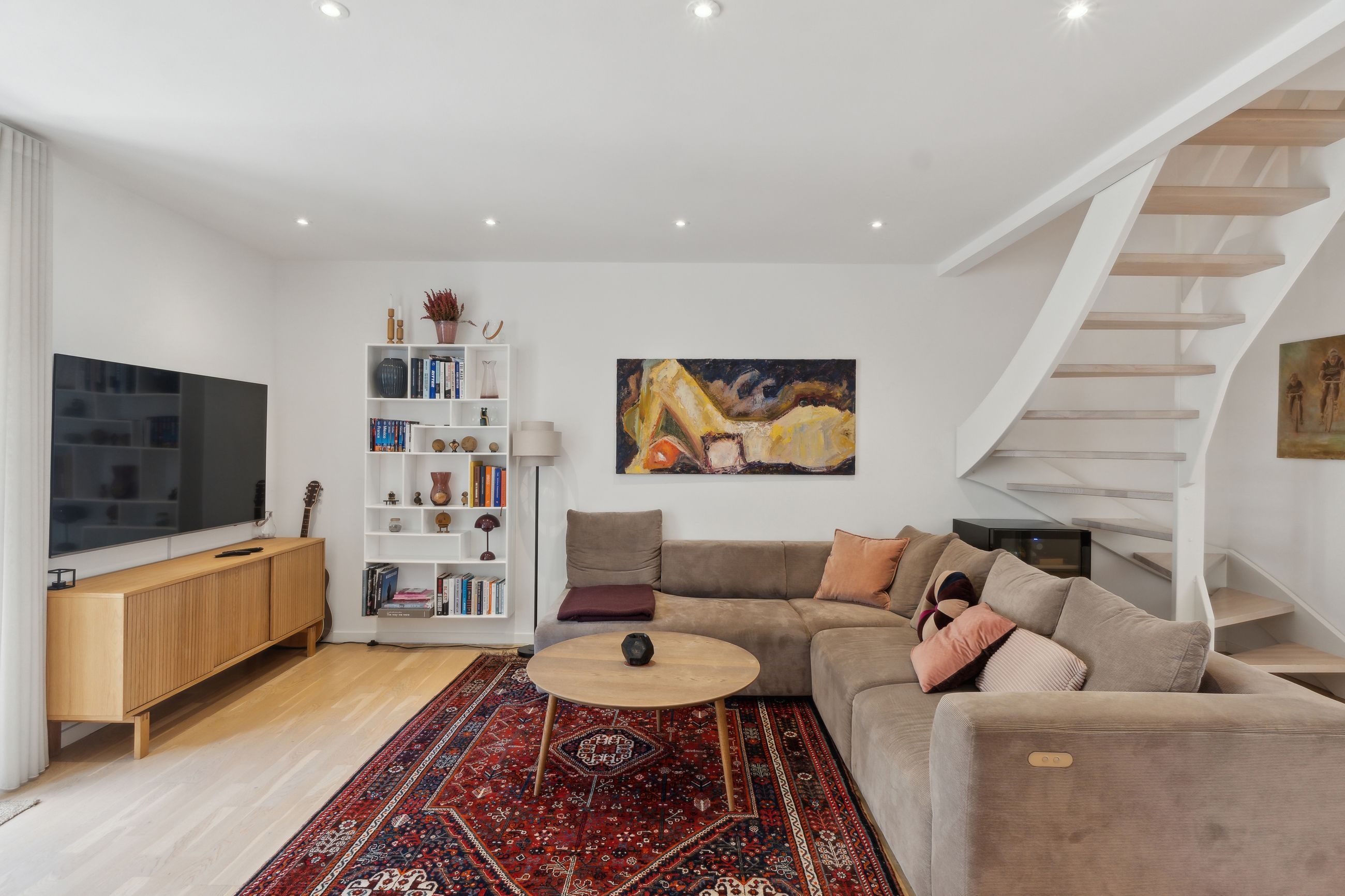 Man bydes velkommen i en lys og indbydende opgang. Entréen er rummelig og har plads til overtøjet. Lejlighedens samlingspunkt er det store og åbne køkken/stue/alrum med god plads til både spise- og opholdsafdeling. Køkkenet blev renoveret i 2023 og fremstår moderne med rigelig bord- og skabsplads. Fra alrummet er der udgang til en vestvendt altan samt trappe til boligens øverste plan. I stueplan findes desuden et godt værelse, som er velegnet til kontor eller gæsteværelse, samt et gæstetoilet med vaskefaciliteter.