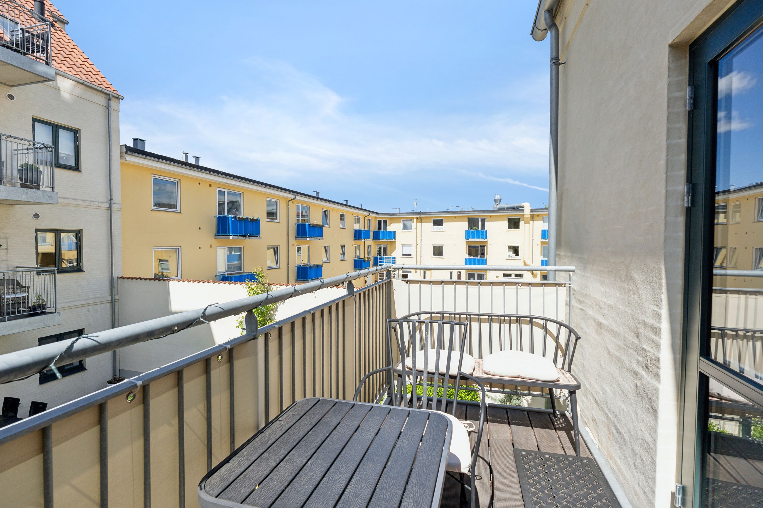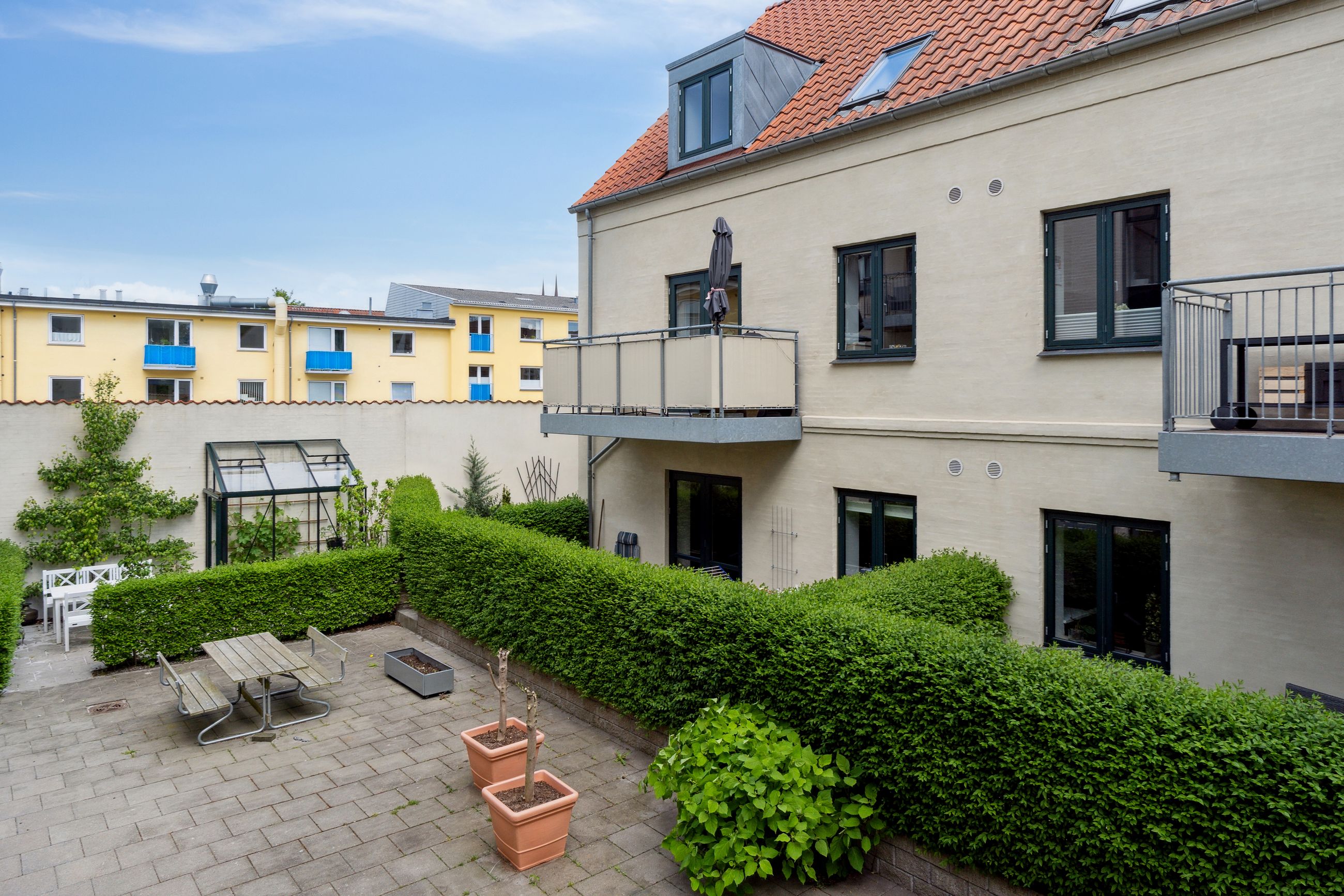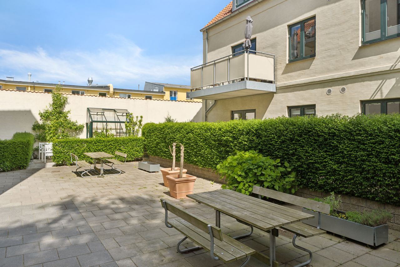 Lejligheden ligger i den attraktive bebyggelse Kornerups Have, opført i 2015 og placeret centralt i Ringstedgade. Boligen ligger i baghuset, tilbagetrukket fra vejen, og har en rolig placering. Ejendommen har pæne og velholdte fællesarealer samt en velfungerende ejerforening med et godt naboskab. Til lejligheden hører privat parkeringsplads og kælderrum.