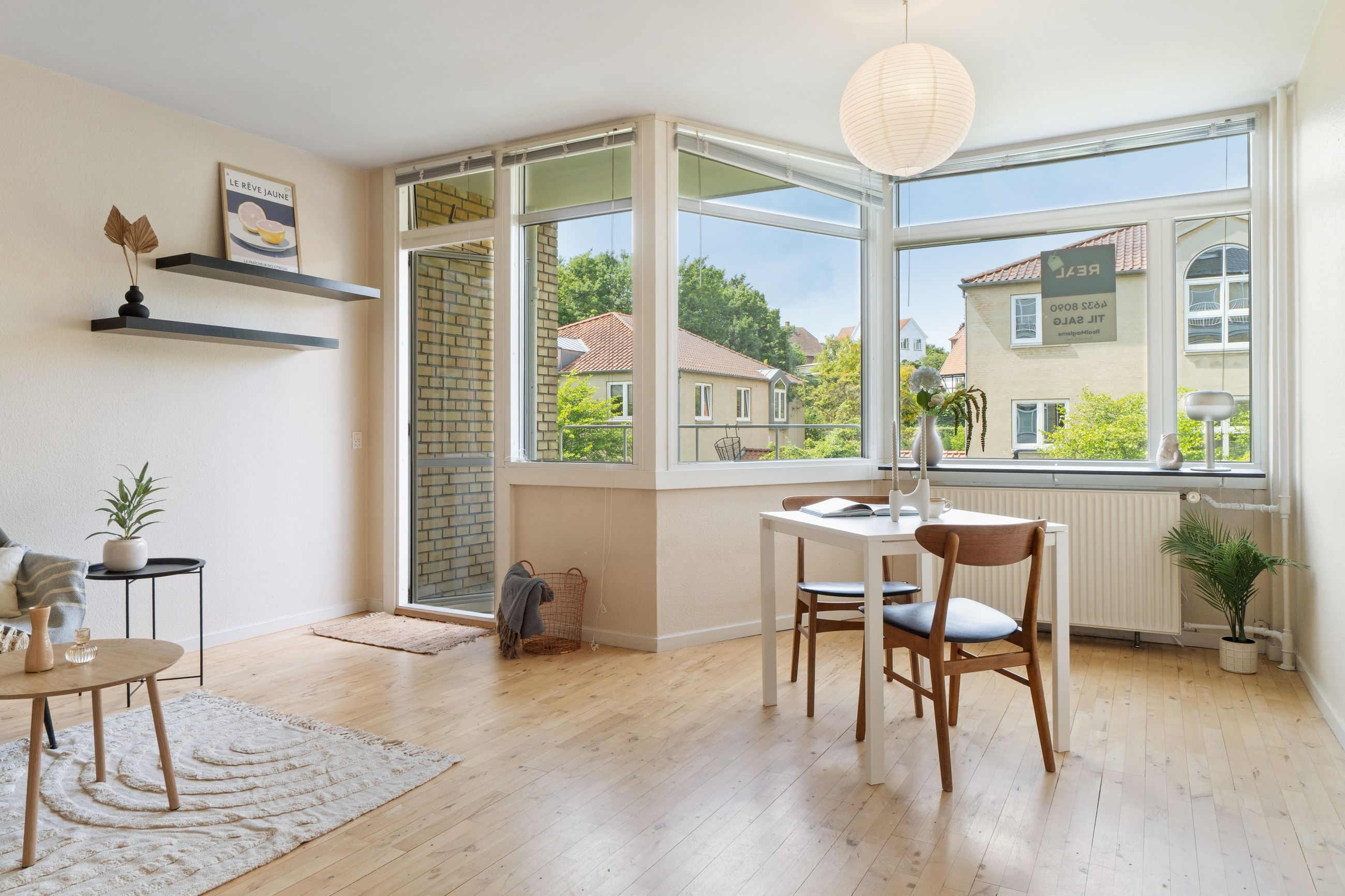 Her udbydes en velindrettet 2-værelses lejlighed i en af Roskildes mest attraktive bebyggelser.