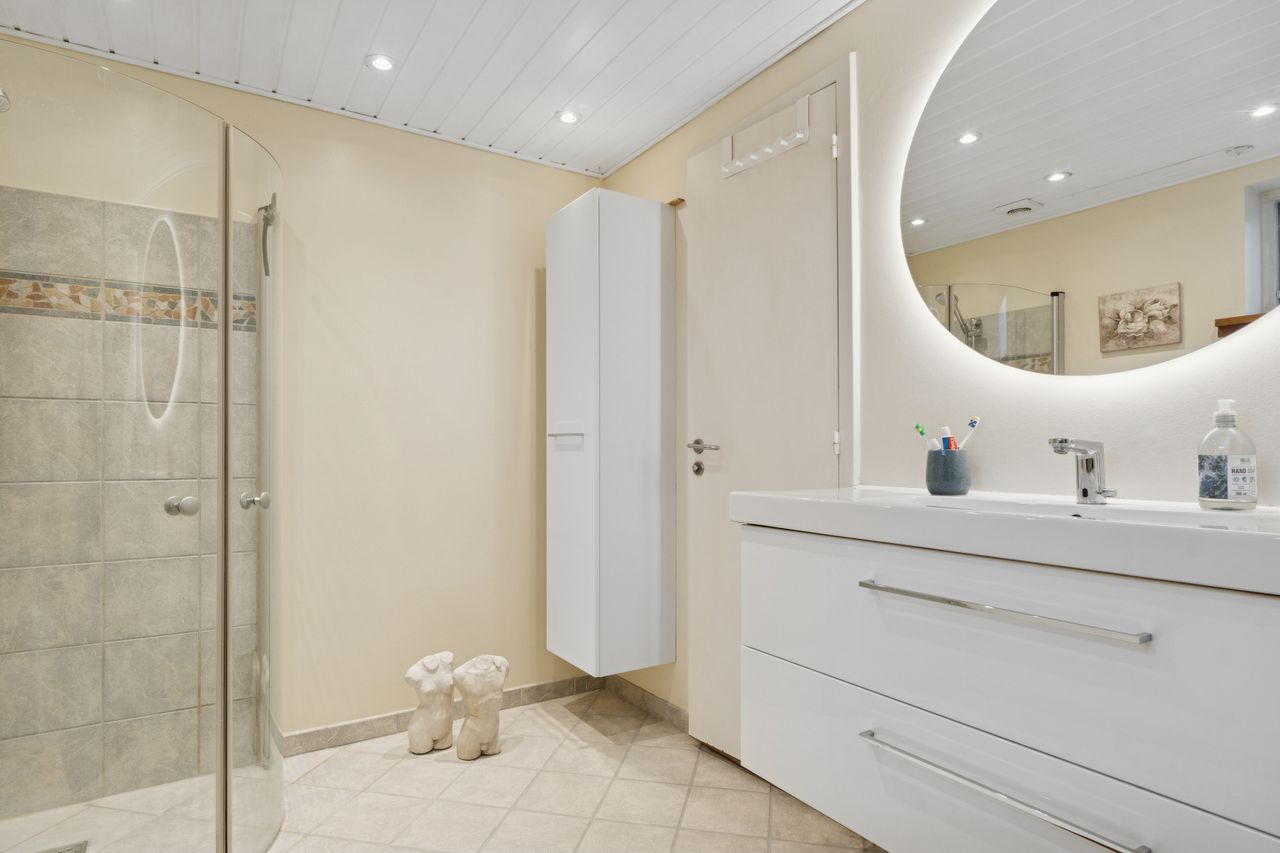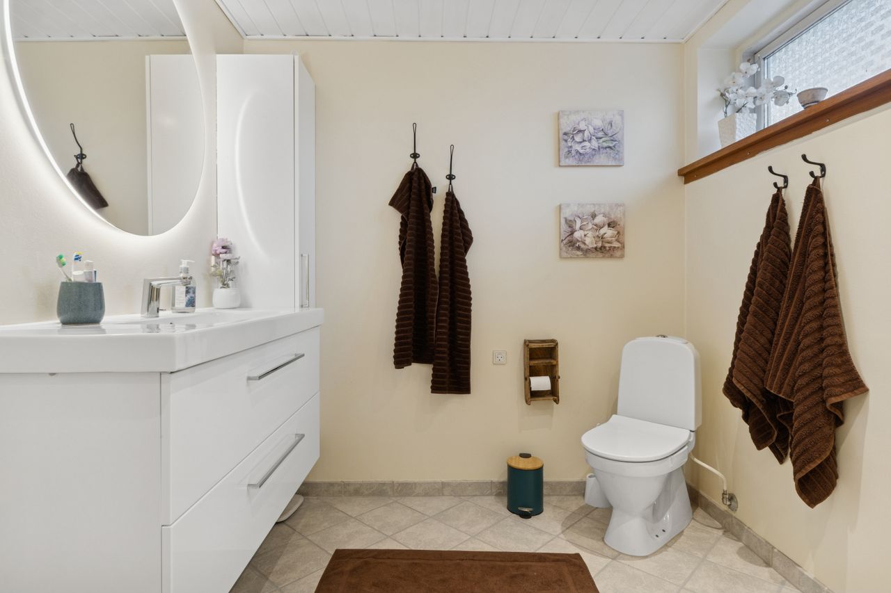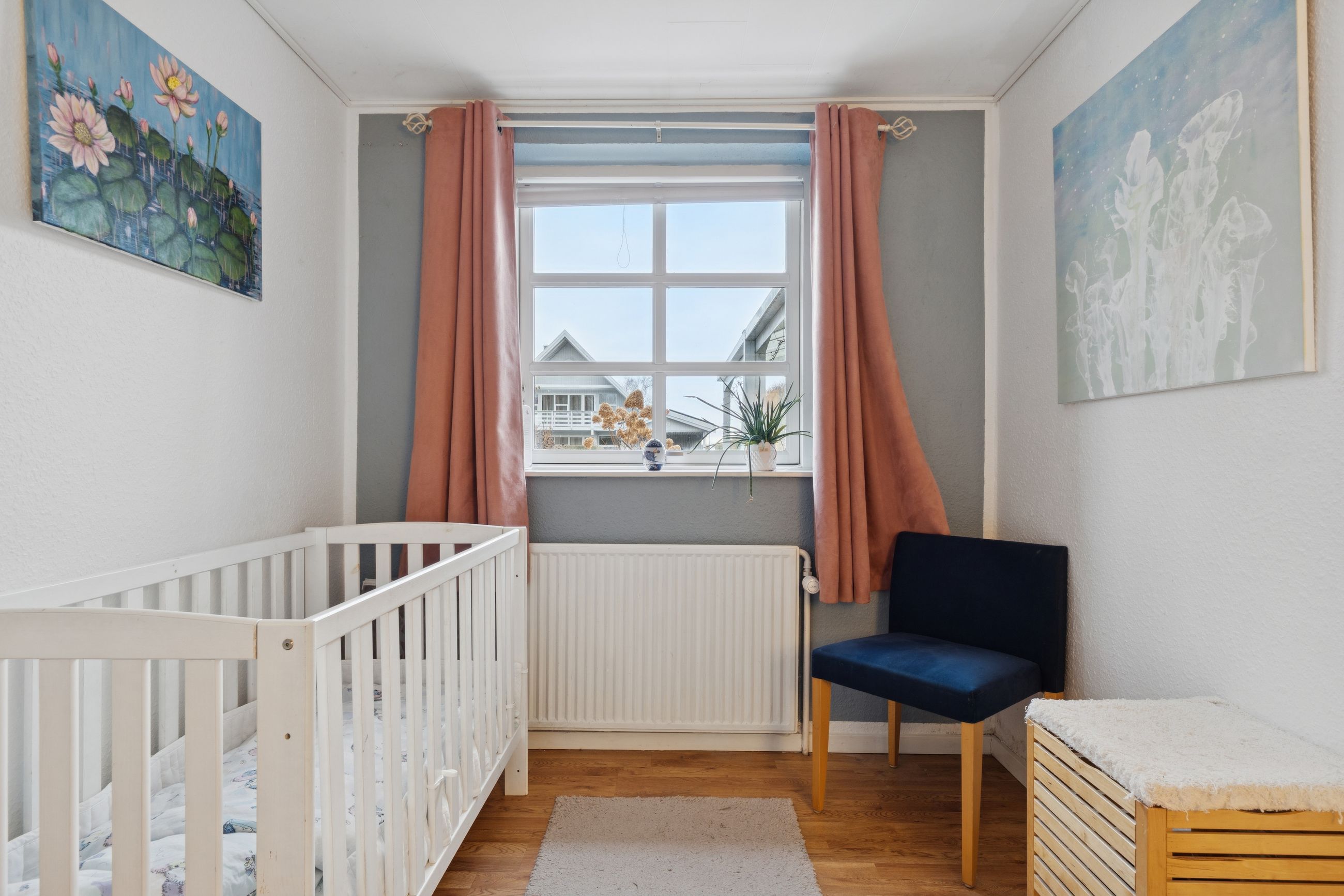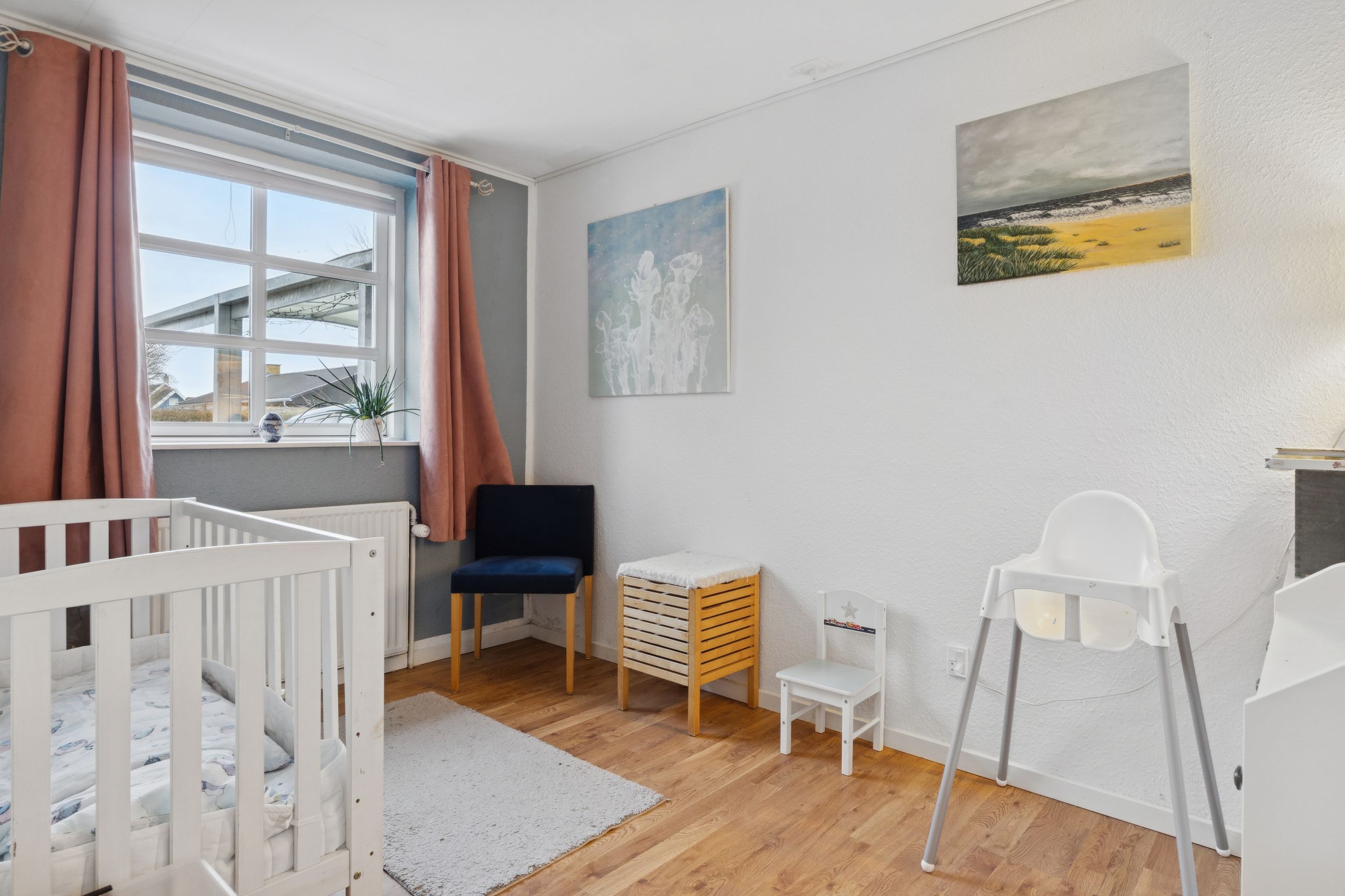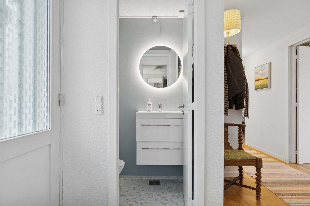Entré med adgang til fordelingsgang. Værelsesafdelingen består af tre gode værelser, et flot badeværelse med bruseniche samt et separat gæstetoilet.