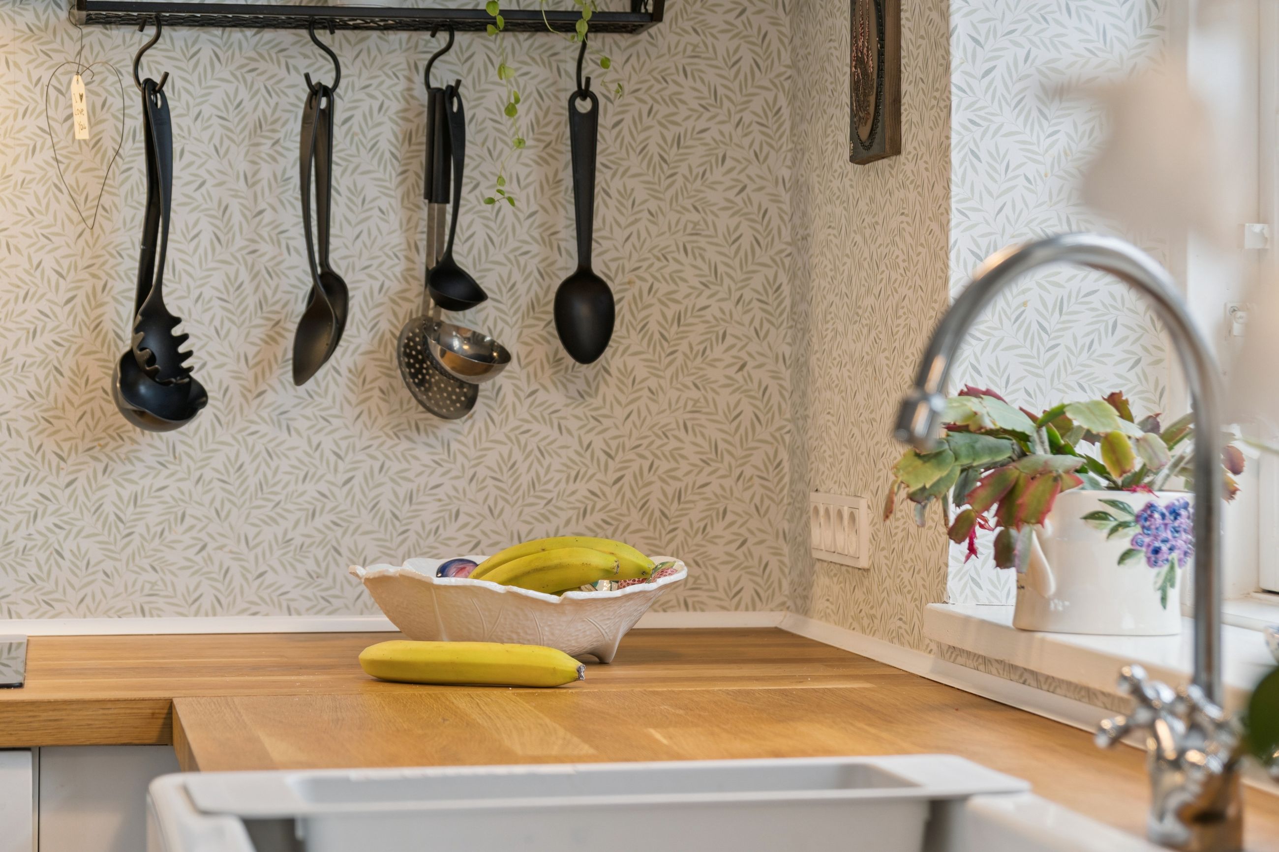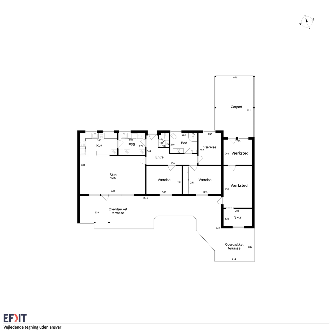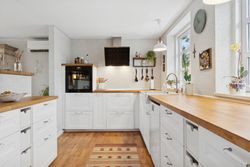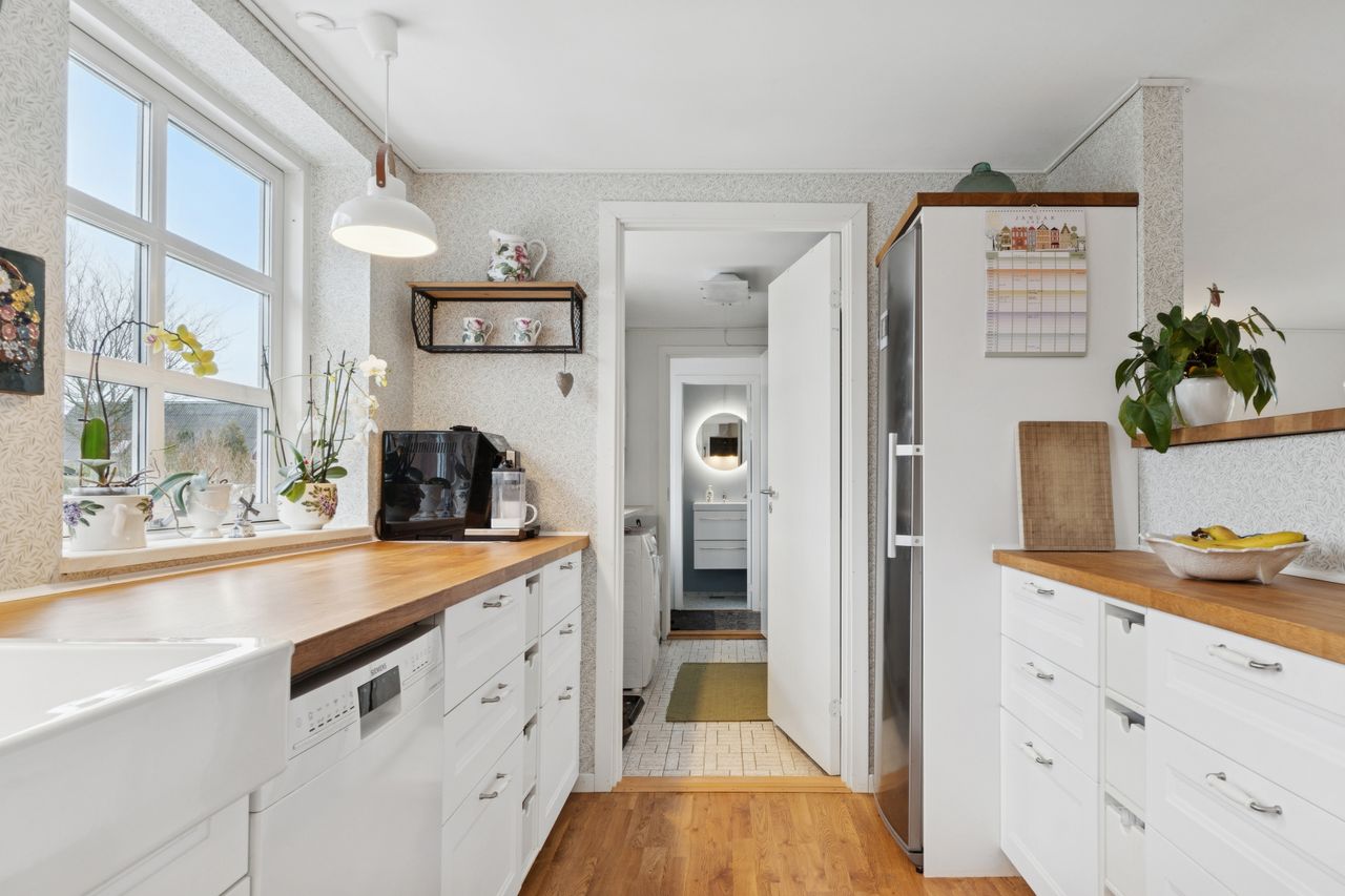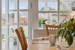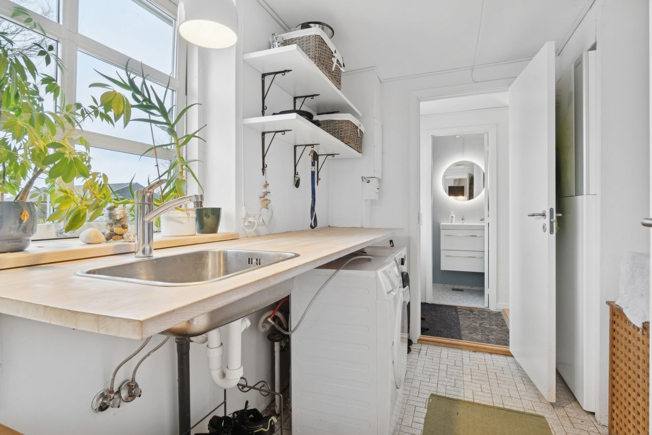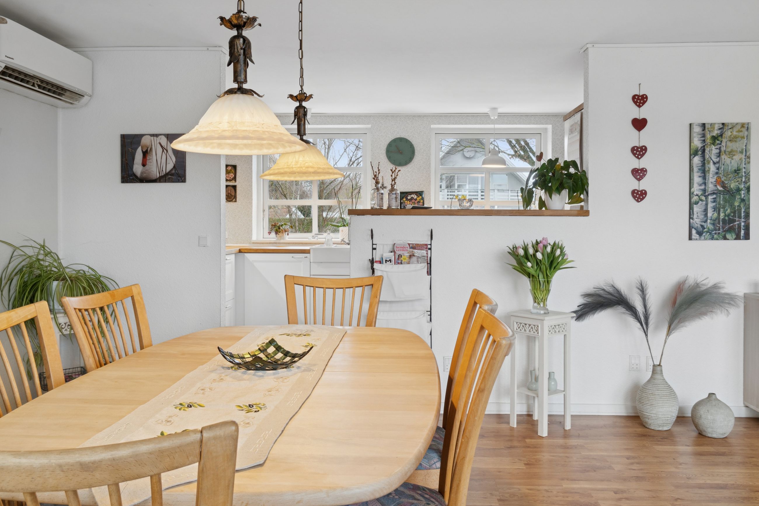 Boligens hjerte er den lyse og indbydende stue, som er gennemlyst og i åben forbindelse med det lyse køkken. Her er der god plads til både spise og opholdsafdeling, og de store vinduespartier giver et behageligt lysindfald. Fra stuen er der direkte udgang til den sydvendte terrasse, som naturligt forlænger opholdsrummet i sommerhalvåret. I tilknytning til køkkenet findes et funktionelt bryggers / grovkøkken med plads til hverdagens praktiske gøremål.