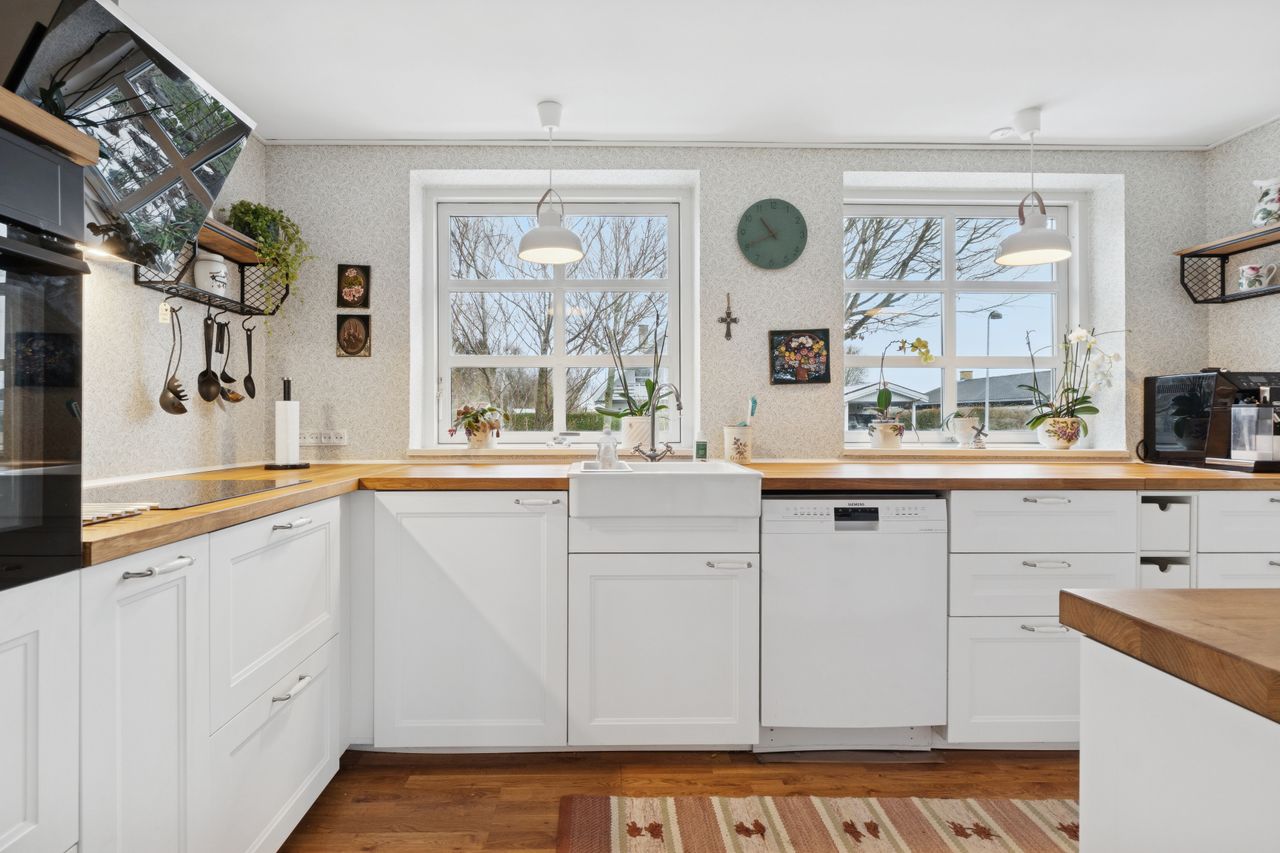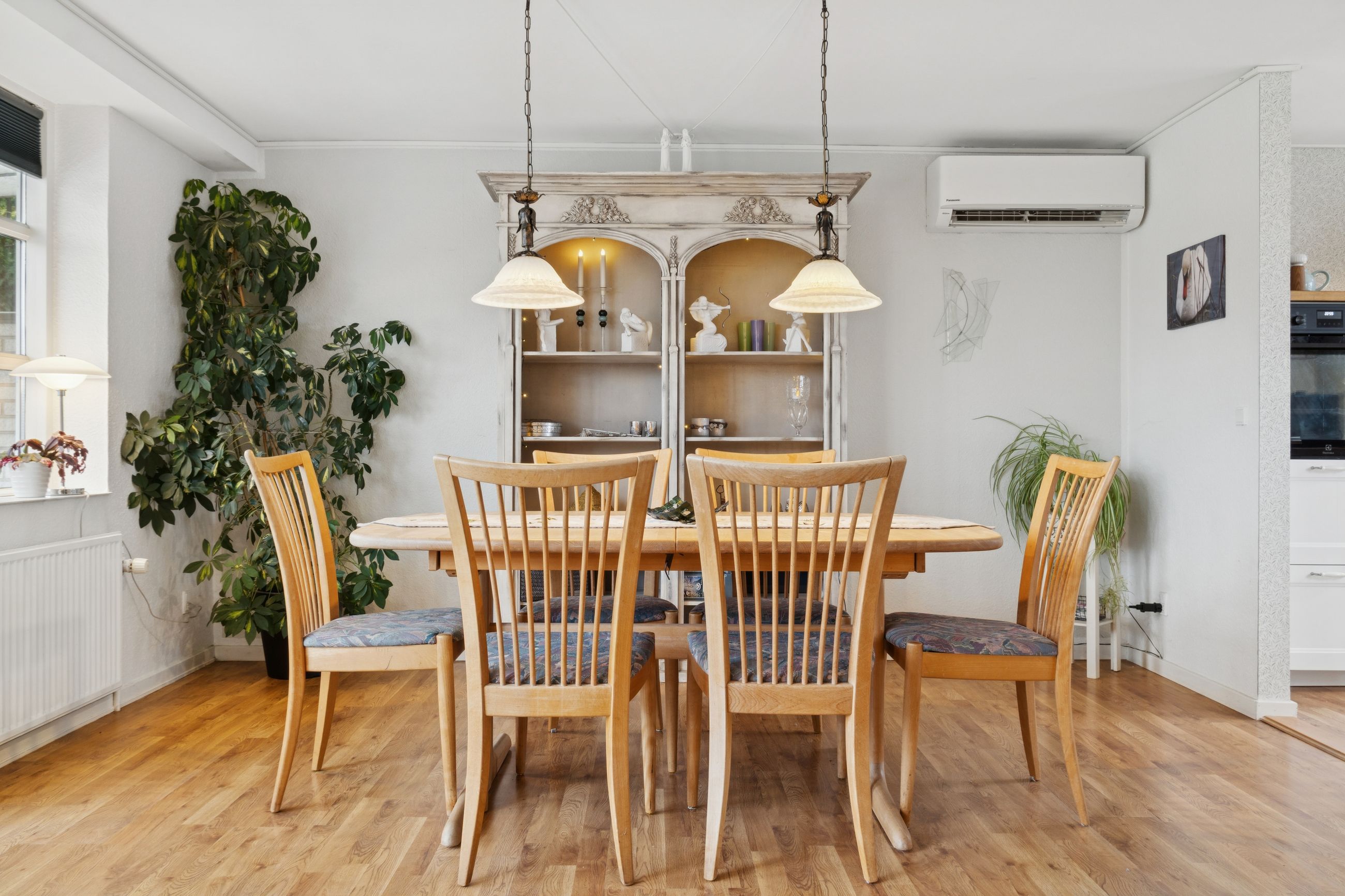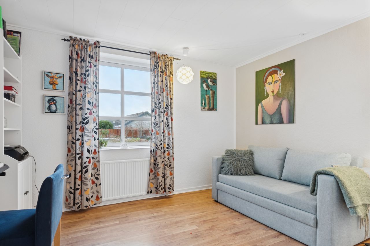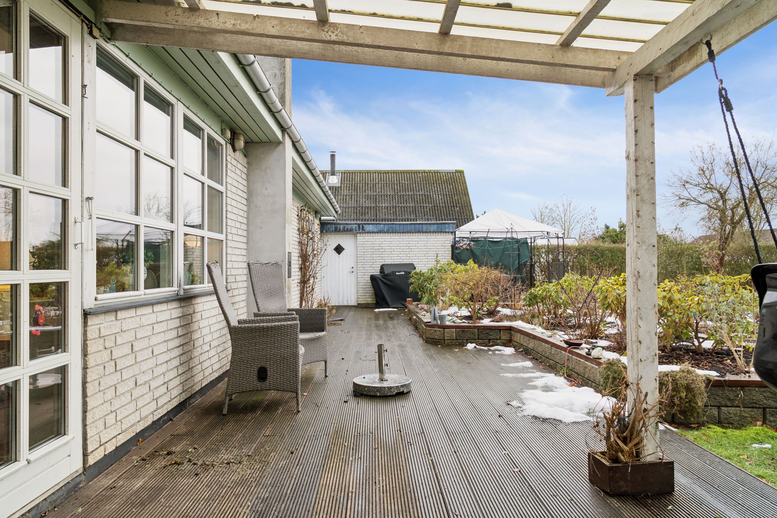 Boligen er opført i 1976 og fremstår i flot og velholdt stand. Huset er opført i ét plan og har en velfungerende planløsning med minimal spildplads. Opvarmning sker via luft til vand varmepumpe, som giver fornuftige varmeudgifter. Til ejendommen hører et isoleret og opvarmet værksted med god plads til hobbyaktiviteter samt en carport. Haven er sydvendt og meget velplejet med flere terrasser, der giver gode opholdsmuligheder udendørs. Haven er anlagt med blomsterbede, frugttræer og frugtbuske samt veletablerede højbede til dyrkning af egne grøntsager, og der er fortsat god plads til leg og ophold.