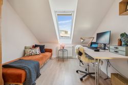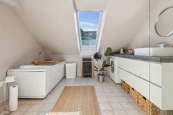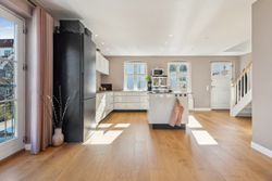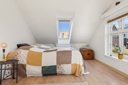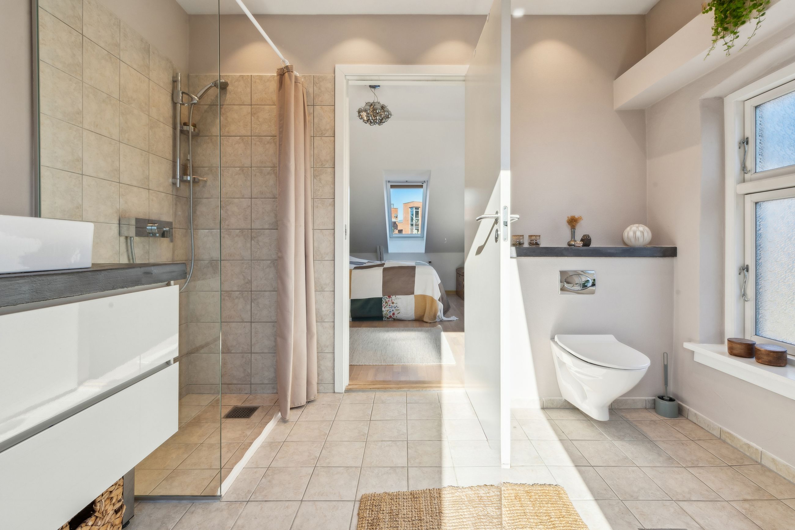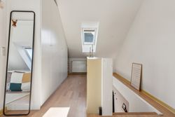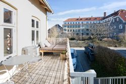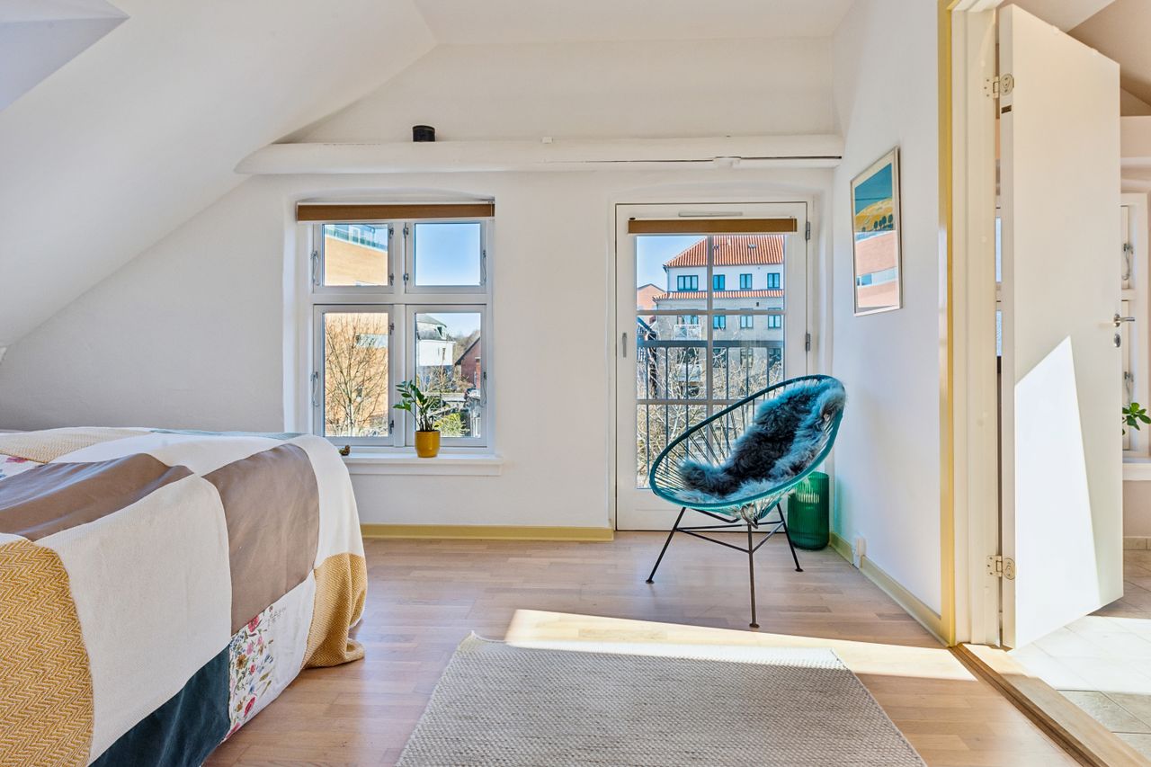 På førstesalen byder lejligheden på et repos samt to gode værelser. Disse værelser er perfekte som soveværelse eller kontor alt efter behov. Det store badeværelse er også på denne etage. En af de absolutte højdepunkter ved denne lejlighed er den store sydøstvendte altan, hvor du kan nyde morgenkaffen eller slappe af efter en lang dag.