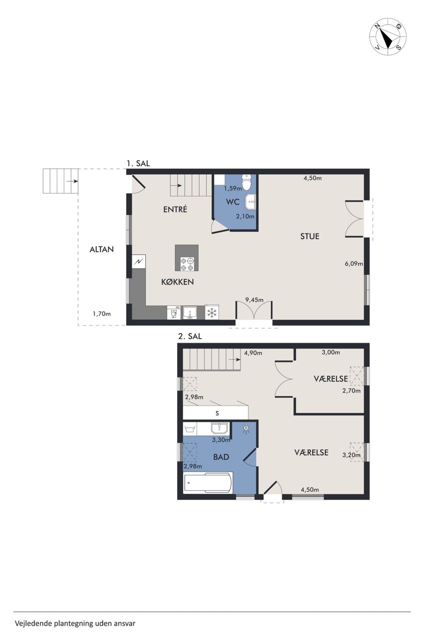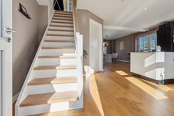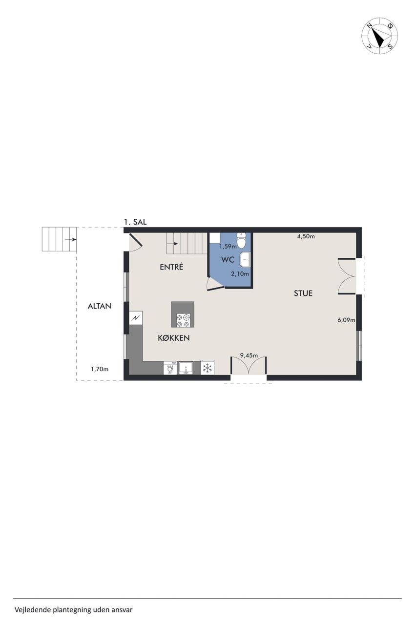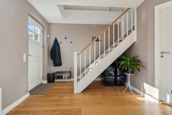 Når du træder ind i stueplanen, bliver du mødt af et praktisk gæstetoilet samt et fantastisk åbent køkken/alrum med lys fra flere sider. Køkkenet er designet med fokus på både funktionalitet og æstetik, hvilket gør det til et ideelt sted for madlavning og samvær. I forlængelse af køkken/alrummet finder du en lys stue, hvor store vinduespartier lader dagslyset strømme ind og skaber en behagelig atmosfære.