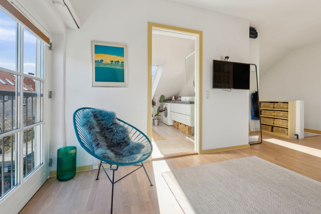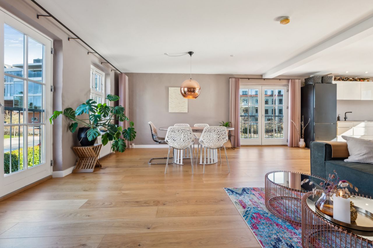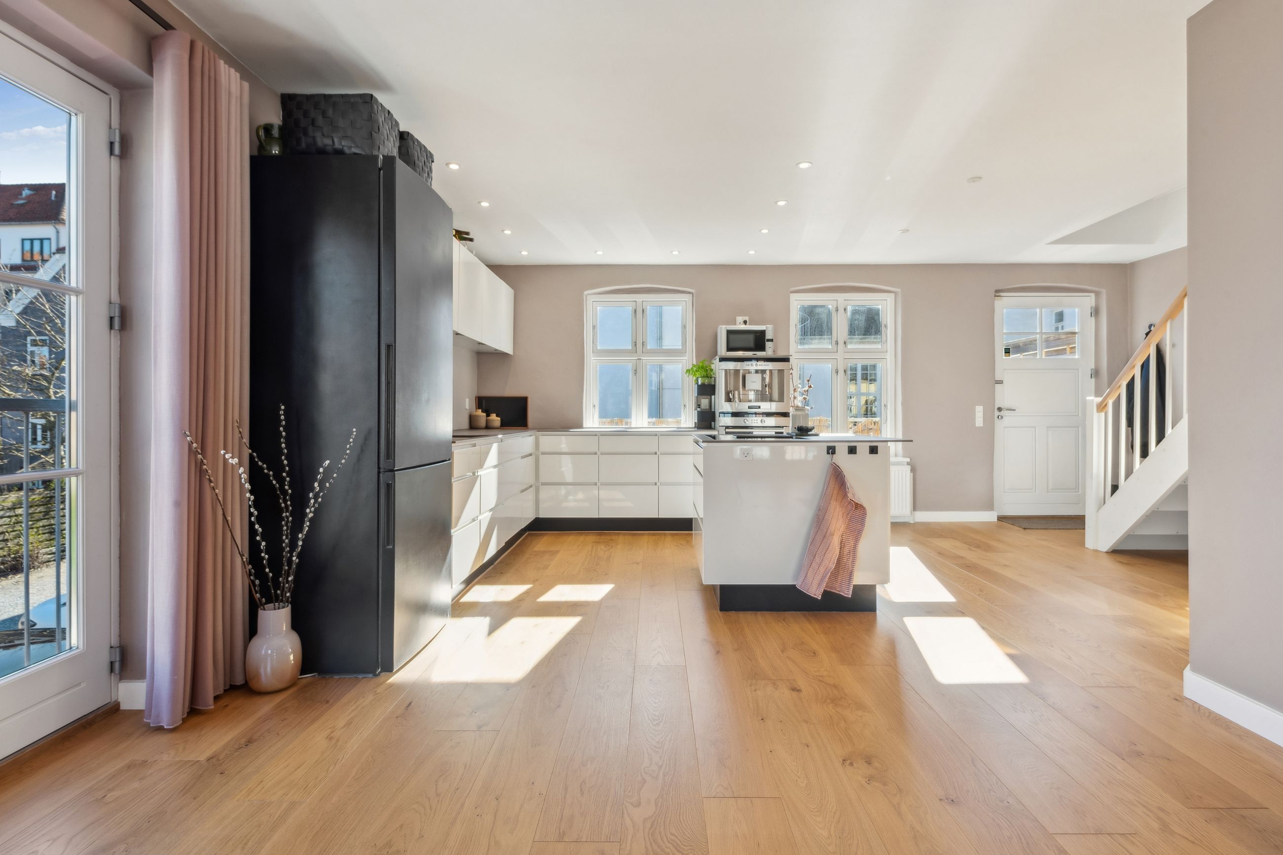 Ejendommen blev konverteret og totalrenoveret i 2006, hvilket betyder, at du kan forvente moderne faciliteter og en stilfuld indretning. Lejligheden strækker sig over to plan og tilbyder et rummeligt boligareal på hele 114 kvadratmeter.
