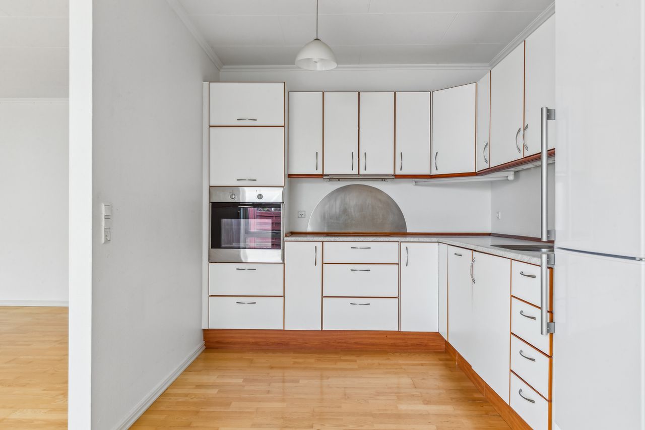 Køkkenet er lyst og indbydende med plads til spisebordet, hvilket gør det nemt at samles om måltiderne. Køkkenet er designet med funktionalitet for øje og har alt hvad du behøver for at udfolde dine kulinariske evner.