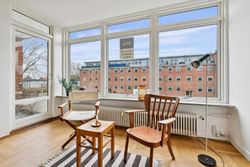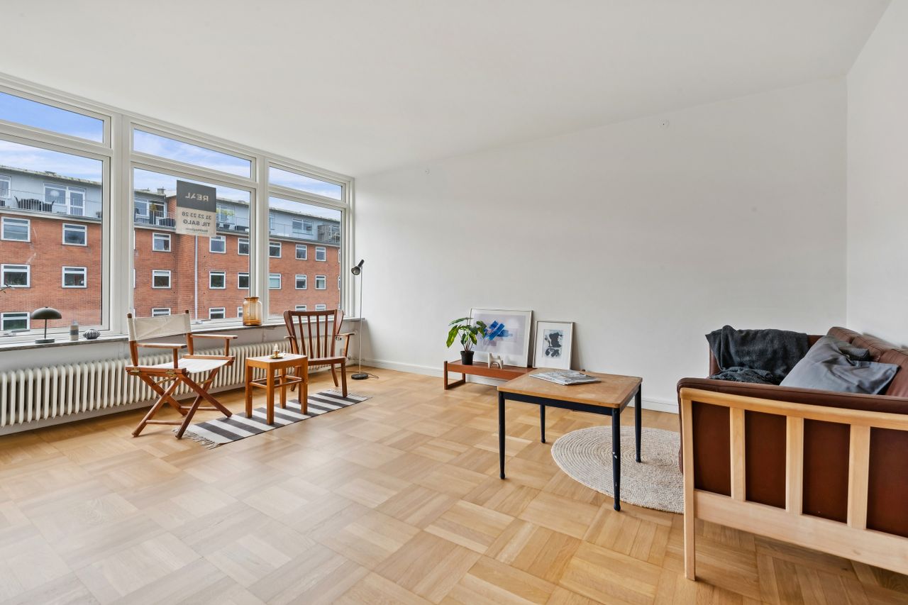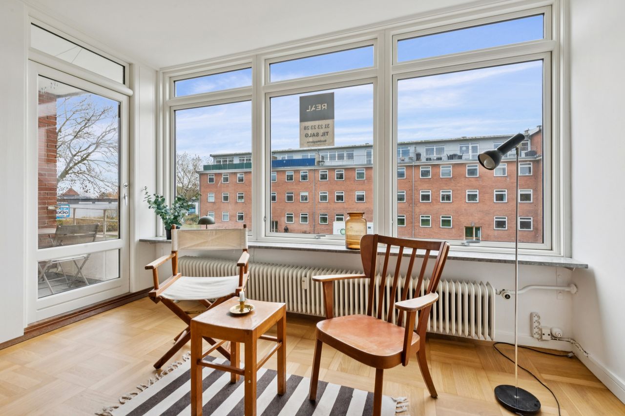 Lejligheden blev opført i 1960 og fremstår velholdt og istandsat med en indbydende atmosfære. Indenfor mødes du af lyse rum med god pladsudnyttelse. Stuen er rummelig og lysfyldt takket være de store vinduer, der også giver udsigt til de grønne fællesarealer mellem ejendommene. Herfra er også adgang til altanen. Køkkenet er funktionelt indrettet med moderne faciliteter. De to værelser tilbyder ro og komfort efter en lang dag, mens det helt nye badeværelse er sætter prikken over i'et.