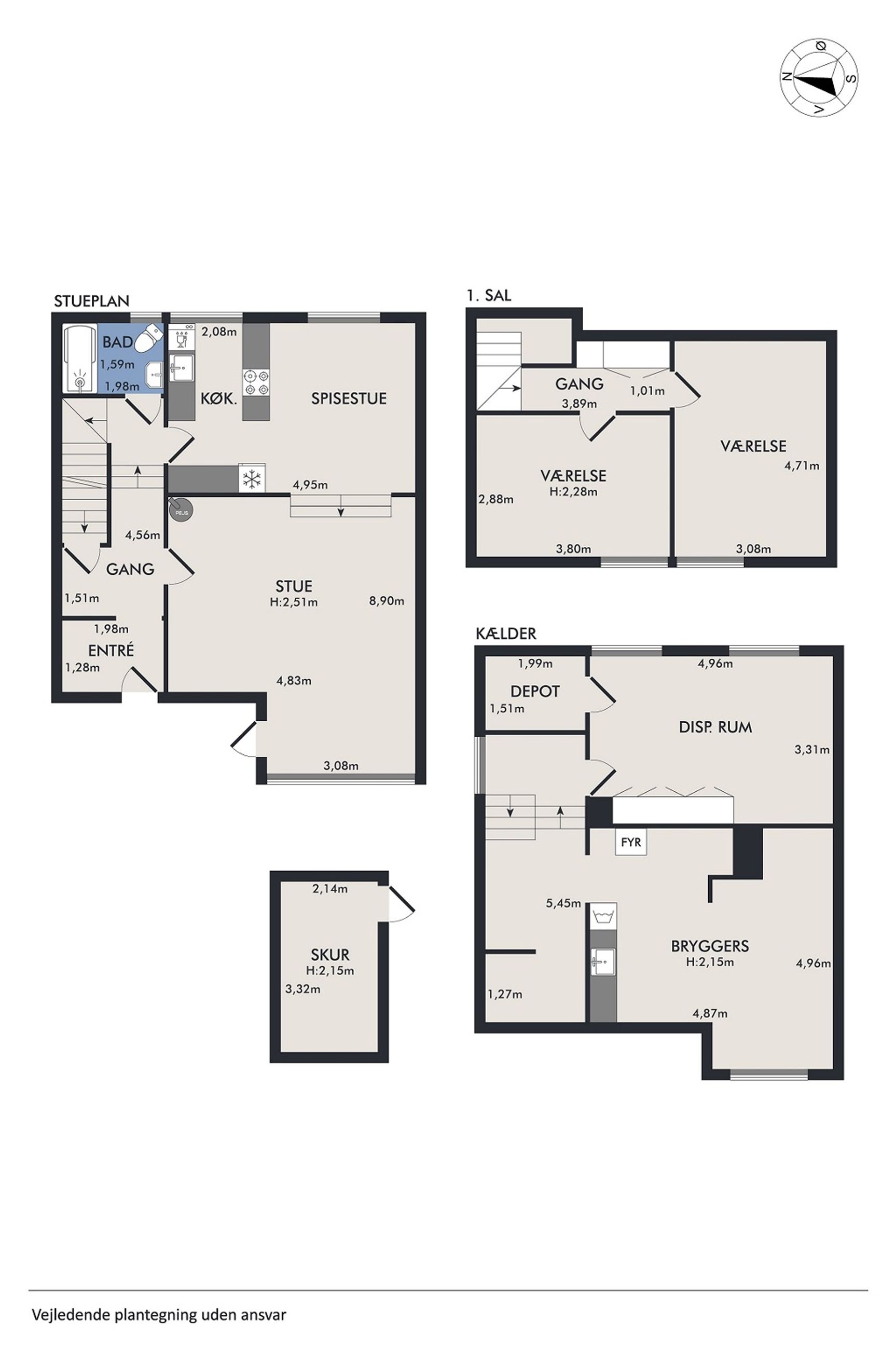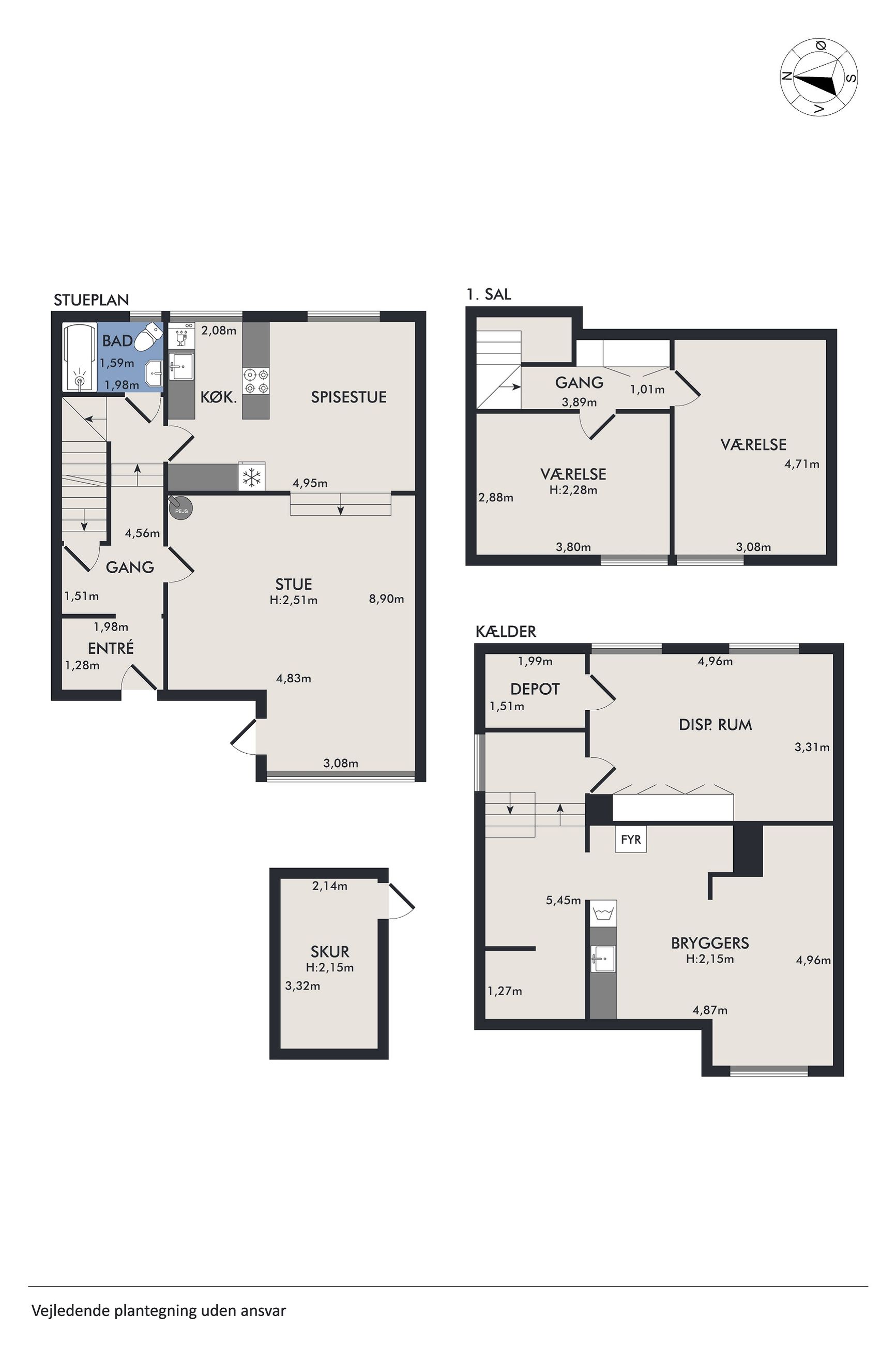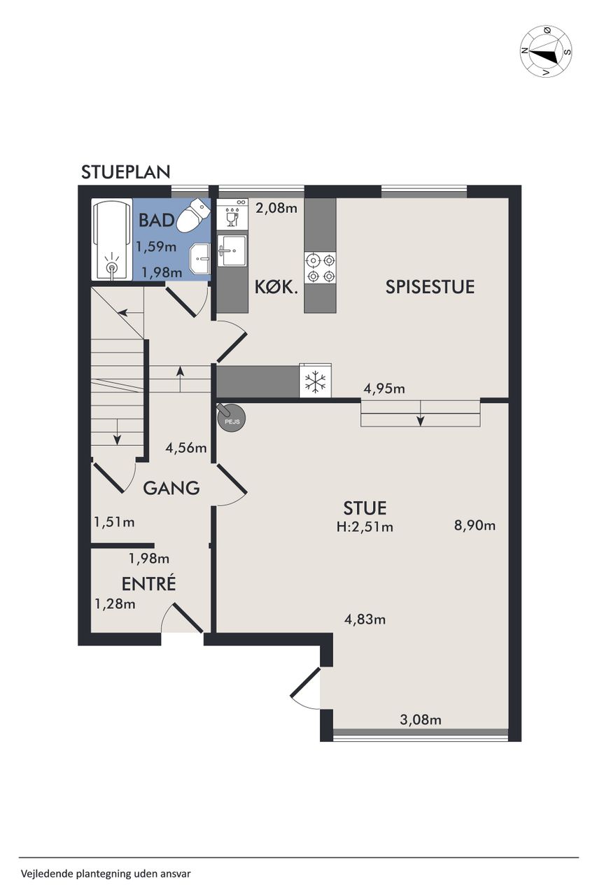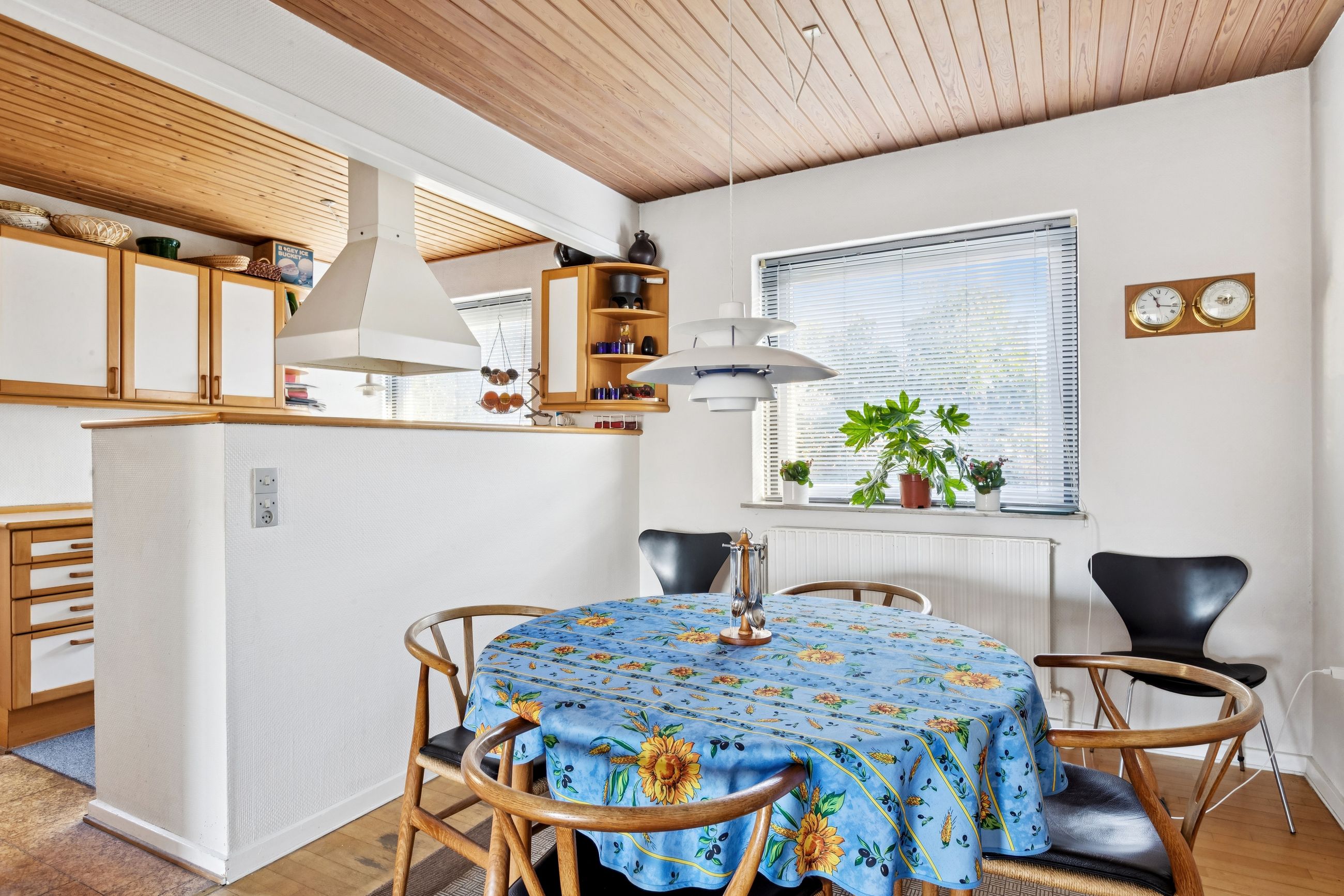 Når du træder ind i huset, mødes du af en indbydende entre, der fører videre til den lyse stue. Herfra kan du tage et par trin op til spisepladsen og det funktionelle køkken, som inviterer til hyggelige middage med familie og venner. Badeværelset er udstyret med karbad, hvor du kan nyde afslappende stunder efter en lang dag.