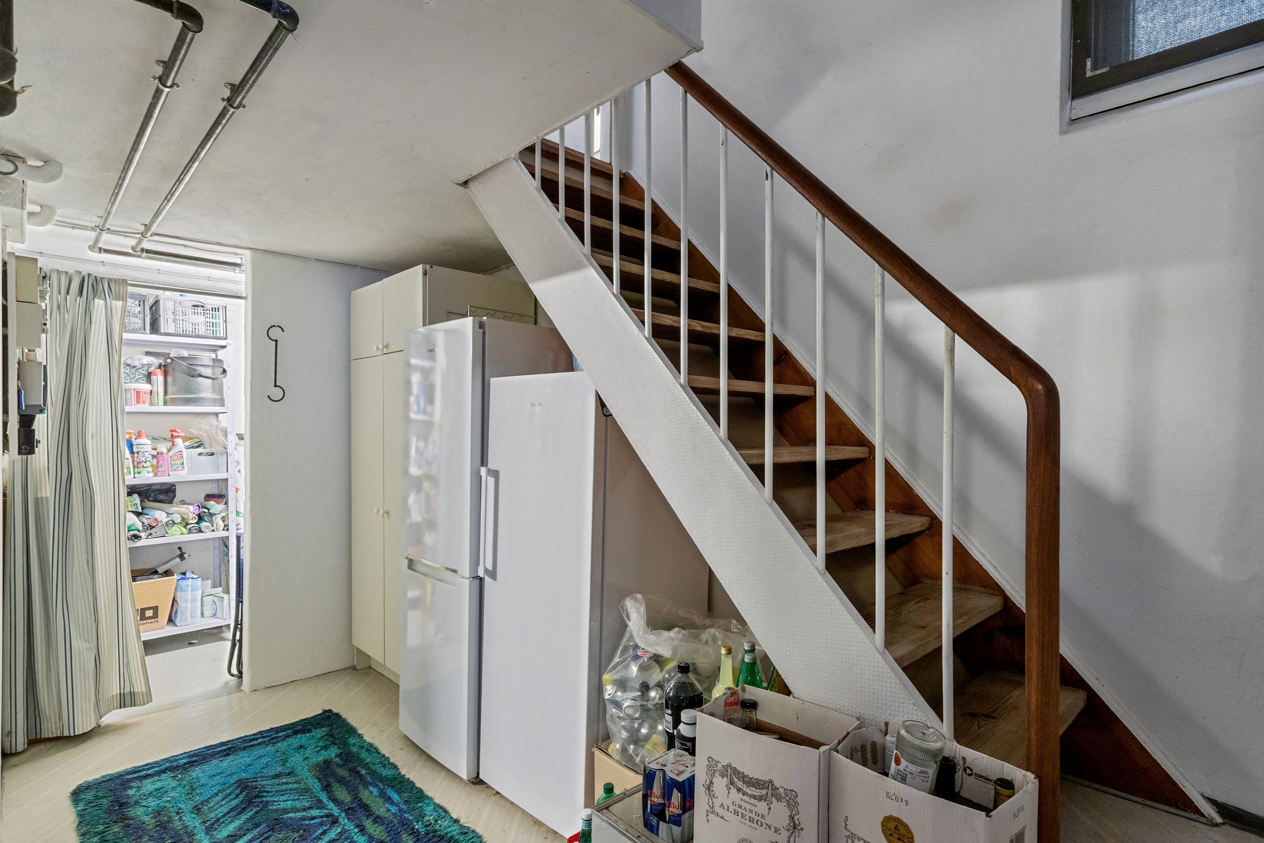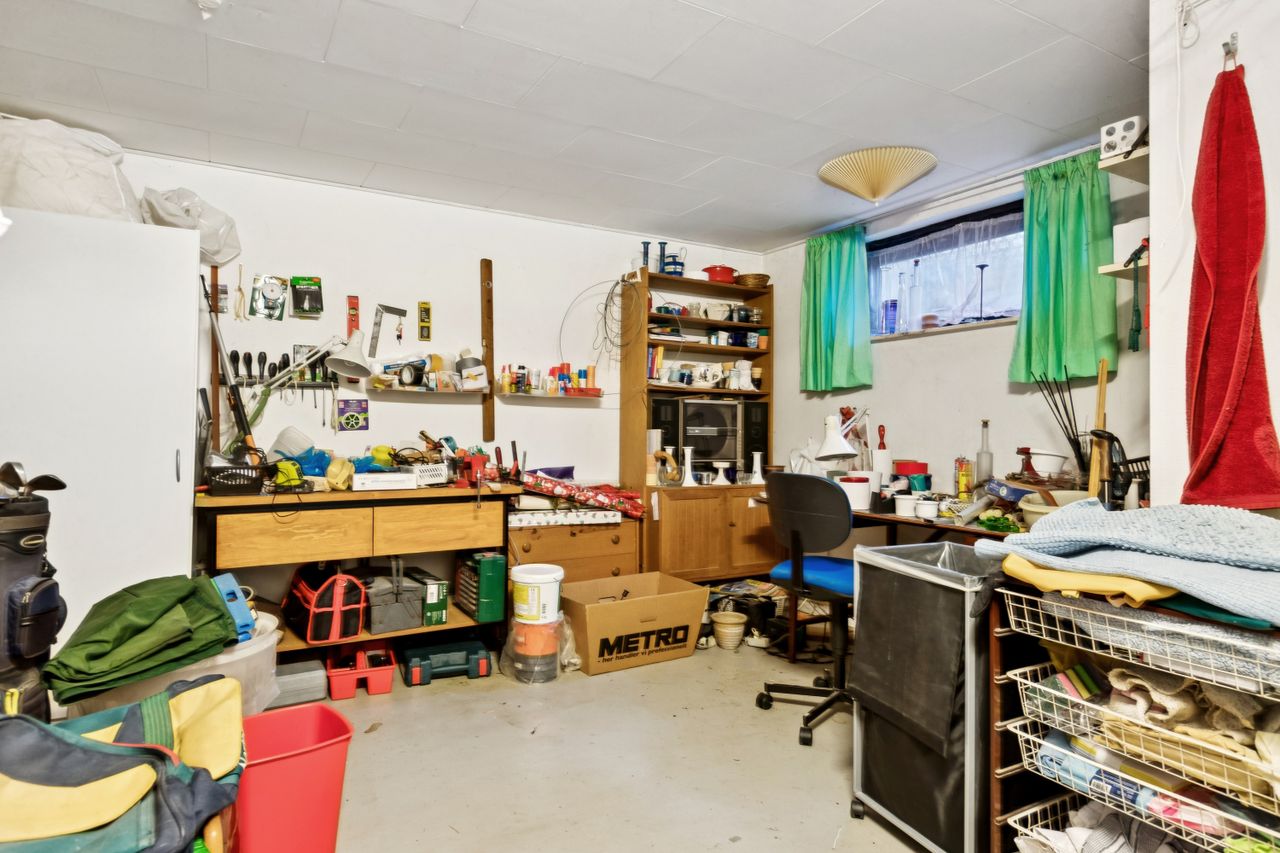 Rækkehuset rummer to gode værelser, som kan indrettes efter dine behov – hvad enten det er som soveværelse eller hjemmekontor. Kælderen tilbyder yderligere muligheder med et viktualierum til opbevaring af madvarer samt et praktisk vaskerum. Derudover finder du et stort disponibelt rum i kælderen, perfekt til hobbyaktiviteter eller ekstra opholdsrum.