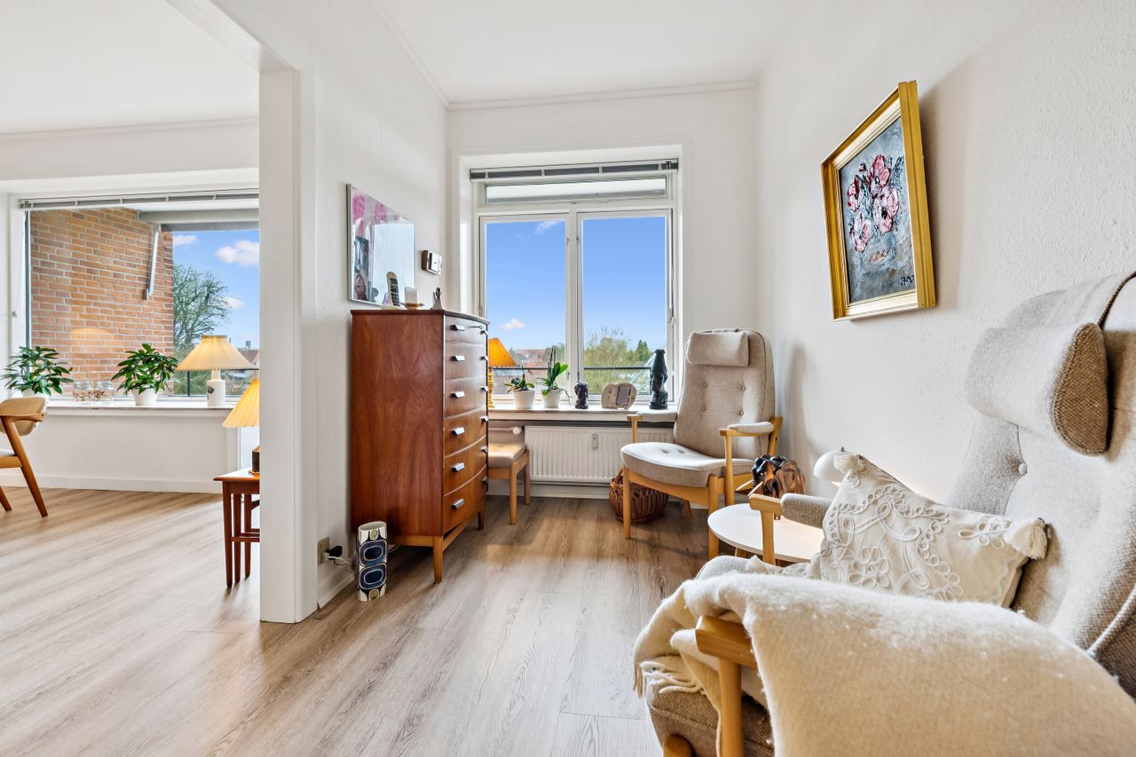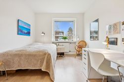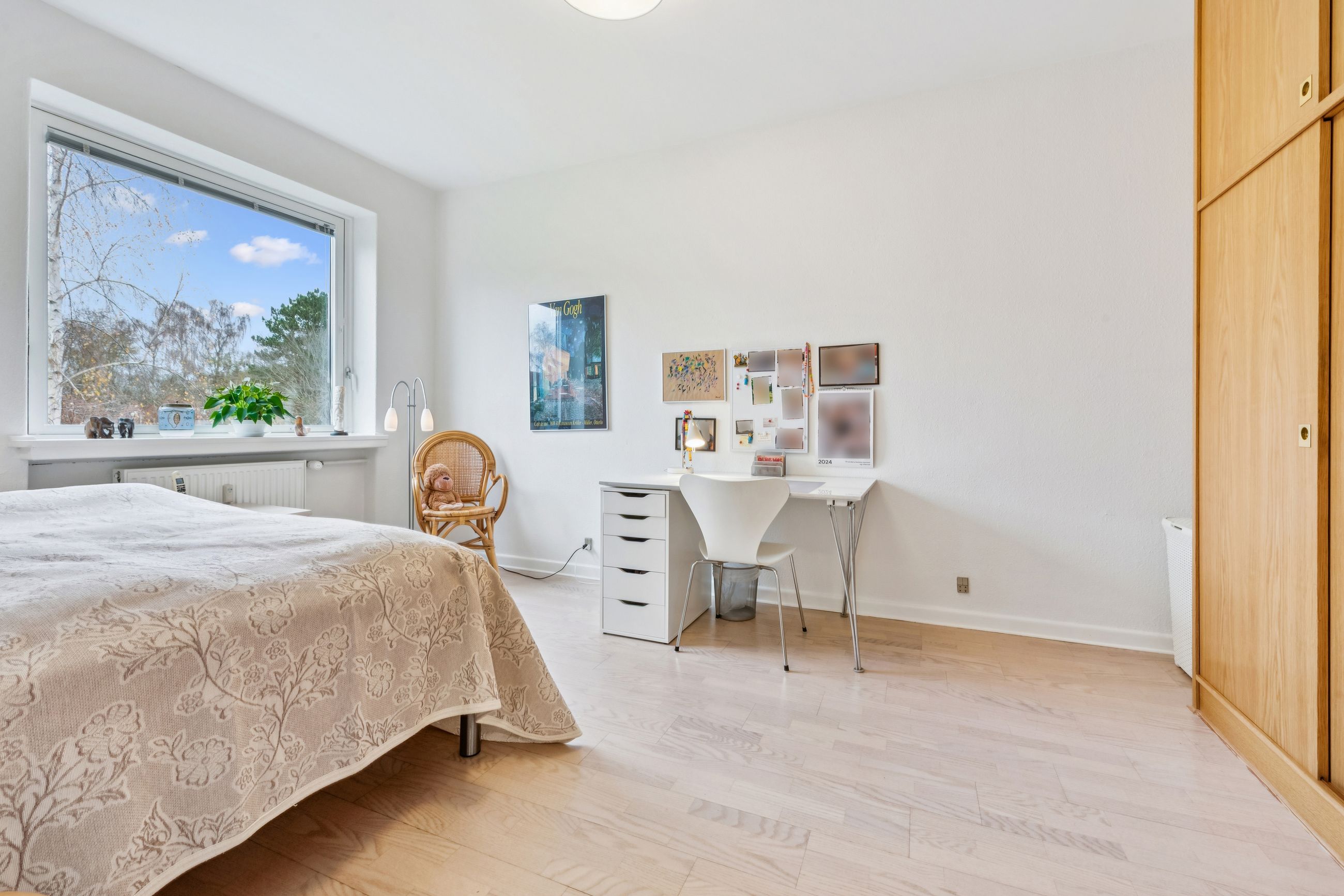 Lejligheden byder også på et stort soveværelse med rigelig opbevaringsplads, så du nemt kan organisere din garderobe uden bekymringer om pladsmangel. Stuen er rummelig og indbydende med plads til både afslapning og underholdning af gæster. Derudover findes der et mindre værelse, som kan bruges som kontor eller gæsteværelse afhængigt af dine behov.