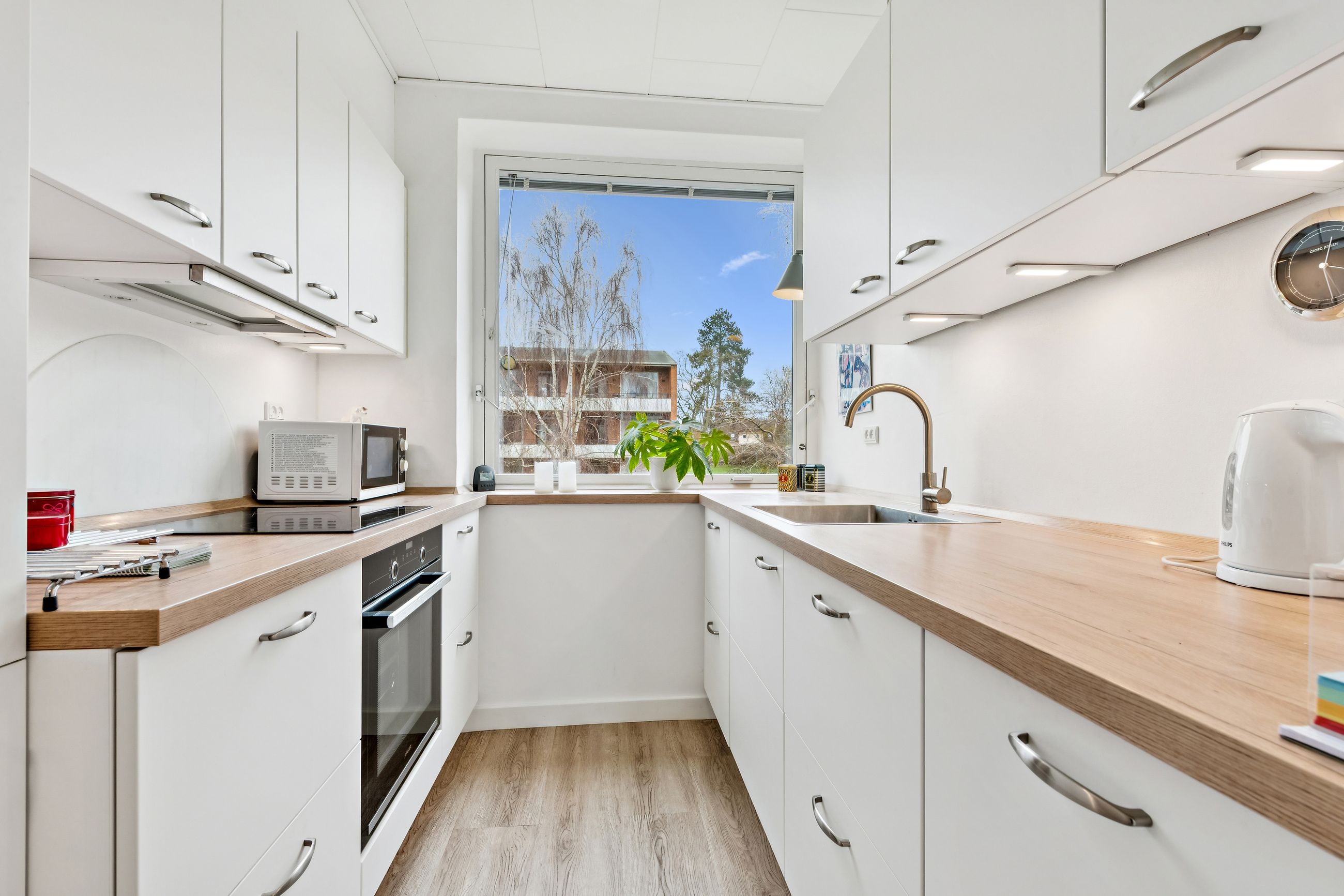Velkommen til denne smukke og velholdte lejlighed, der strækker sig over 73 kvadratmeter i en klassisk byggestil. Lejligheden er perfekt for dem, der ønsker at bo i et hjem, hvor man straks kan føle sig hjemme uden behov for yderligere renovering. Når du træder ind i entreen, bliver du mødt af et lyst og moderne køkken, der er opdateret med gode faciliteter og materialer. Køkkenet er designet til både funktionalitet og æstetik, hvilket gør det til et ideelt sted at udfolde dine kulinariske evner. Badeværelset i lyse nuancer er indrettet med brusebad og der er tilmed gjort plads til at vaskemaskinen.