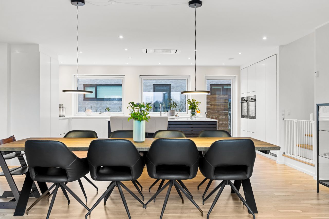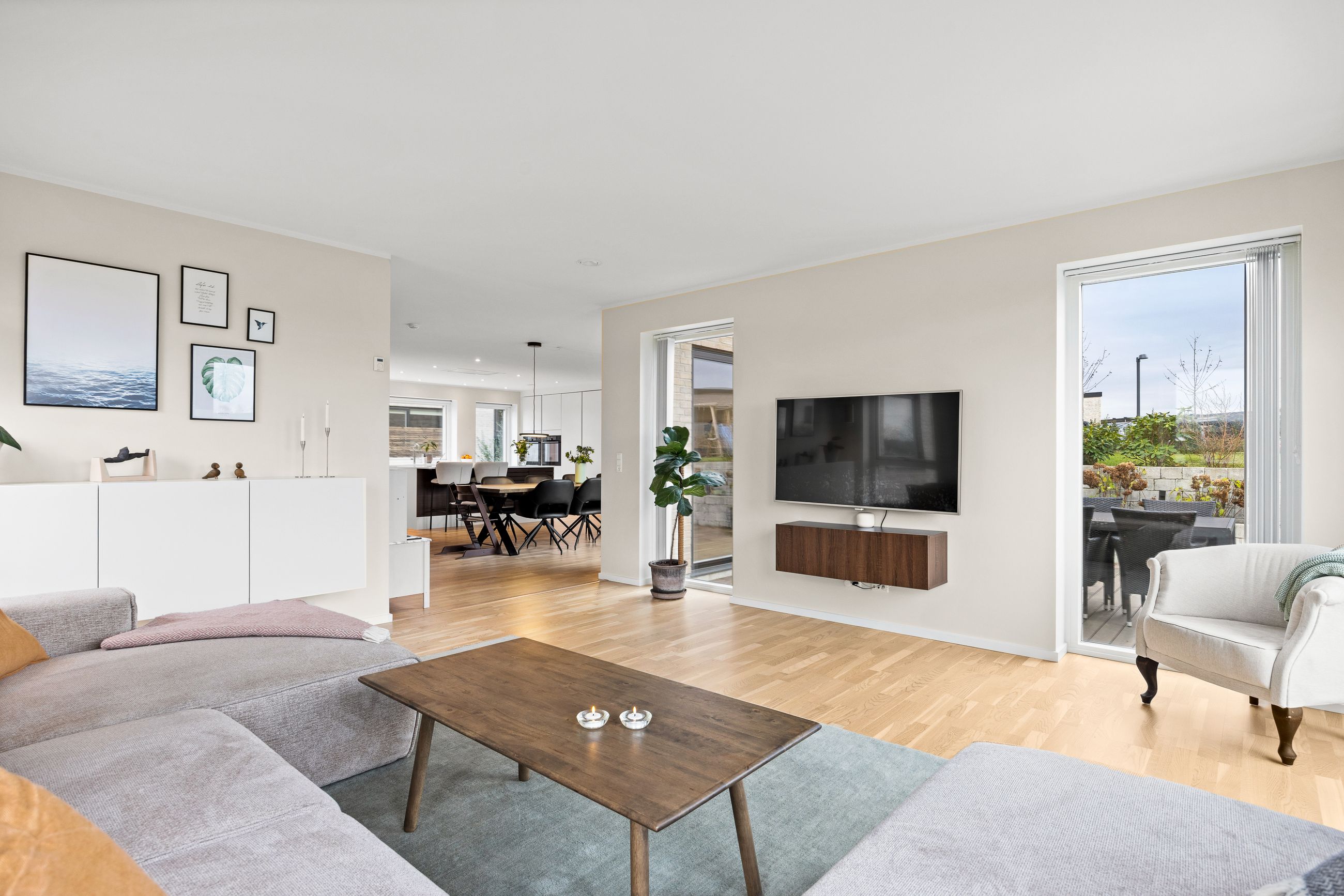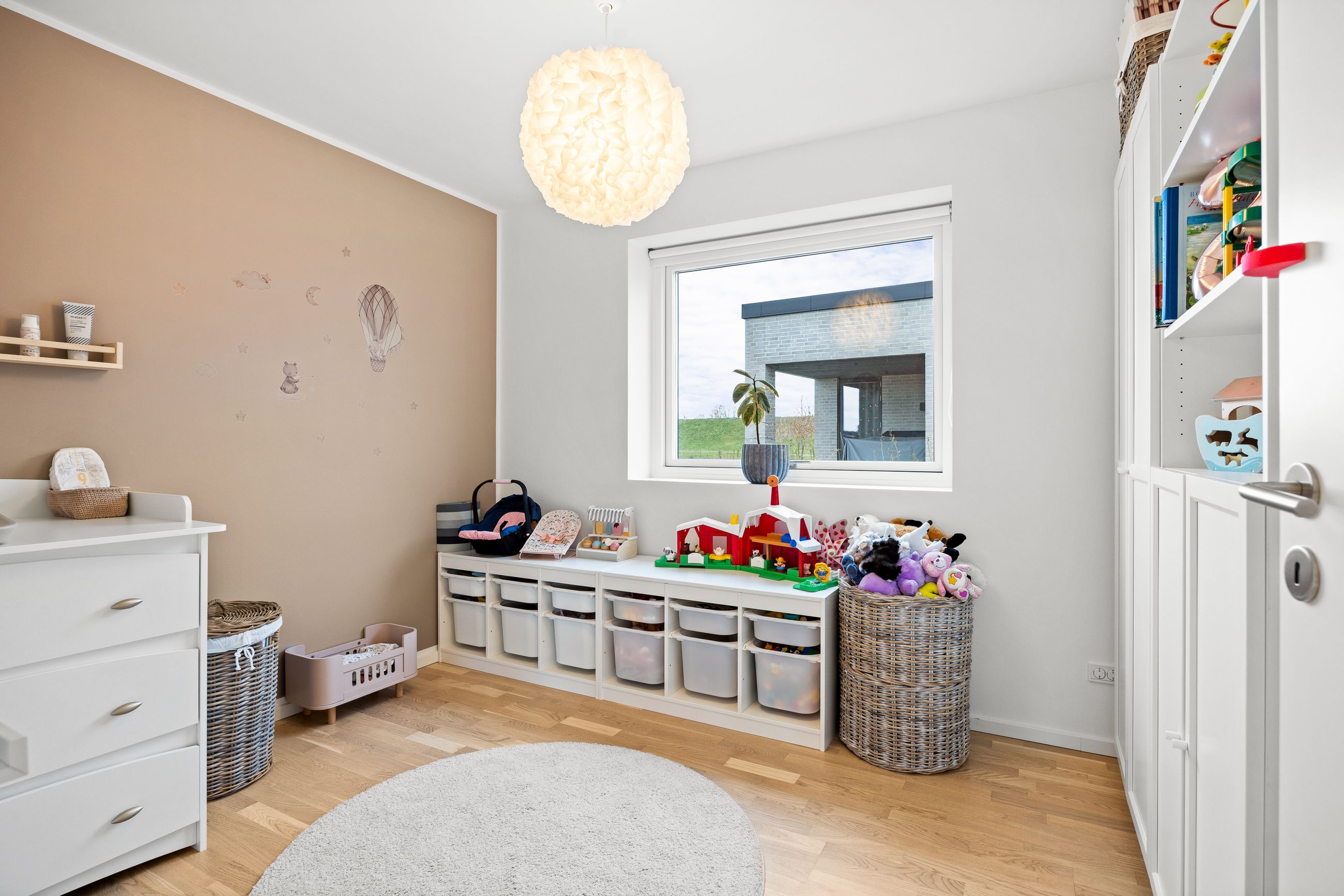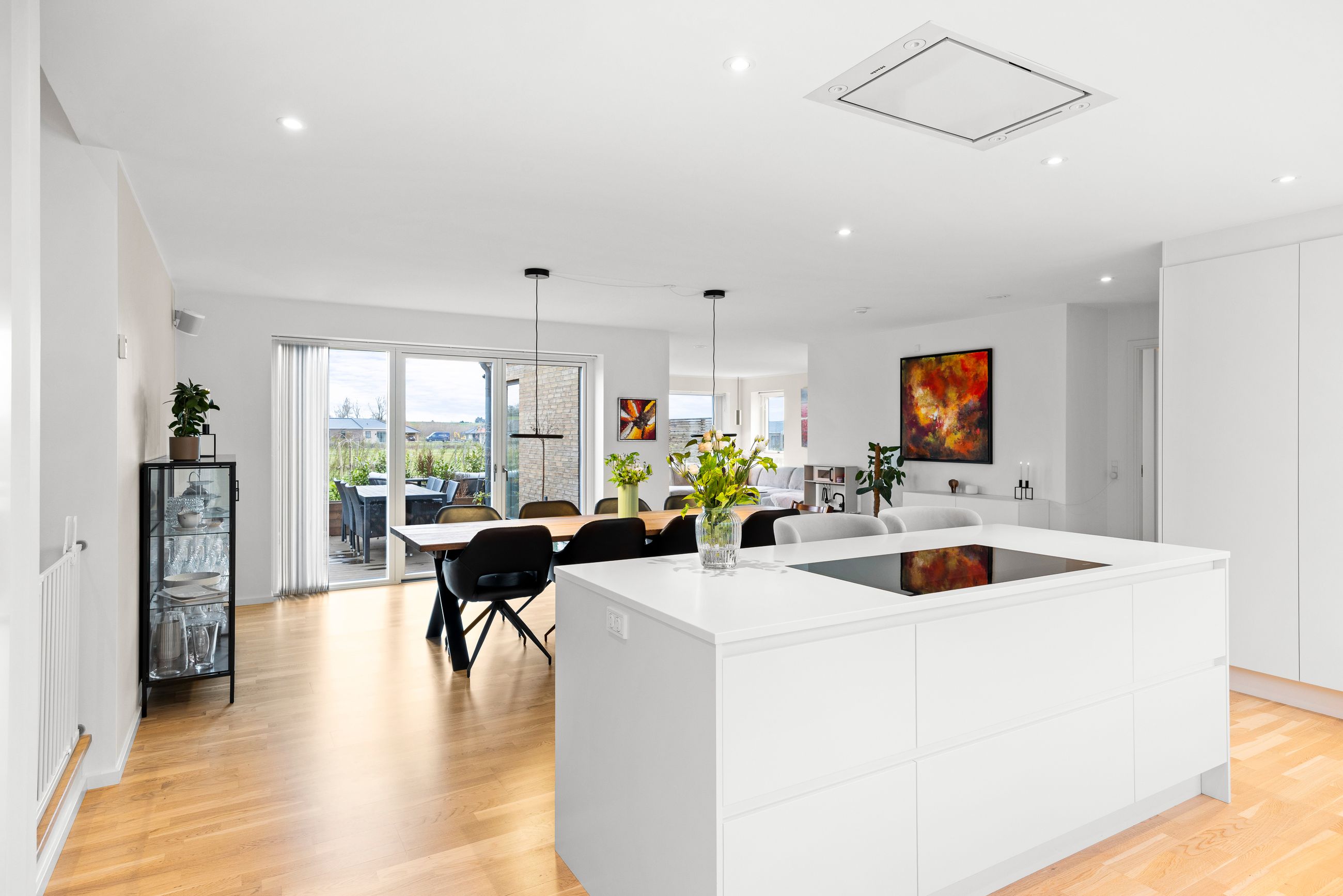 Villaen imponerer med sine rummelige værelser og det åbne køkken/alrum ligger i direkte forbindelse med stuen, hvilket skaber en flydende overgang mellem madlavning og afslapning. Dette gør det nemt at underholde gæster eller holde øje med børnene, mens du laver aftensmaden. De forskudte plan giver huset karakter. Den gennemtænkte planløsning sikrer desuden optimal udnyttelse af pladsen samt masser af opbevaringsmuligheder.