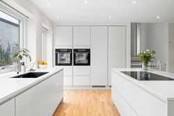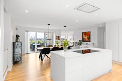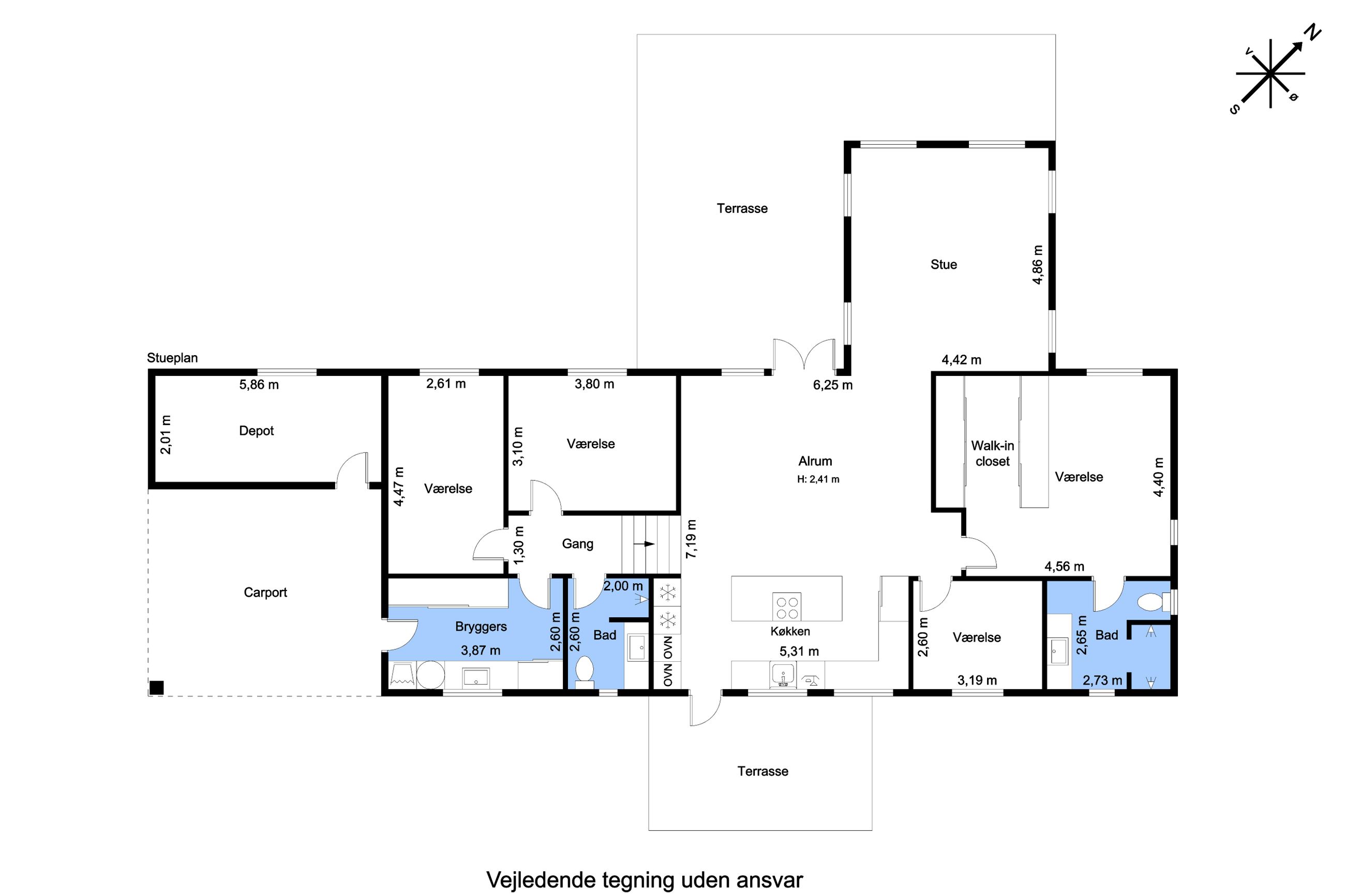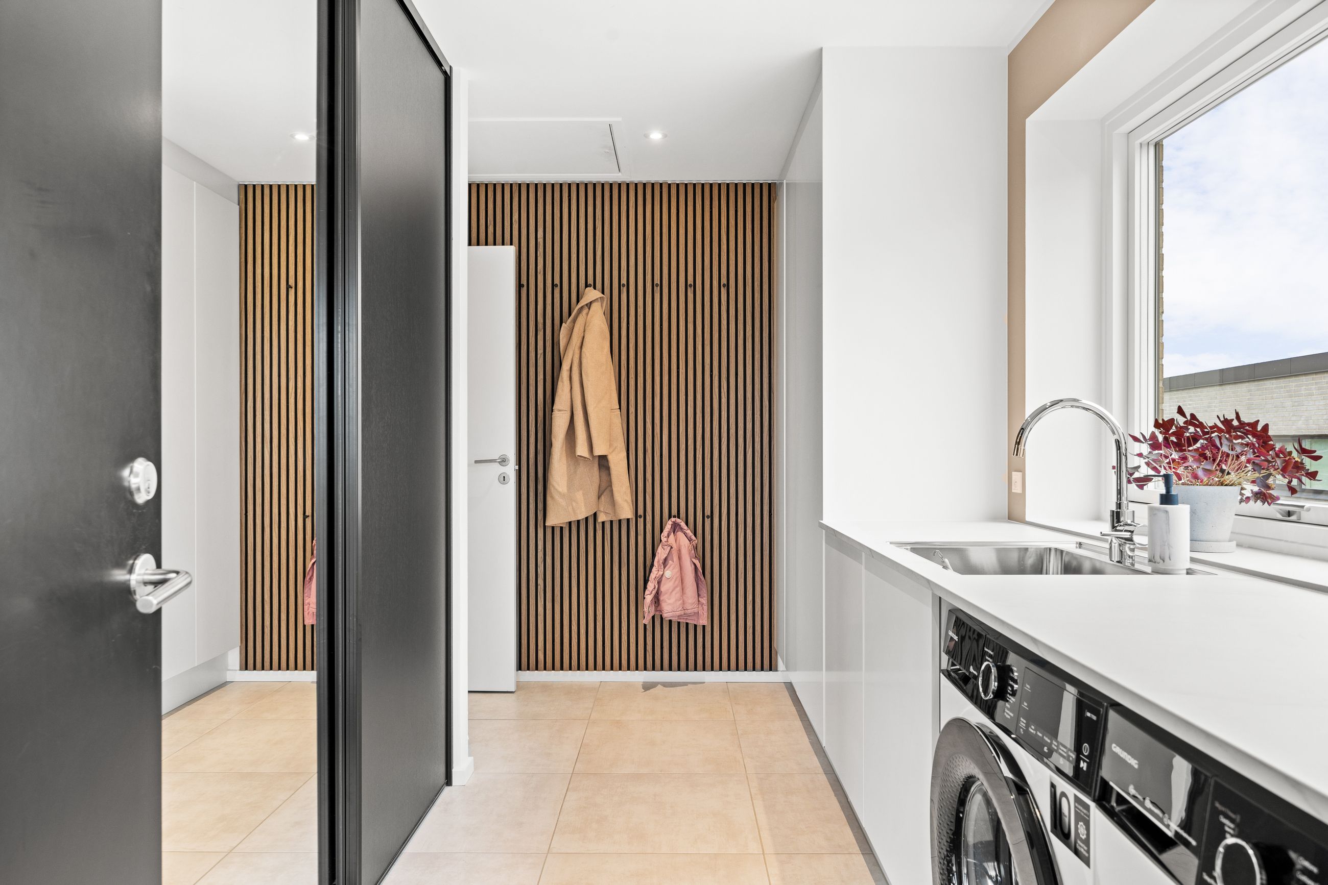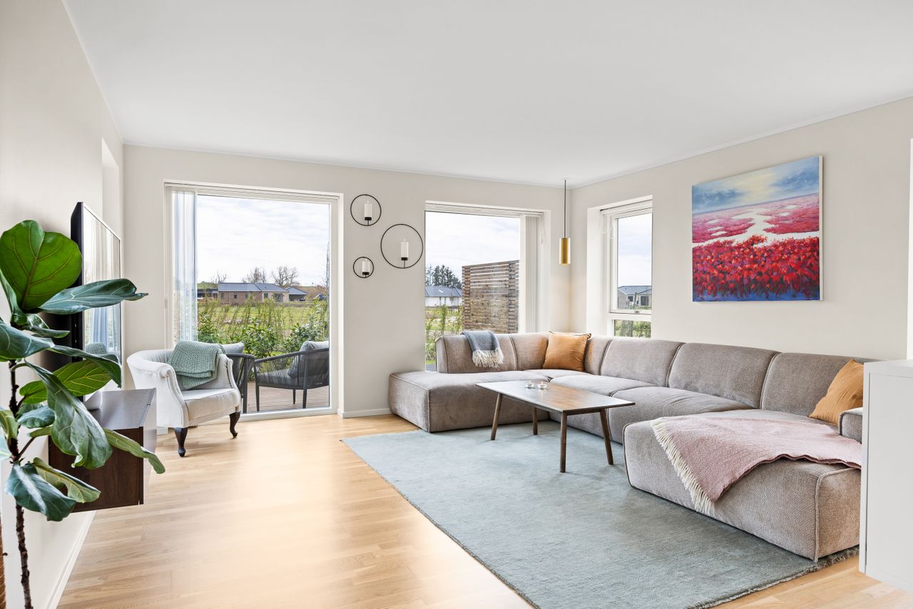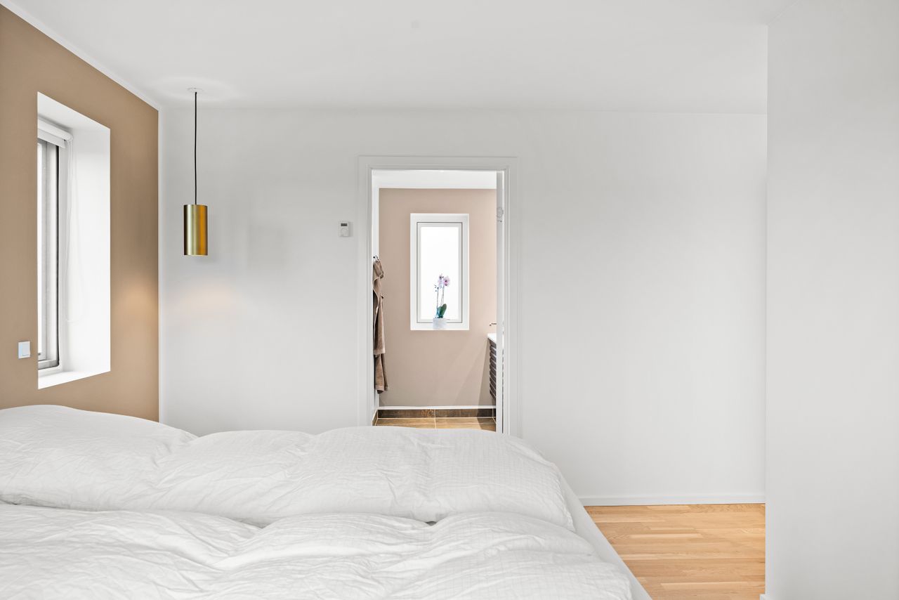Villaen imponerer med sine rummelige værelser og det åbne køkken/alrum ligger i direkte forbindelse med stuen, hvilket skaber en flydende overgang mellem madlavning og afslapning. Dette gør det nemt at underholde gæster eller holde øje med børnene, mens du laver aftensmaden. De forskudte plan giver huset karakter. Den gennemtænkte planløsning sikrer desuden optimal udnyttelse af pladsen samt masser af opbevaringsmuligheder.