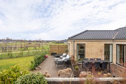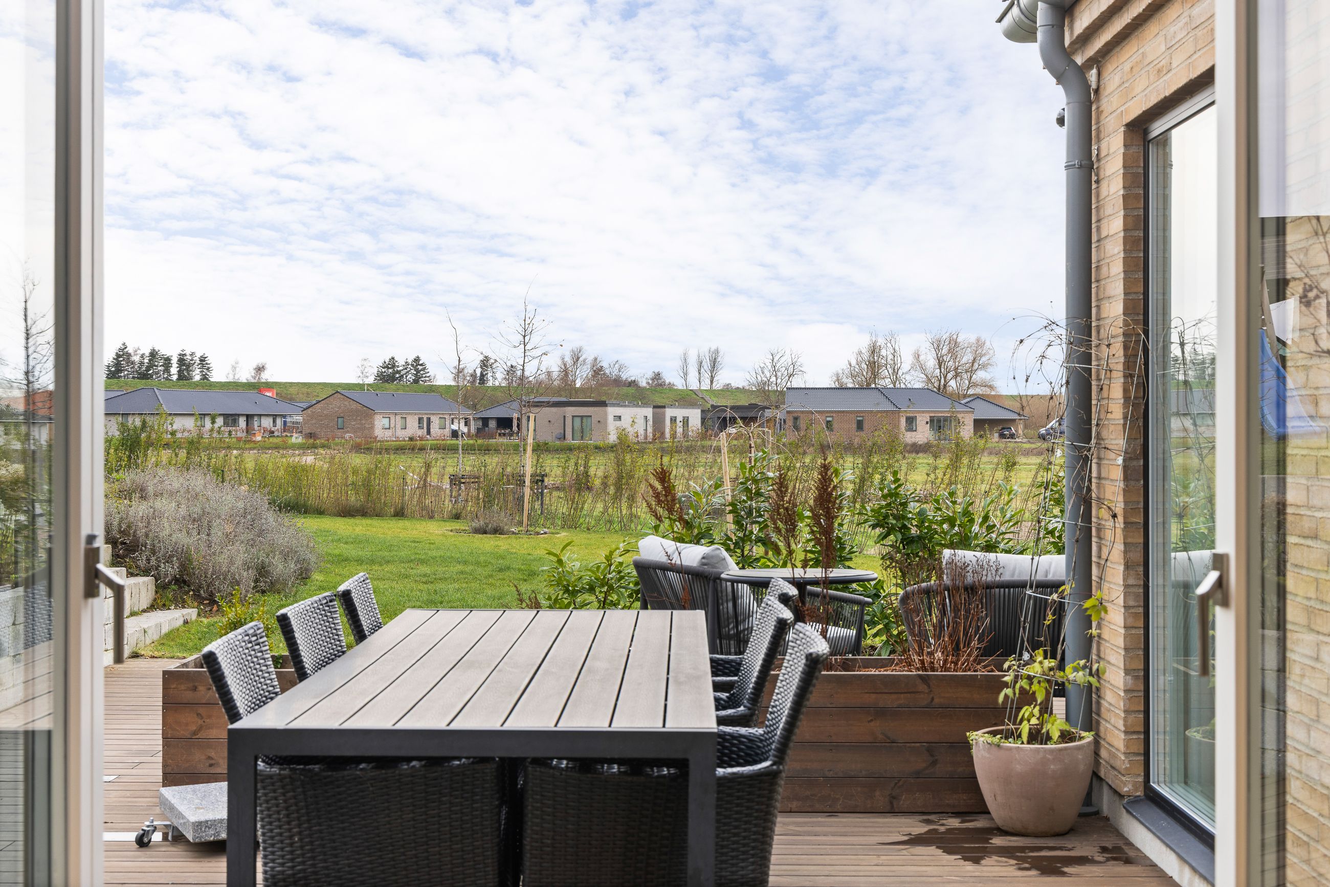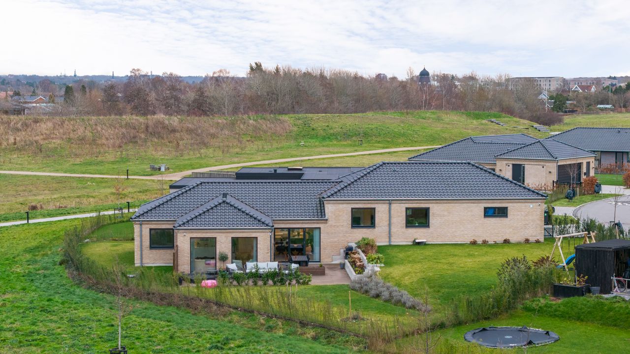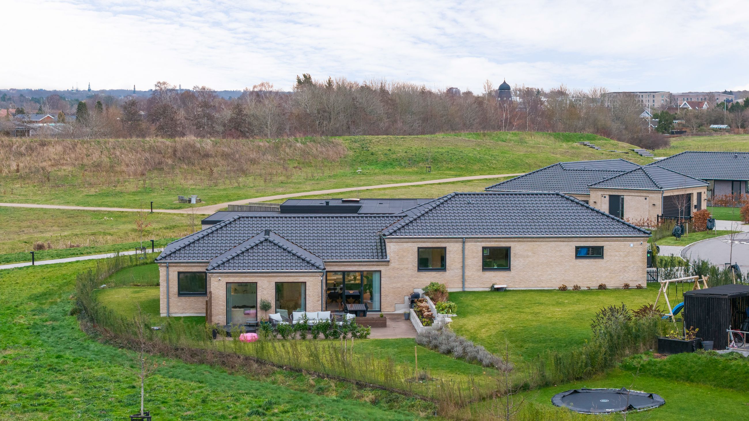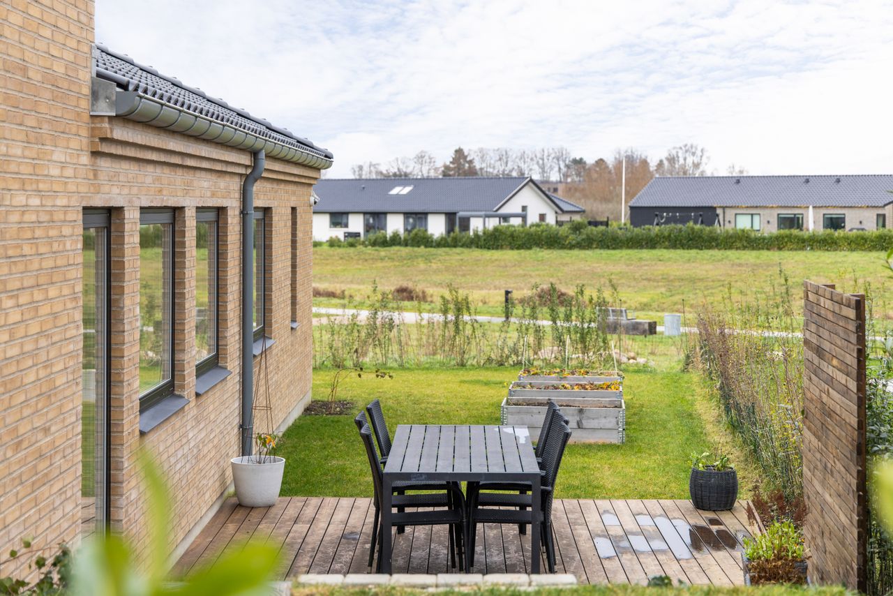 Udendørs venter en fantastisk have anlagt i flere niveauer. Her er rigelig plads til børnenes trampolin eller fodboldmål samt områder dedikeret til grillhygge på sommeraftenerne. Haven tilbyder et frit udsyn over området, hvilket skaber en følelse af ro og åbenhed.