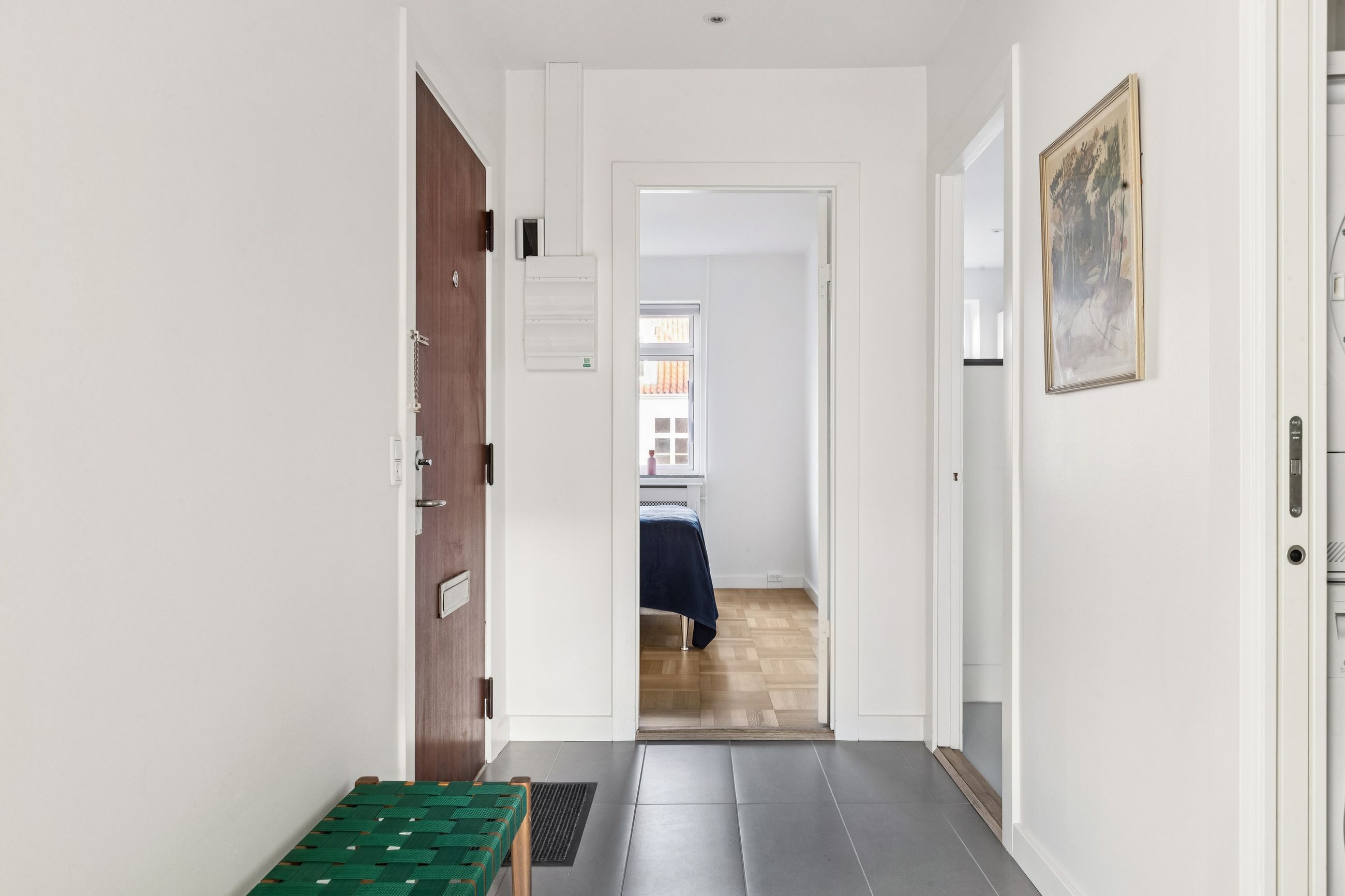 Lejligheden har bevaret de originale gulve i både værelset og stuen, hvilket giver en varm og indbydende atmosfære. De smukke trægulve komplimenteres af moderne opdateringer i entreen, badeværelset og køkkenet. Her er der blevet lagt vægt på godt materialevalg, hvilket sikrer både funktionalitet og æstetik.