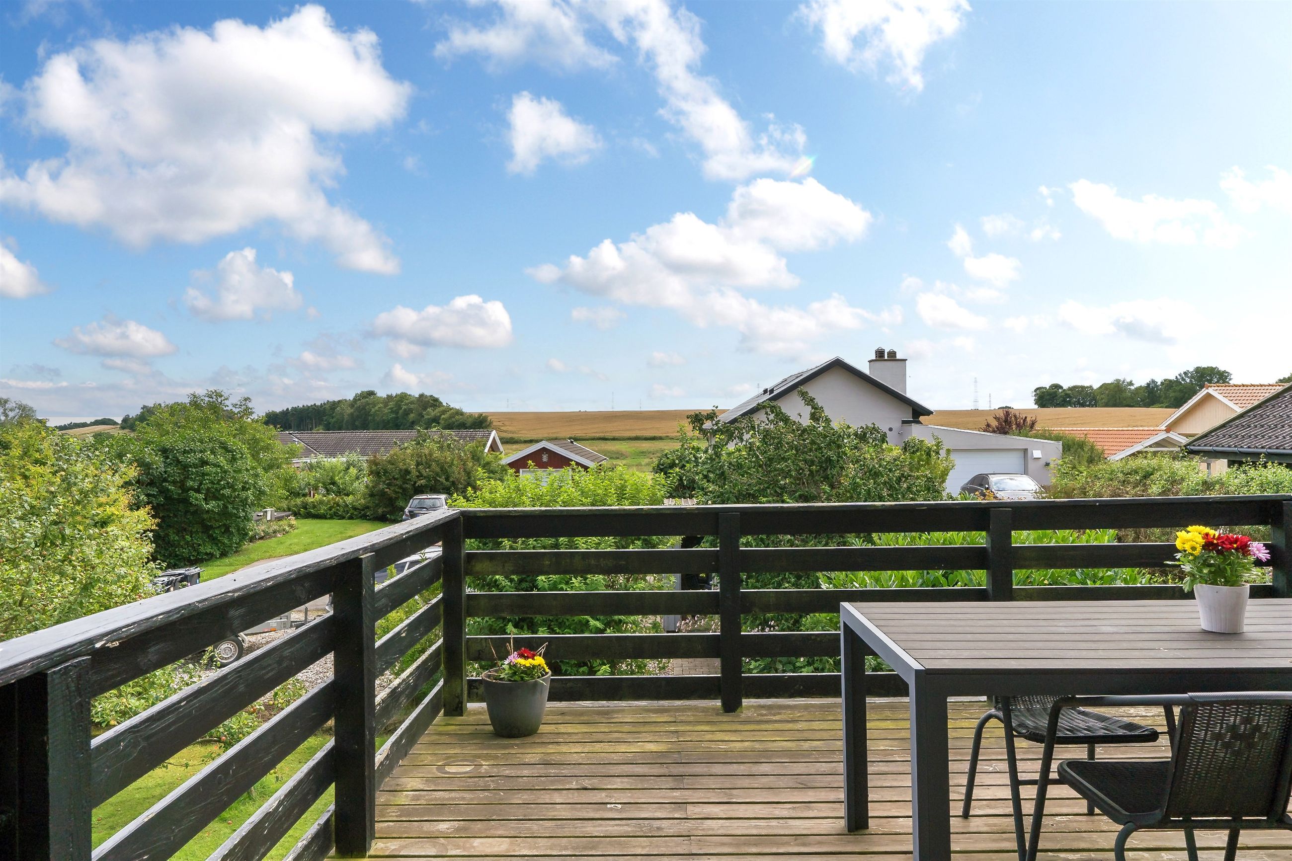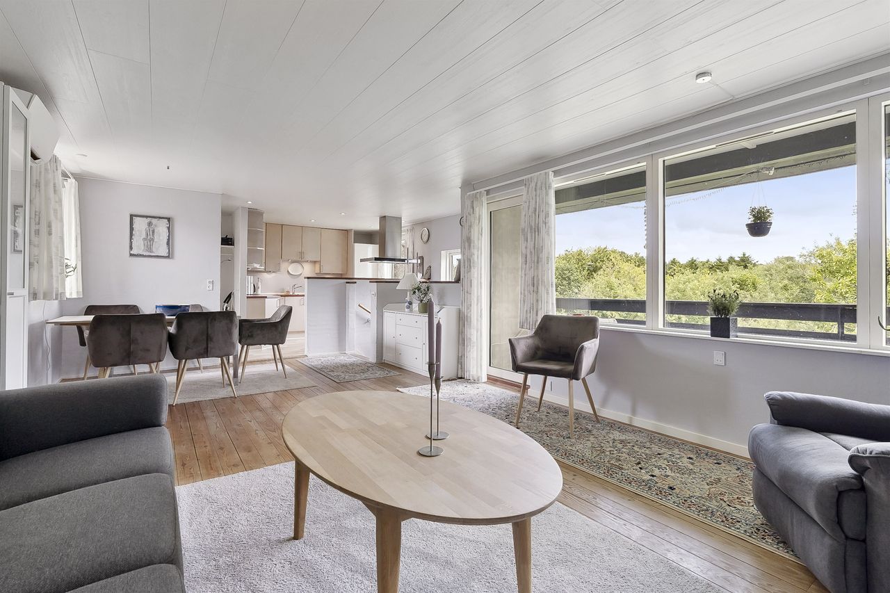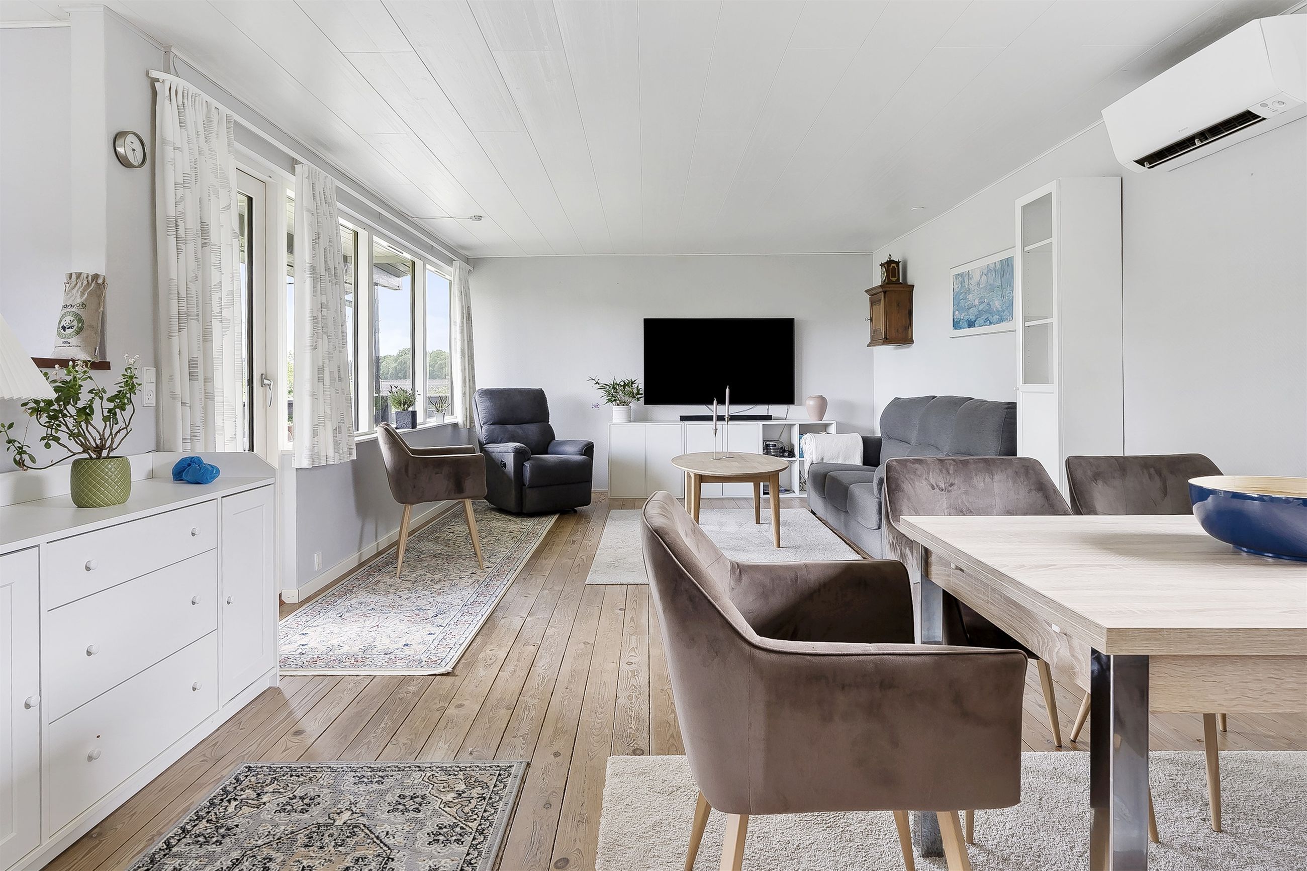 I stueplan byder boligen på en rummelig entre, med adgang til husets første badeværelse, med adgang til husets første badeværelse, der åbner op til et lyst og åbent opholdsrum med stue og køkken-alrum i ét. Herfra er der direkte udgang til husets store sydvendte altan/træterrasse, hvor udsigten over det åbne landskab tager pusten fra én – uanset årstid. Det er det oplagte sted til grillaftener, solbadning eller bare ren afslapning i fredelige omgivelser.