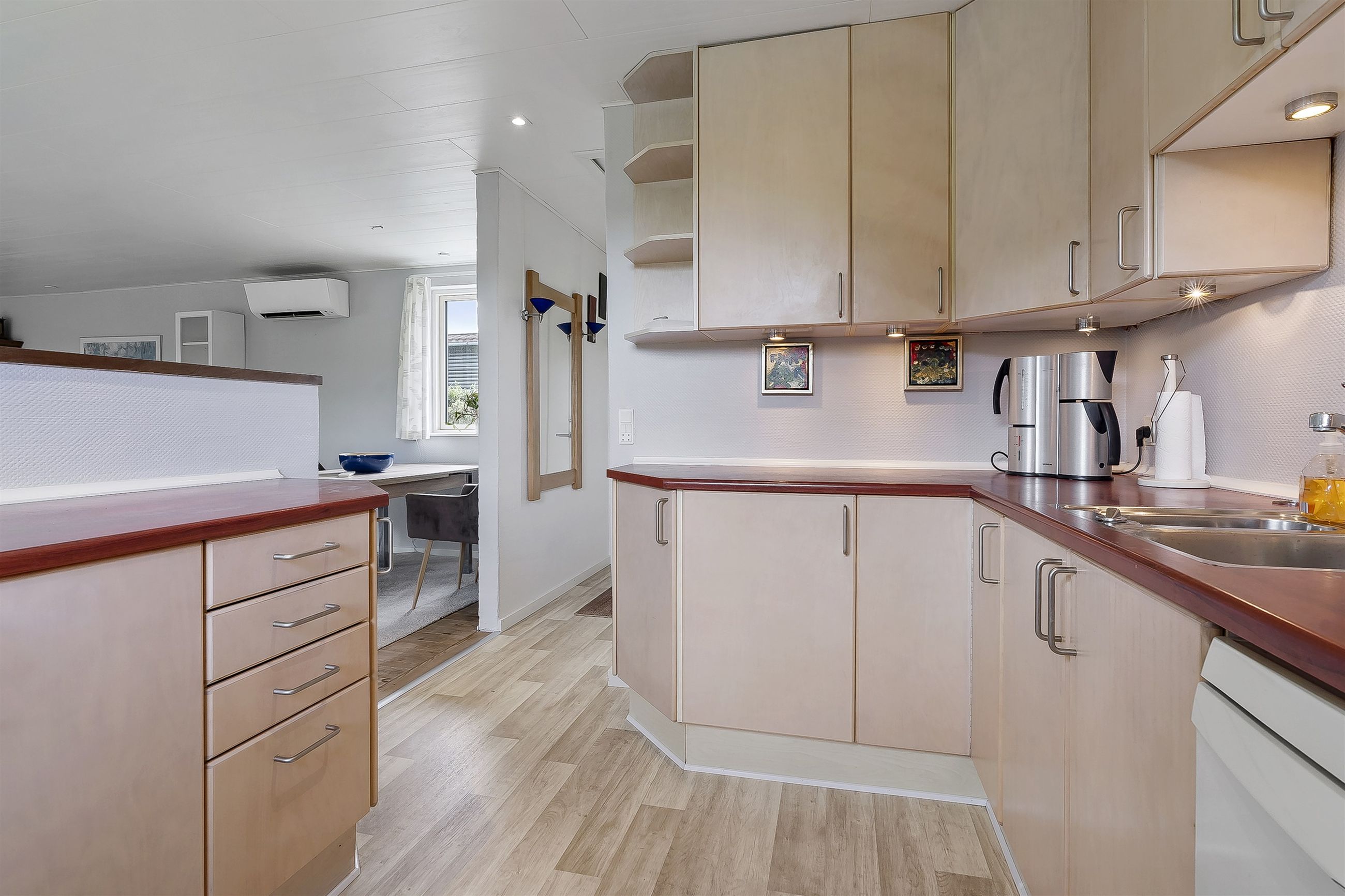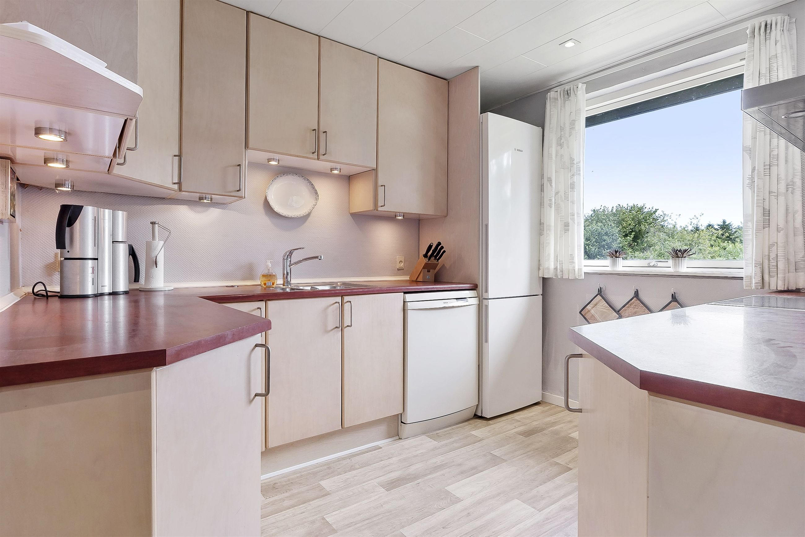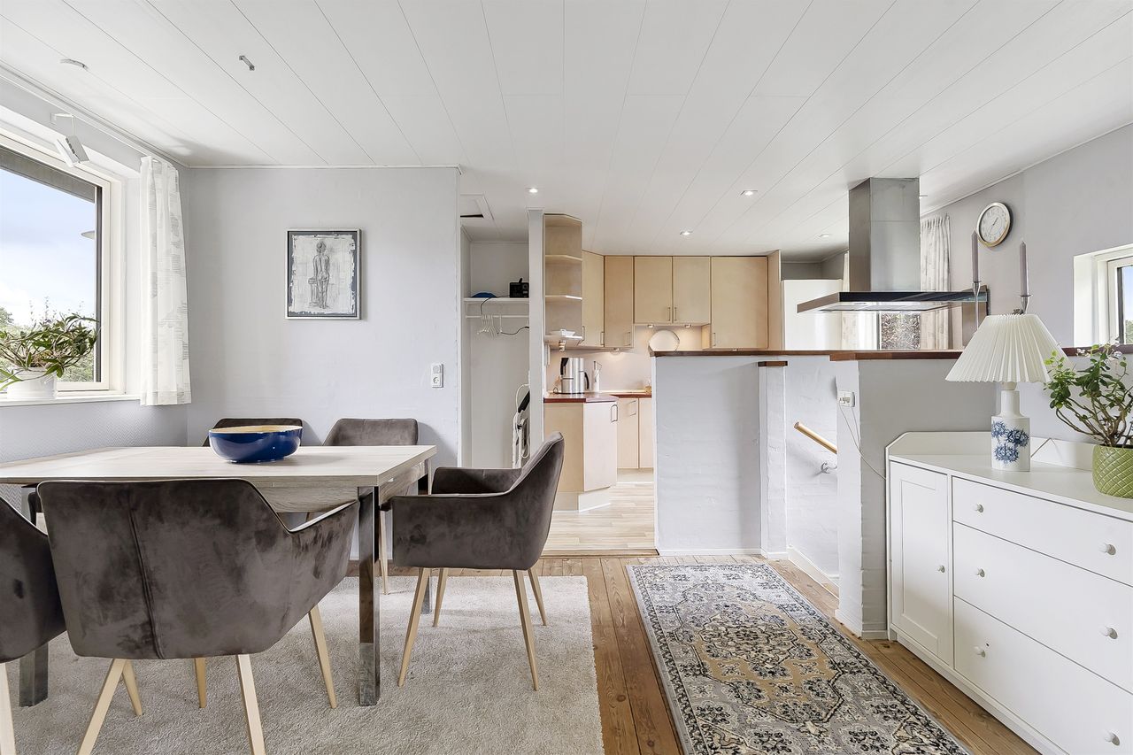 I stueplan byder boligen på en rummelig entre, med adgang til husets første badeværelse, med adgang til husets første badeværelse, der åbner op til et lyst og åbent opholdsrum med stue og køkken-alrum i ét. Herfra er der direkte udgang til husets store sydvendte altan/træterrasse, hvor udsigten over det åbne landskab tager pusten fra én – uanset årstid. Det er det oplagte sted til grillaftener, solbadning eller bare ren afslapning i fredelige omgivelser.