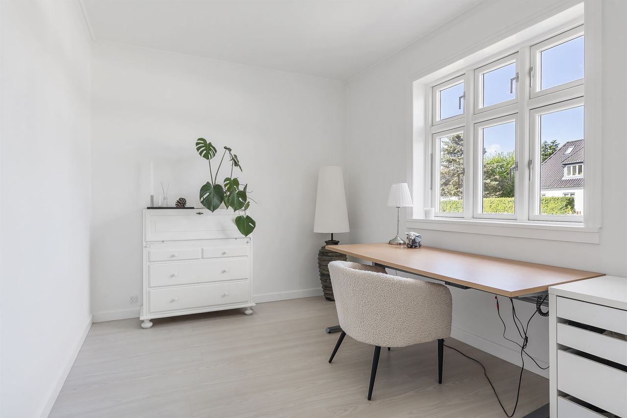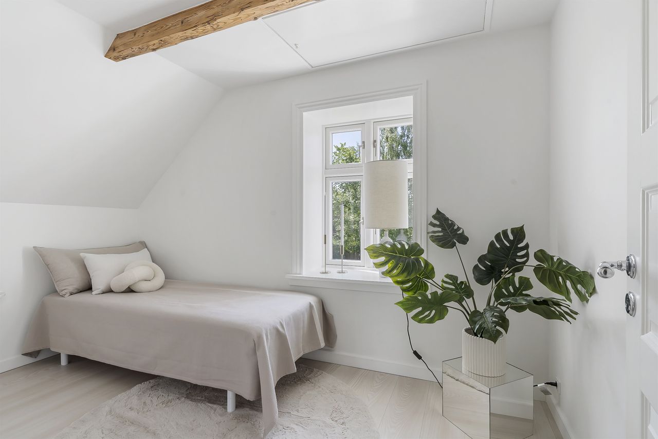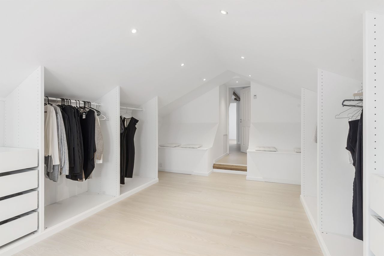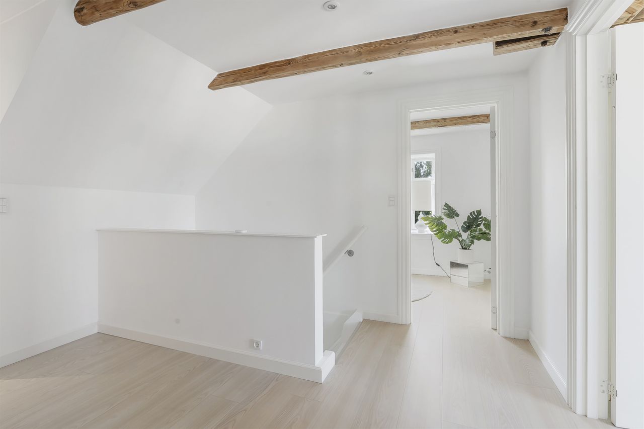 På førstesalen venter tre gode værelser samt et rummeligt walk-in closet, der sætter prikken over i’et på den gennemtænkte indretning. Alt fra taget (skiftet i 2018) til de mindste detaljer er nøje udvalgt med fokus på kvalitet og komfort. I walk-in er strømmen sluttet til de yderste kontakter, så alt strøm i rummet nem kan slukkes på vejen ud.