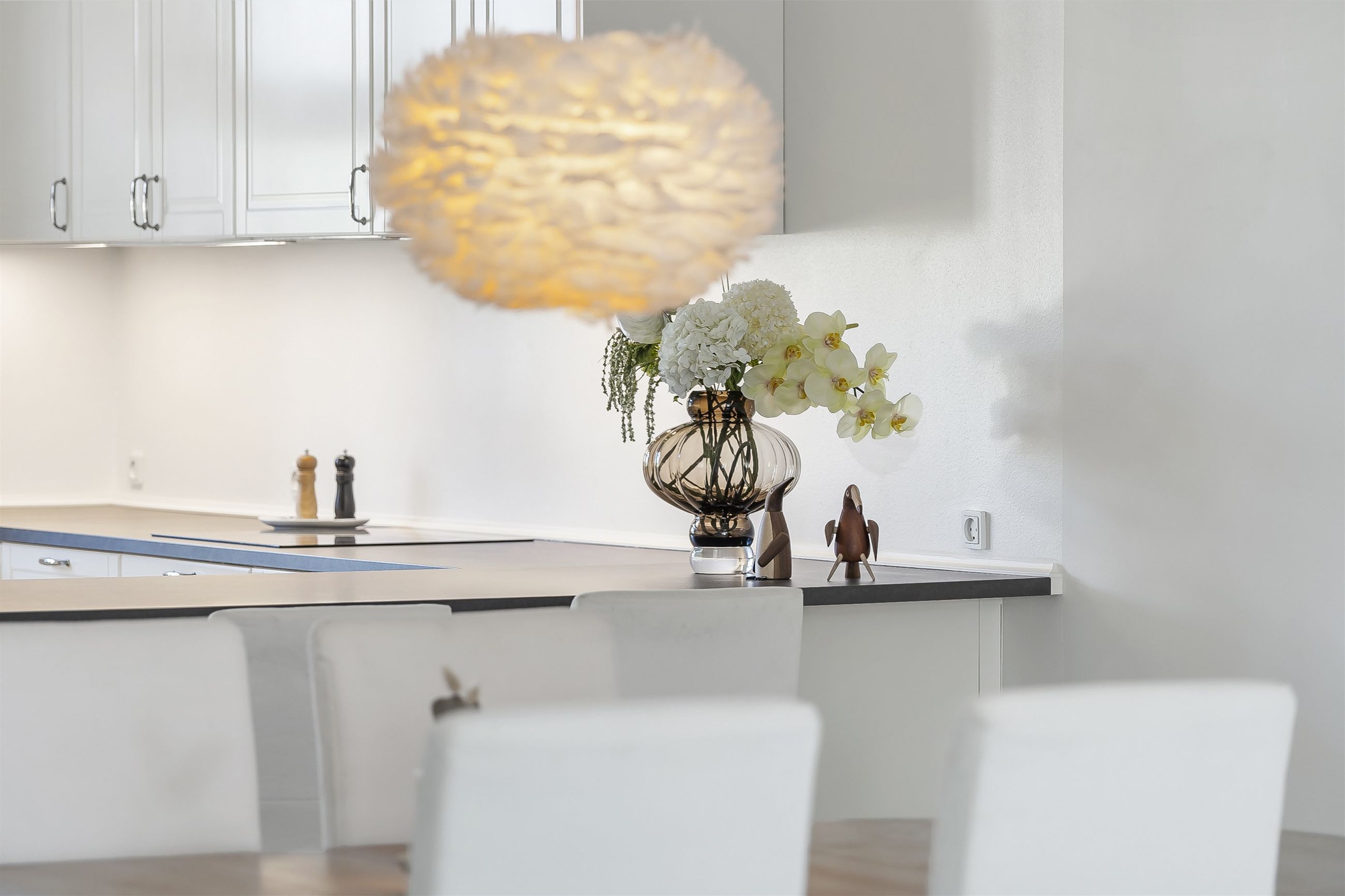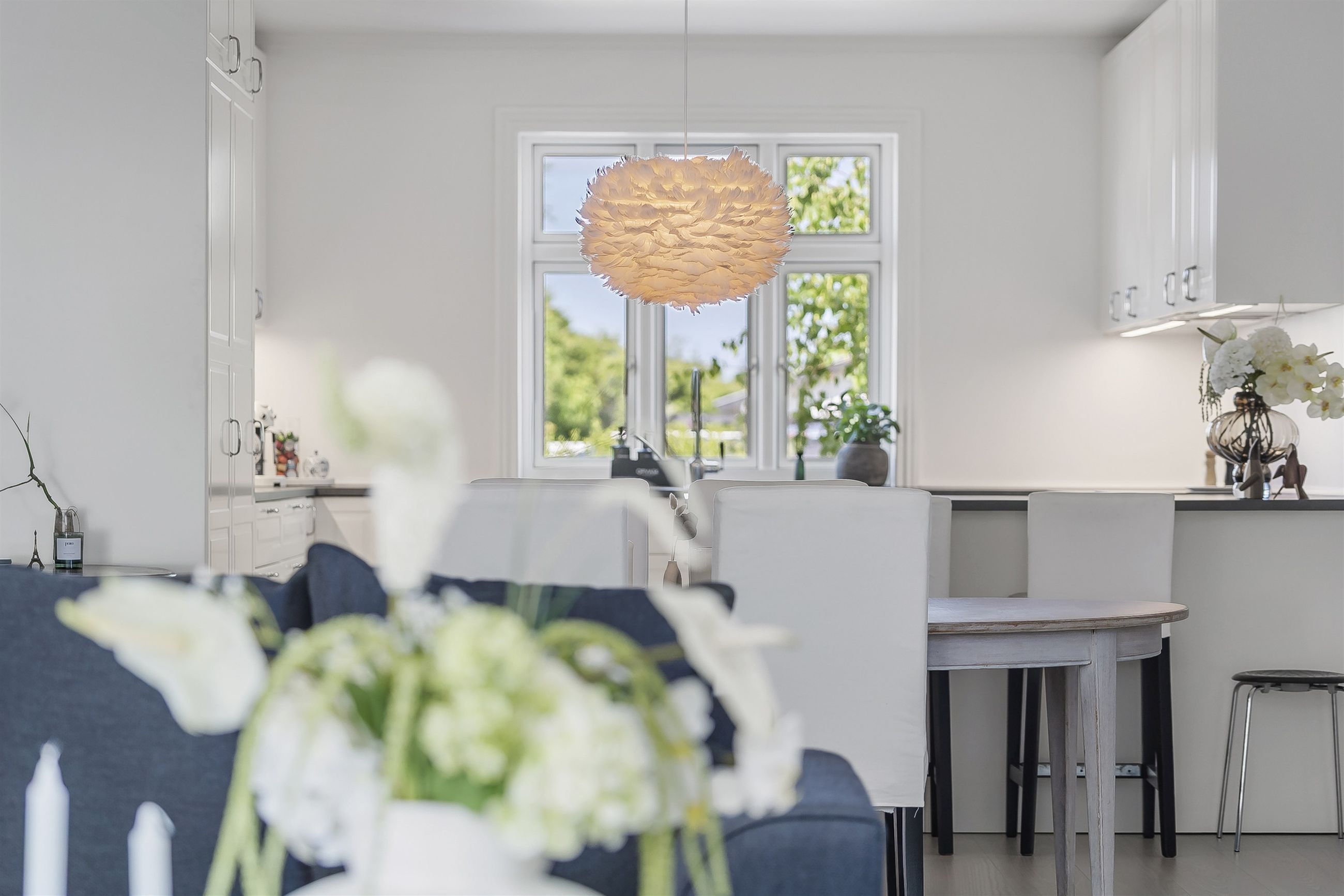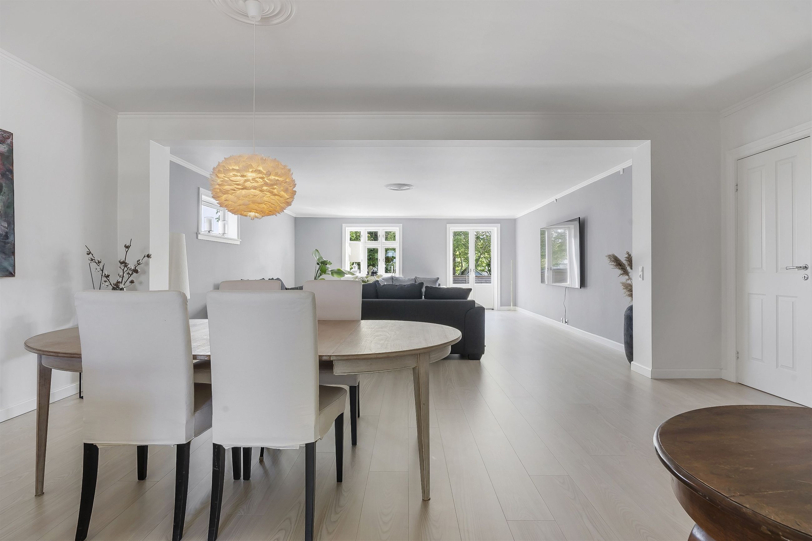 Indenfor bydes du velkommen af store, lyse rum med gulvvarme overalt – et hjem der både føles indbydende og funktionelt. Det stilrene køkkenalrum er boligens naturlige samlingspunkt, hvor der er god plads til både hverdag og selskaber.