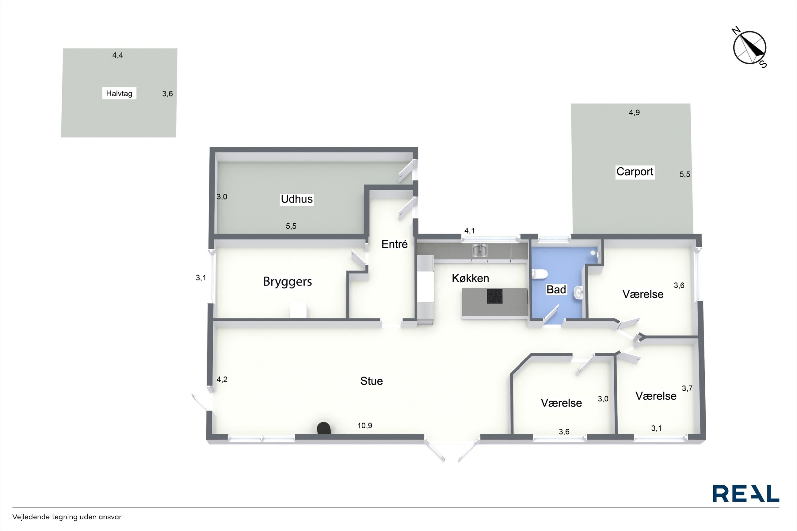 Entréen er indbydende og rummelig, og bryggerset er praktisk indrettet – med potentiale til at etablere et ekstra badeværelse, hvis I ønsker det på sigt.