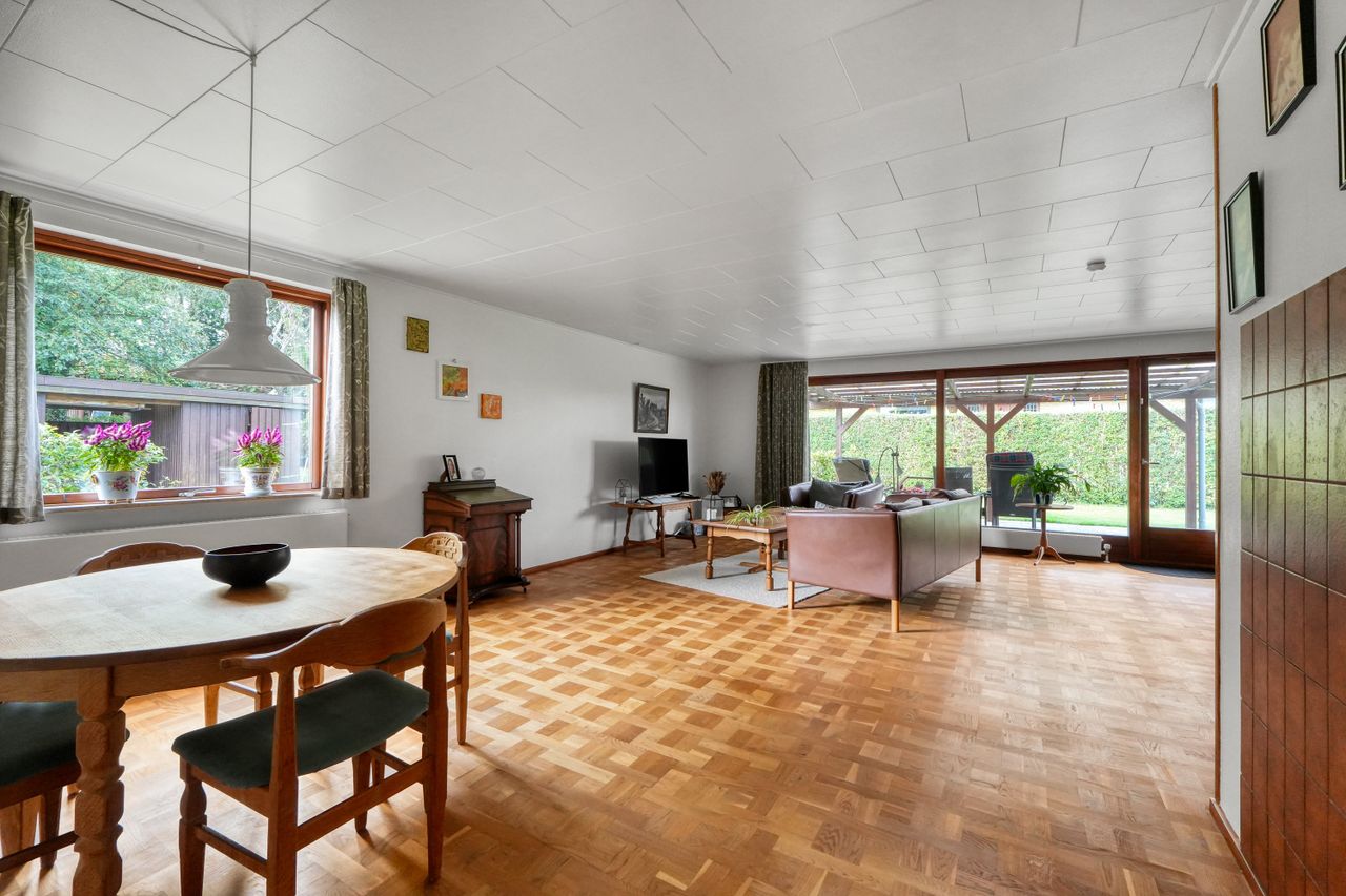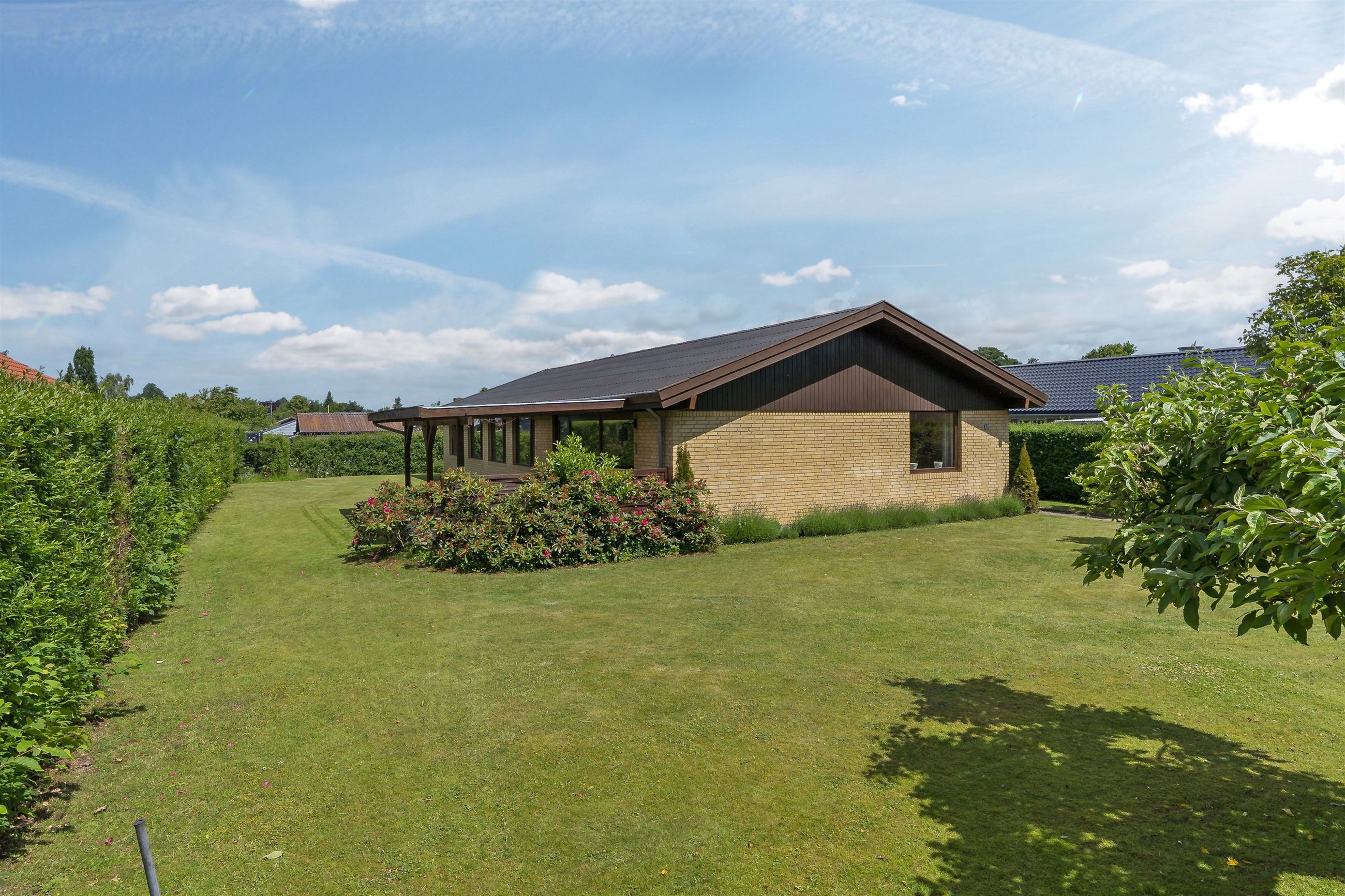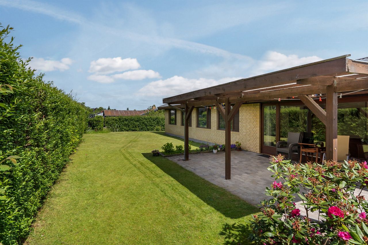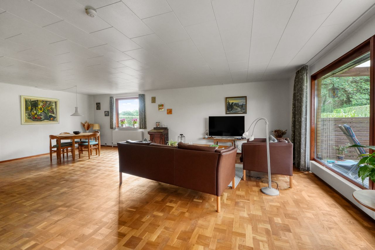 4 gode soveværelser og en stor, lys stue med udgang til 21 m2 overdækket terrasse, hvor have og stue smelter sammen hele sommeren