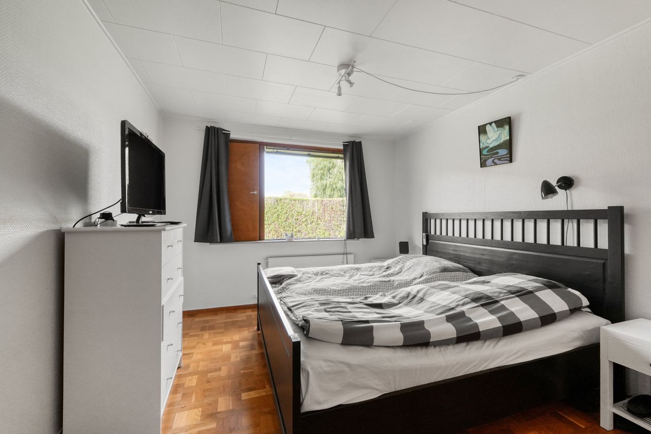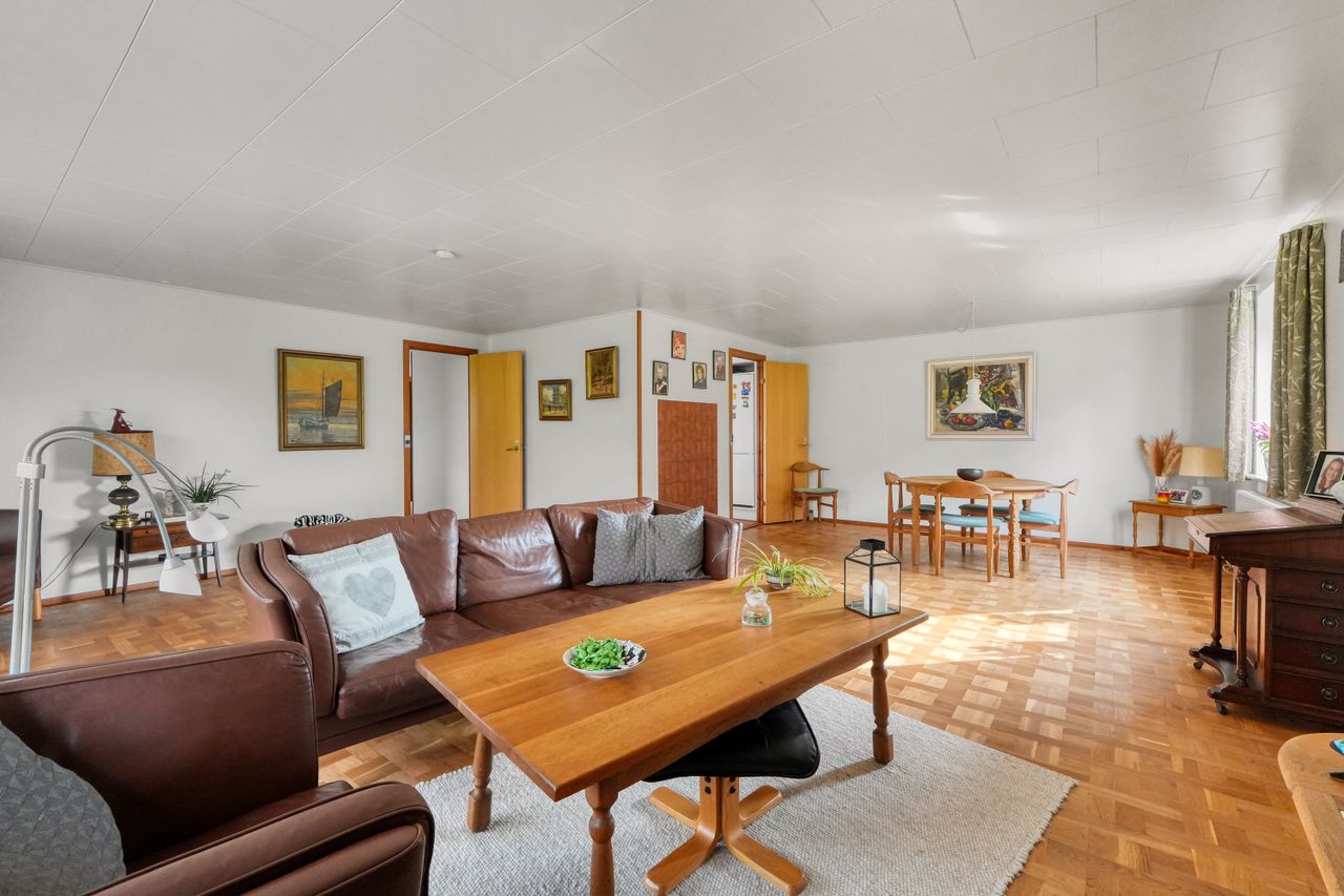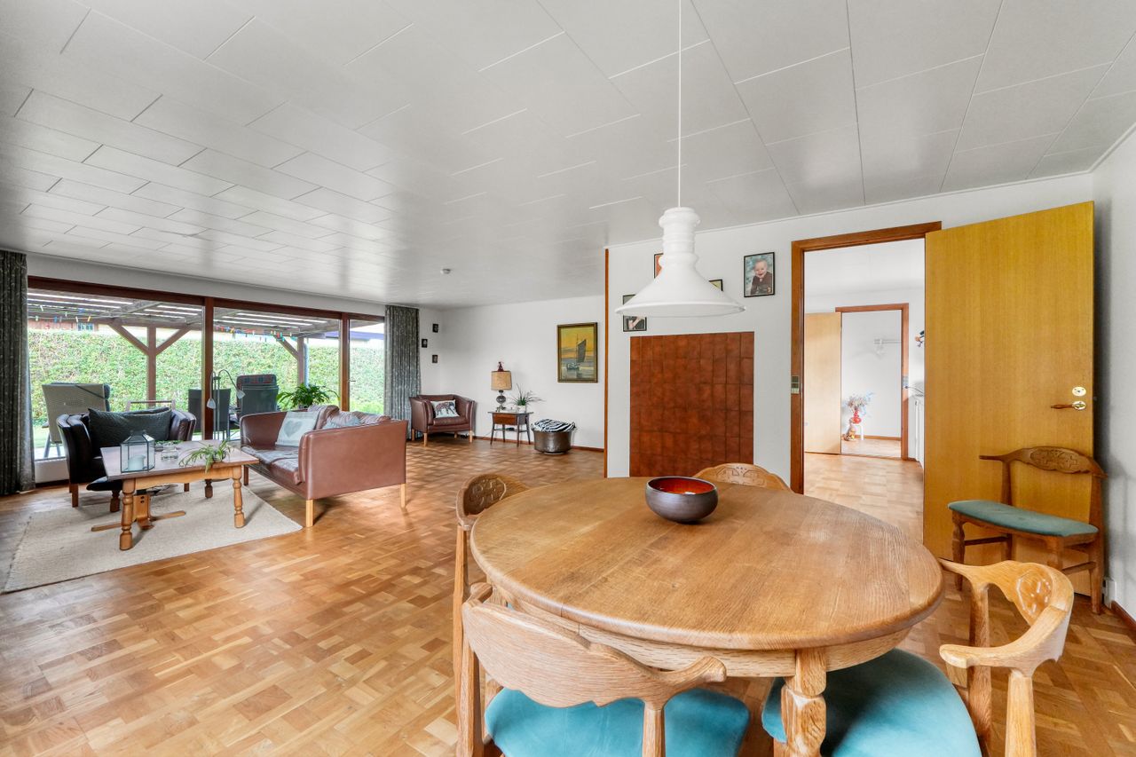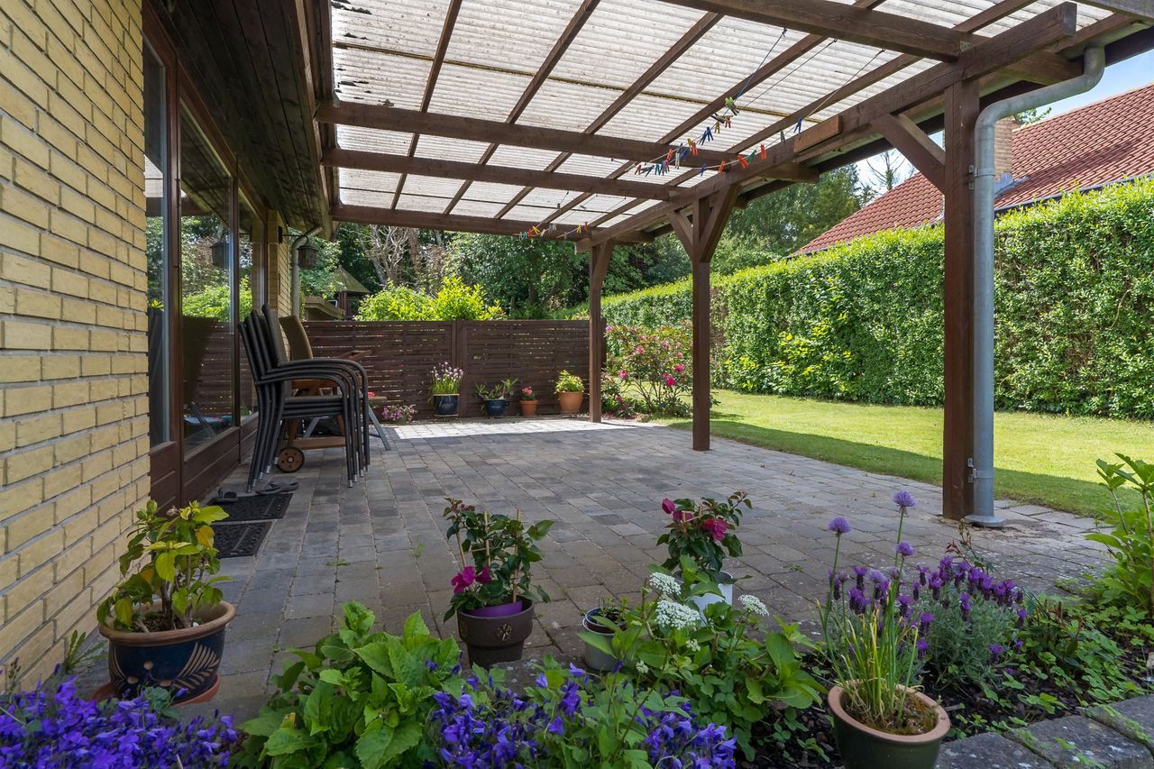 4 gode soveværelser og en stor, lys stue med udgang til 21 m2 overdækket terrasse, hvor have og stue smelter sammen hele sommeren