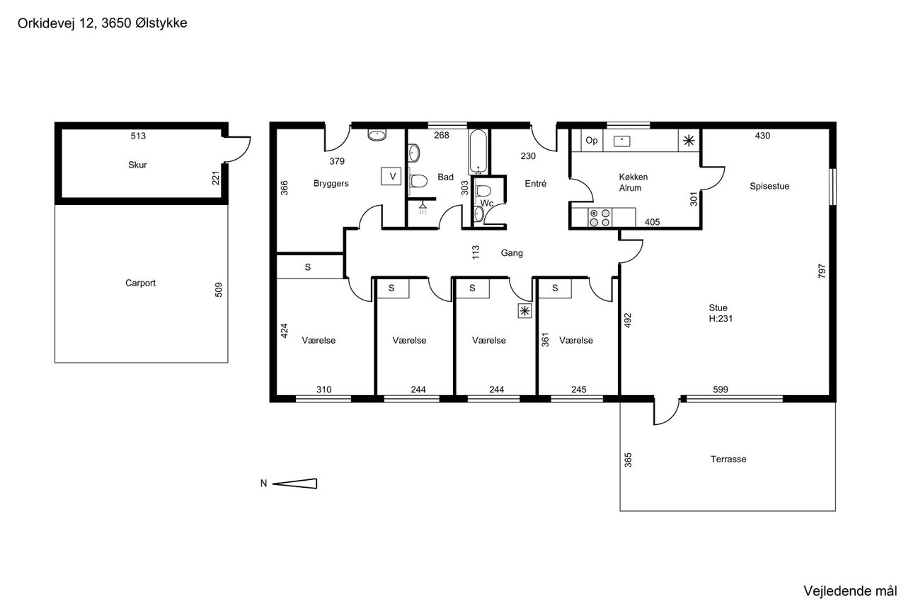 Som prikken over i’et er der en stor dobbeltcarport på 27 m2 samt et tilstødende skur på 12 m2, så både bil og cykler kan stå trygt og tørt.