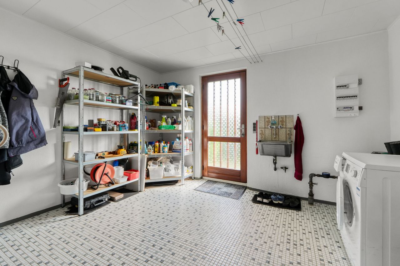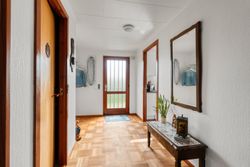 Stort bryggers, der fungerer som daglig indgang med plads til flyverdragter, sko og tasker