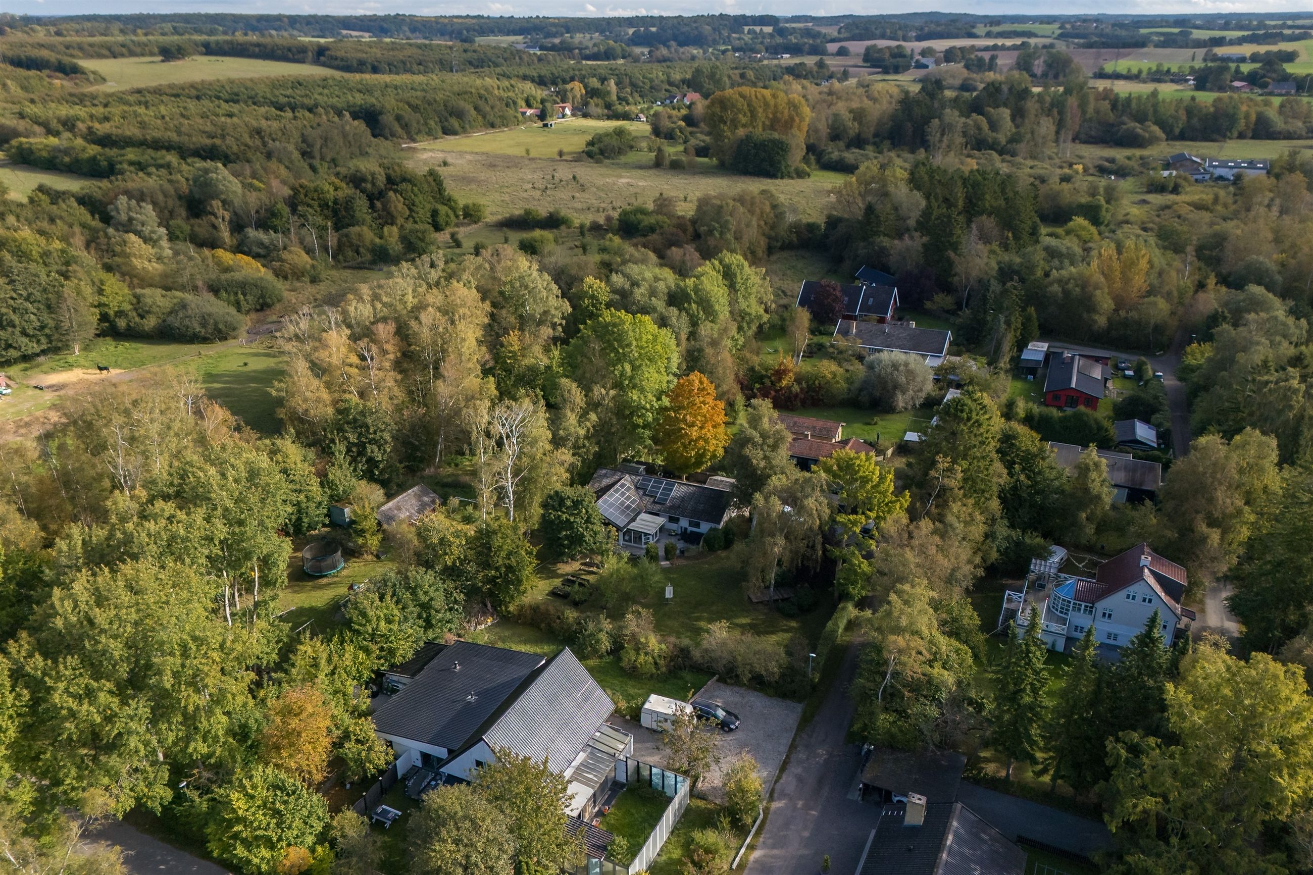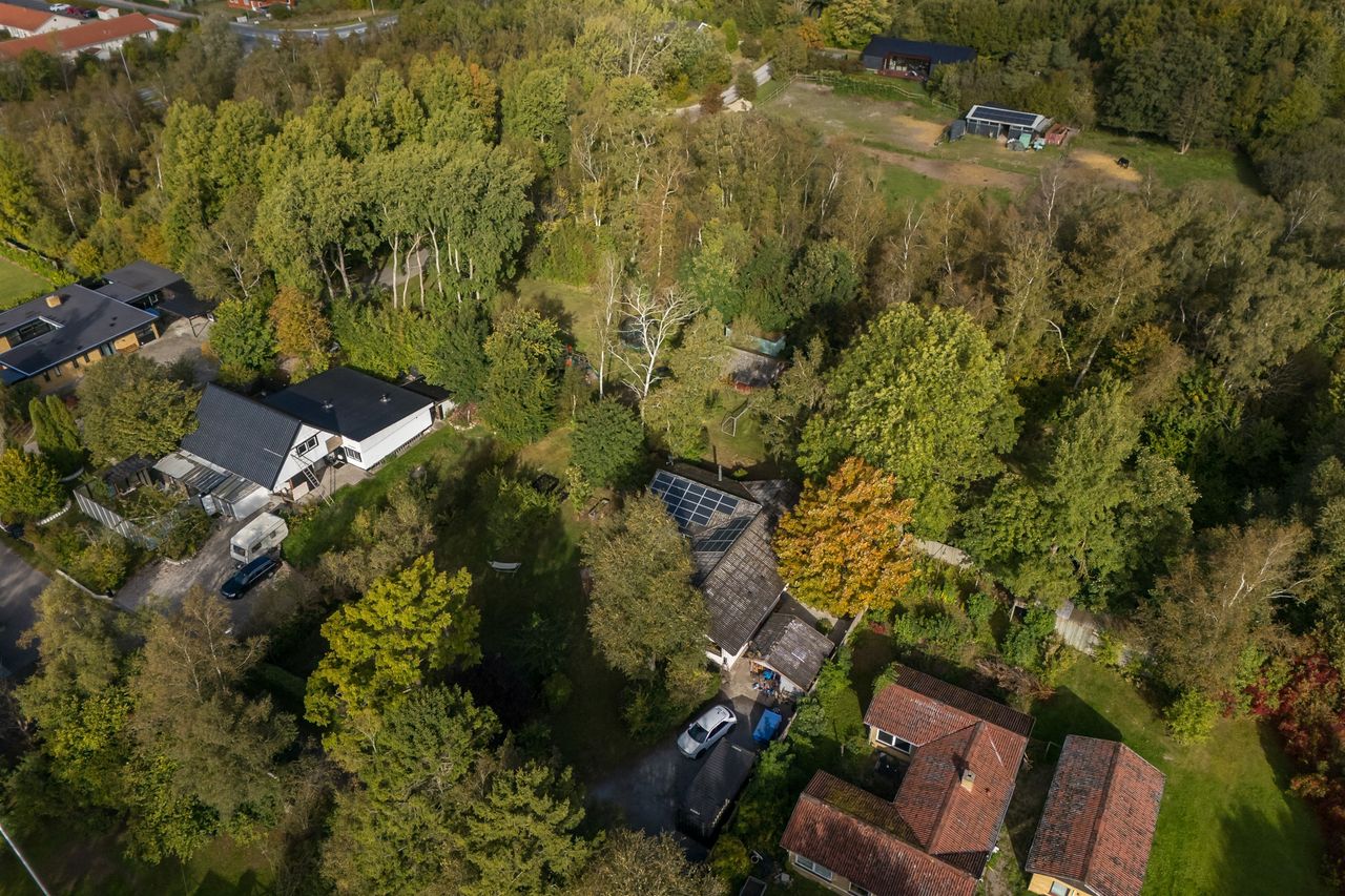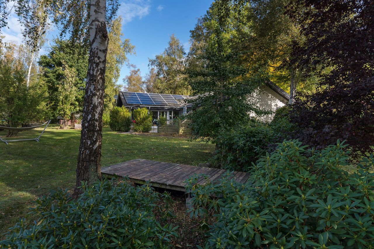 Velkommen til en villa, hvor hverdagen får luft under vingerne, og hvor natur og plads går hånd i hånd. Her på skovens kant venter et hjem, der indbyder til leg, ro og nærvær – uanset om det er vandkamp i haven en varm sommerdag, jagten på spændende kryb med jord under neglene, eller en tur forbi nabolagets heste.