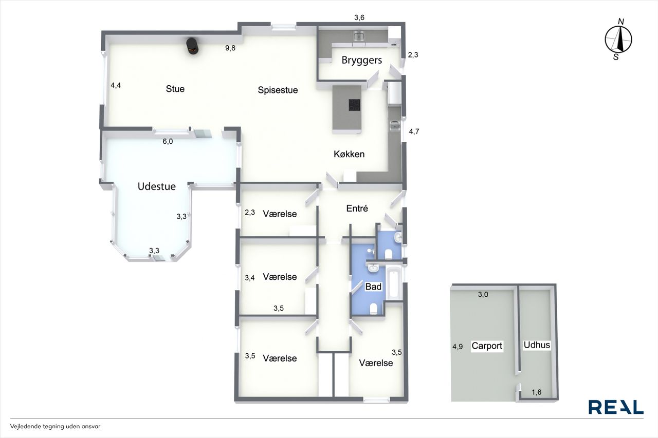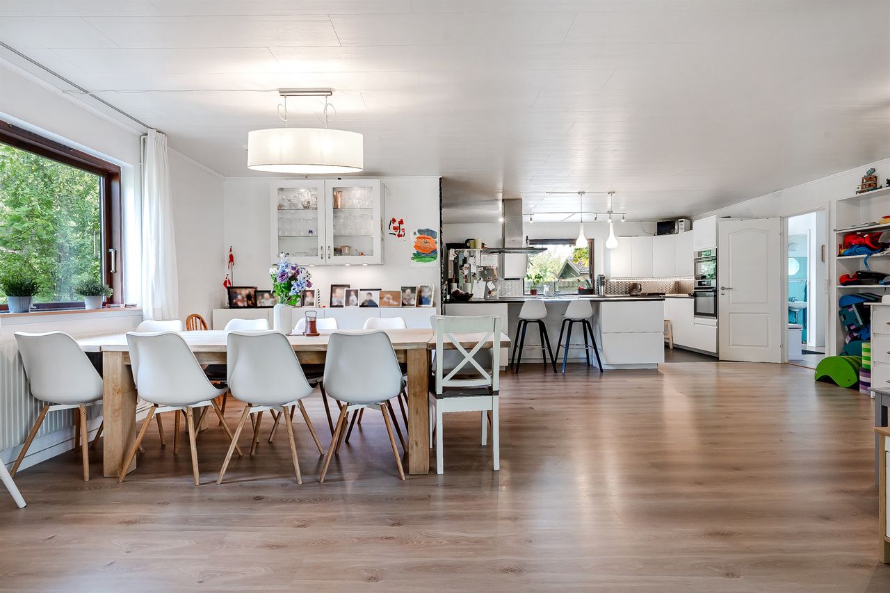 Med hele 164 m2 bolig – plus en lys og rummelig udestue på yderligere 26 m2 – får I samlet 190 m2 under tag, hvor hele familien kan boltre sig. Huset rummer:
