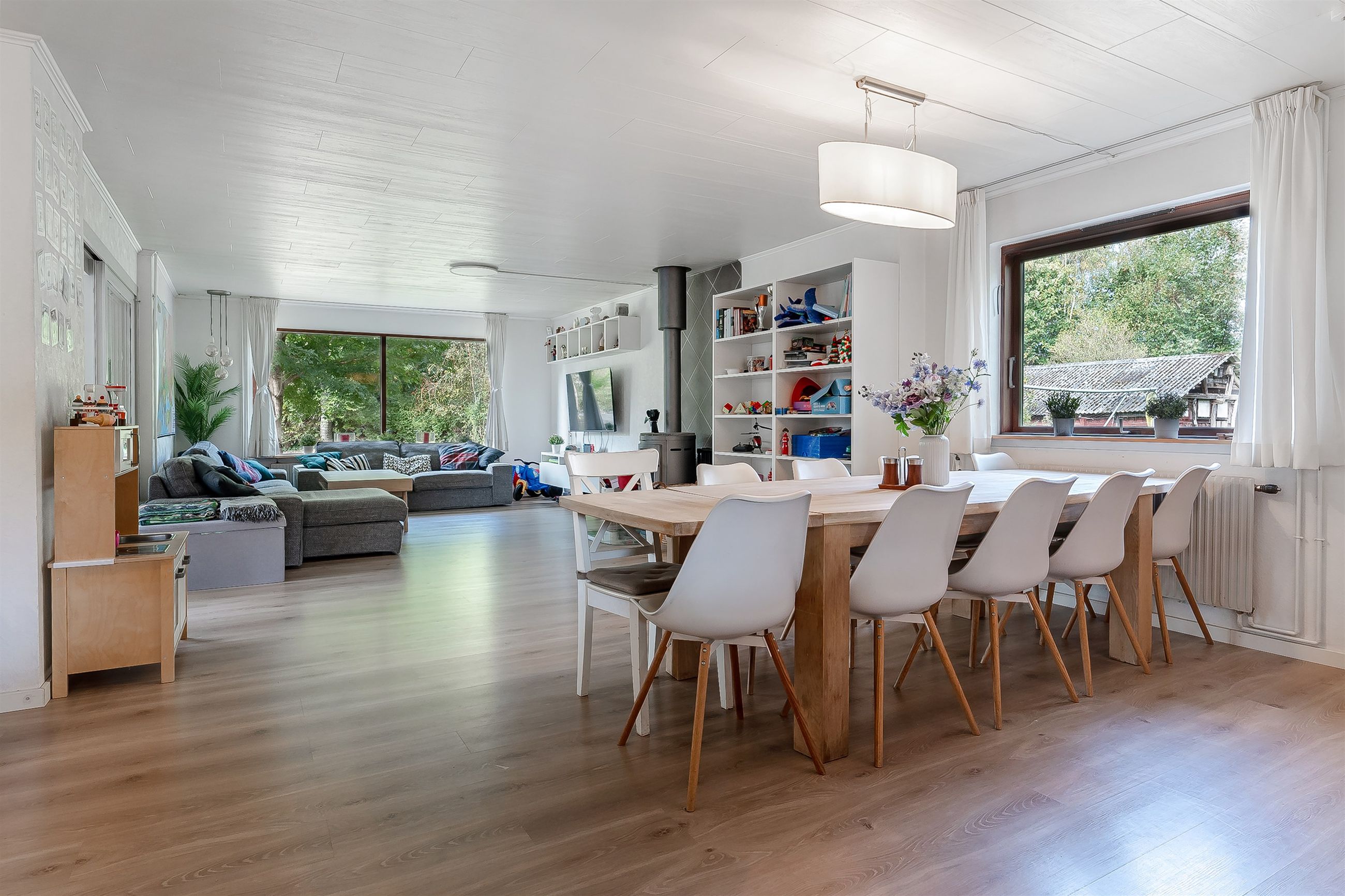 Udestuen er et ekstra plus, der udvider hjemmets hjerte og skaber de perfekte rammer til både hverdag og højtider – forestil jer juletræet til december, eller lange middage med gæster i sommerhalvåret.