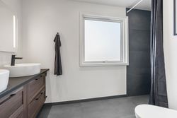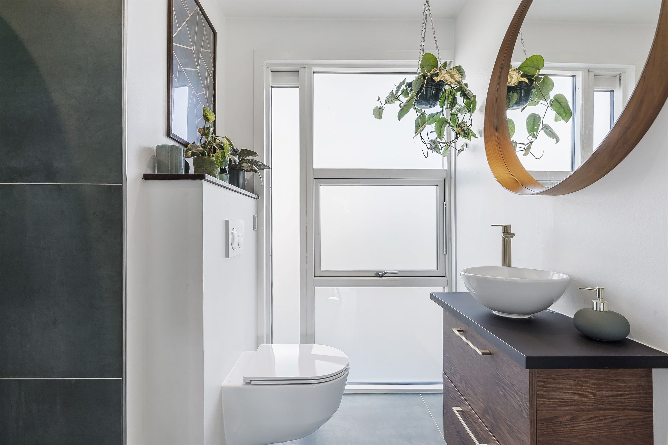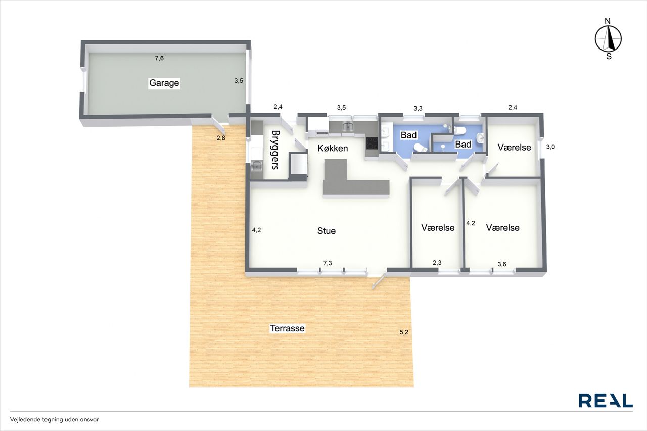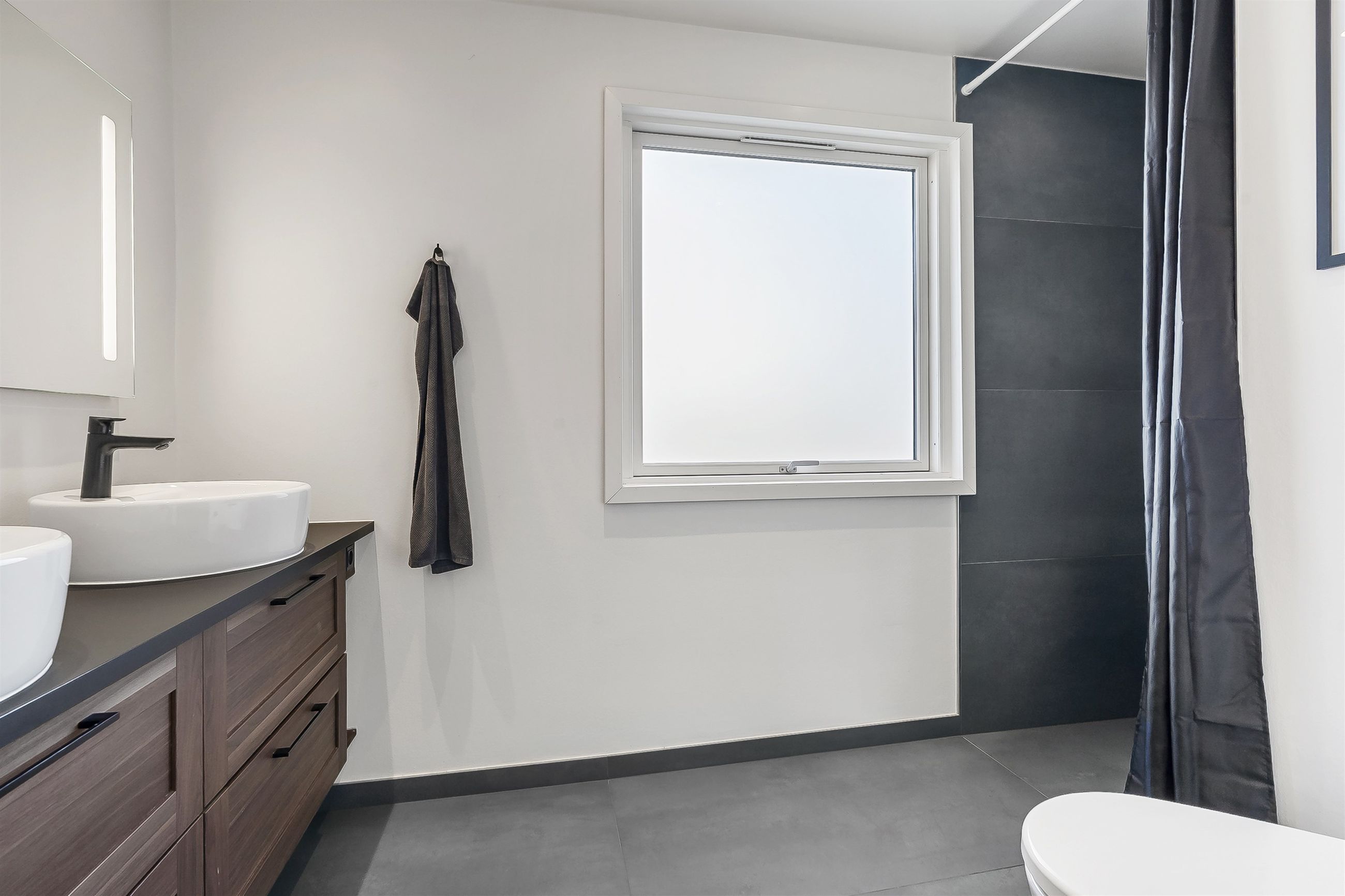 Langs fordelingsgangen finder I tre gode værelser, ideelle til børn, gæster eller kontor – samt to moderne badeværelser, så morgenrutinen glider problemfrit.