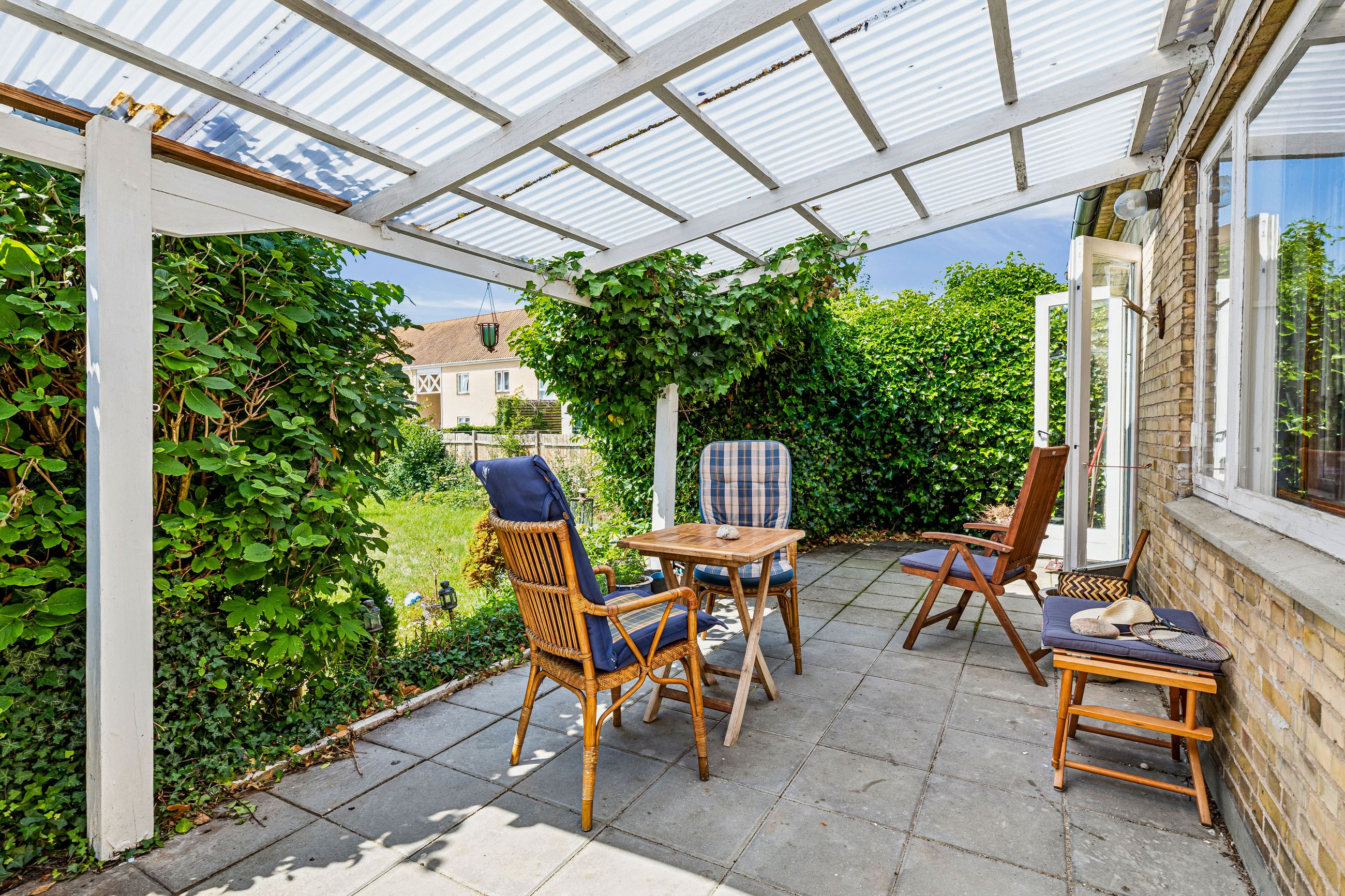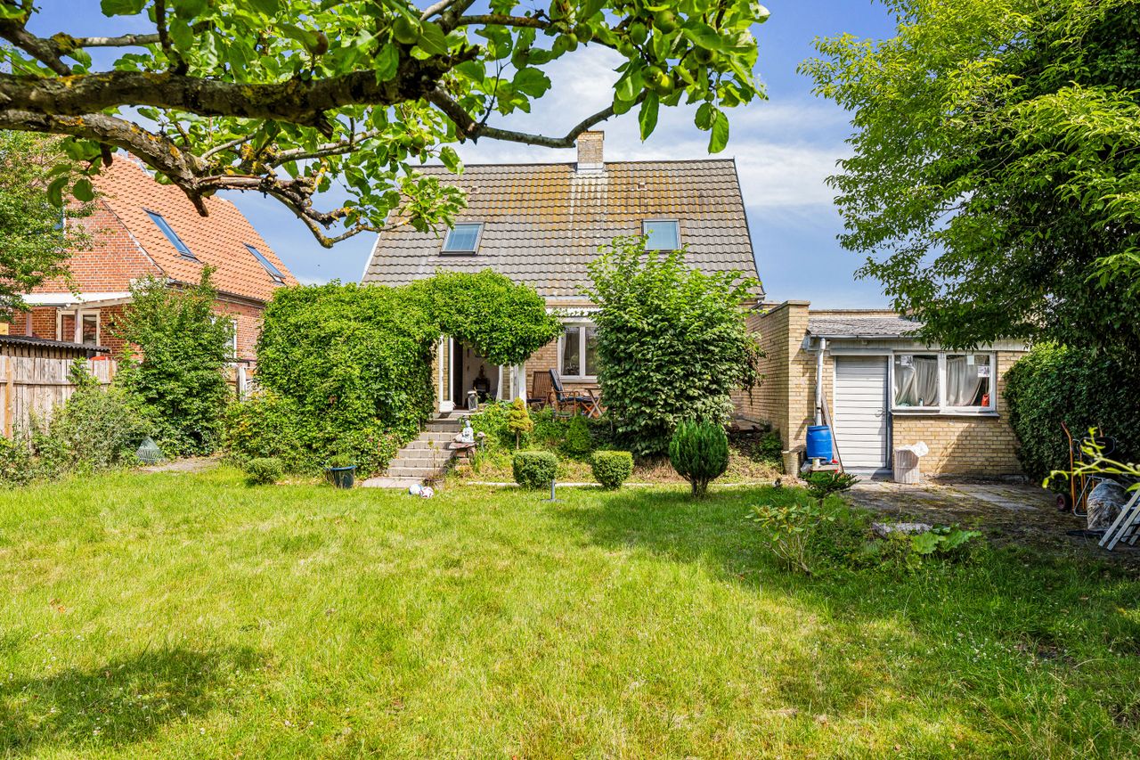 Til ejendommen hører også en garage, som enten kan bruges til bilen eller som ekstra opbevaringsplads.