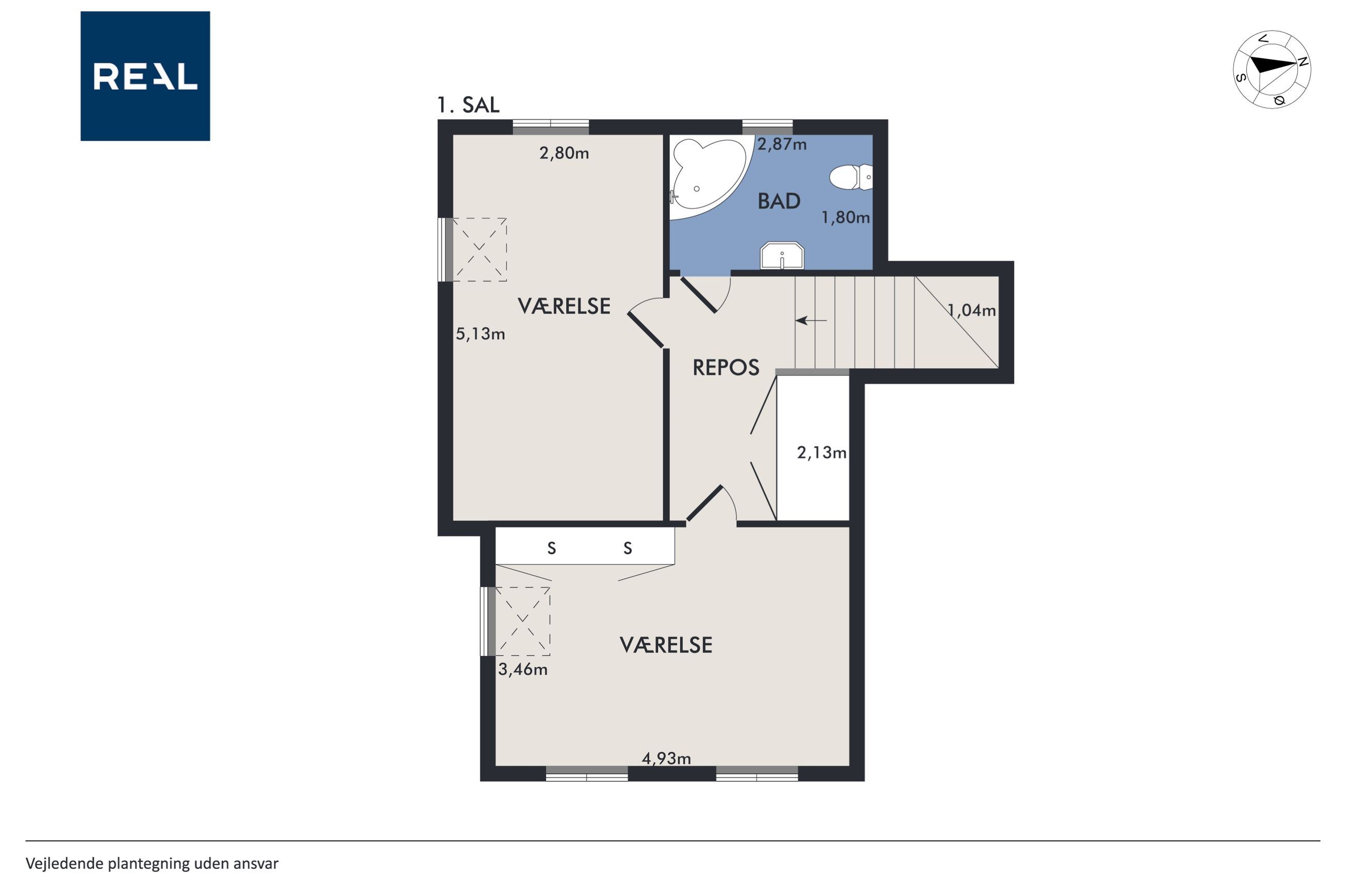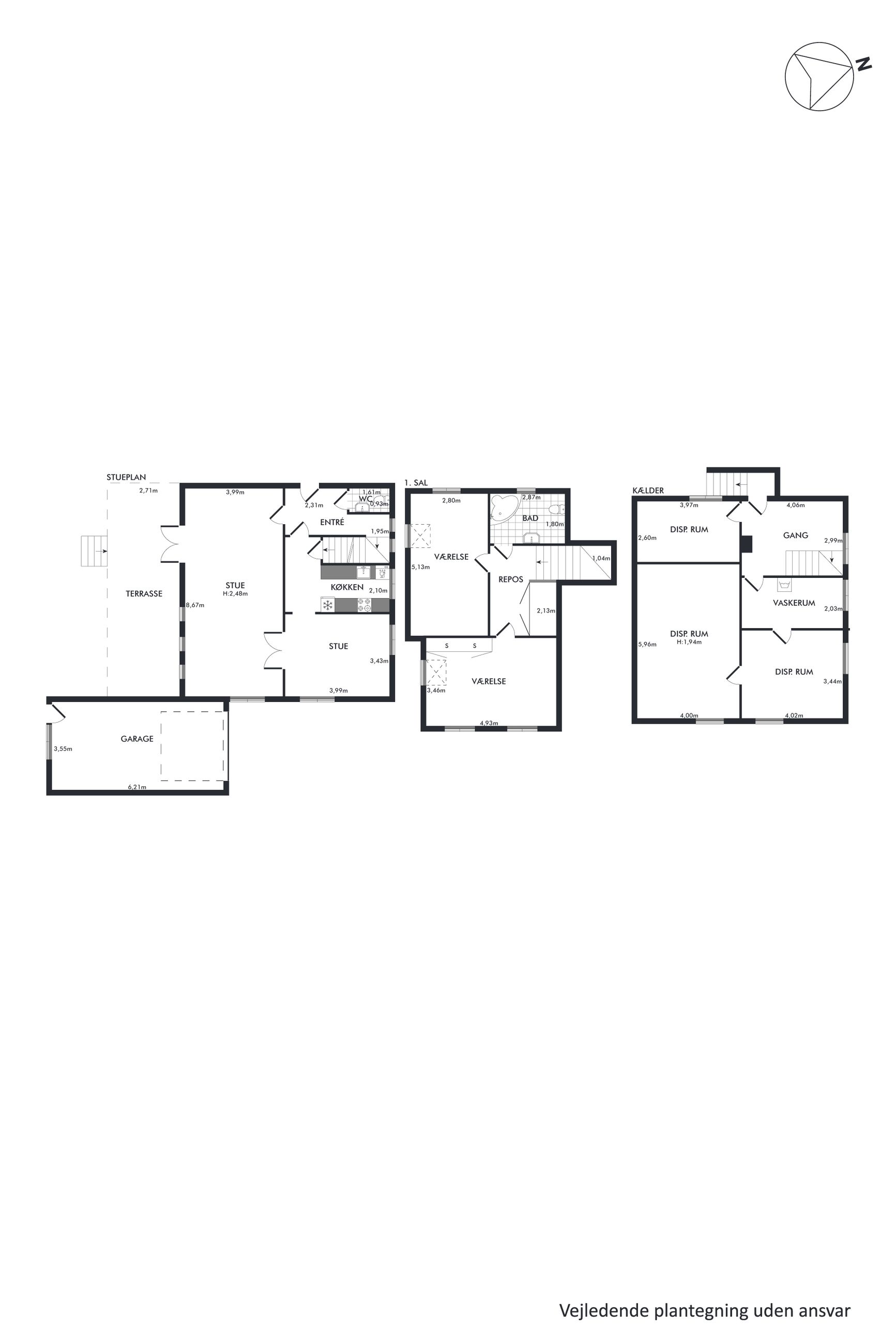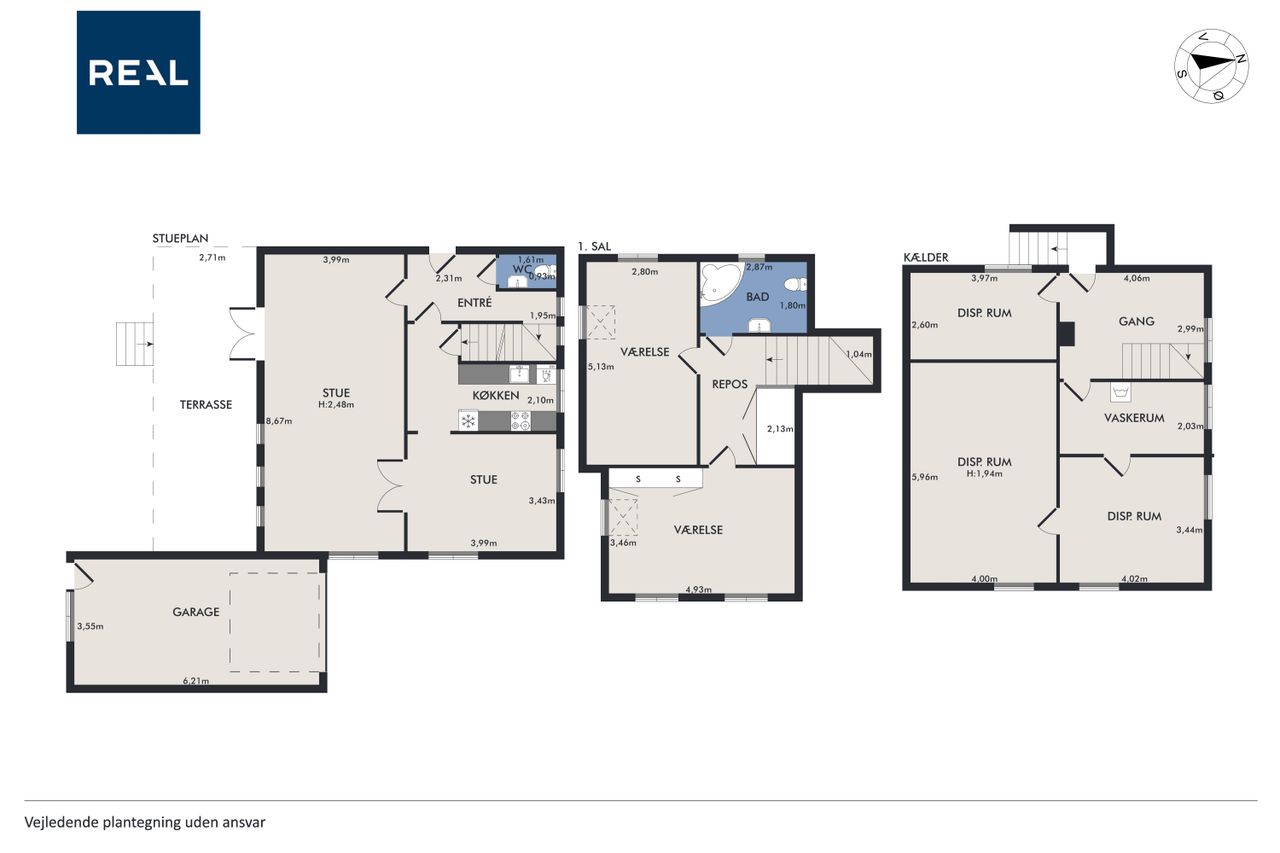 Førstesalen rummer et stort badeværelse samt to gode og rummelige værelser. Har du brug for et ekstra værelse, kan dette etableres med enkle tiltag. Kælderen byder på hele tre disponible rum samt et praktisk vaskerum – ideelt til både opbevaring, hobbyrum eller hjemmekontor.