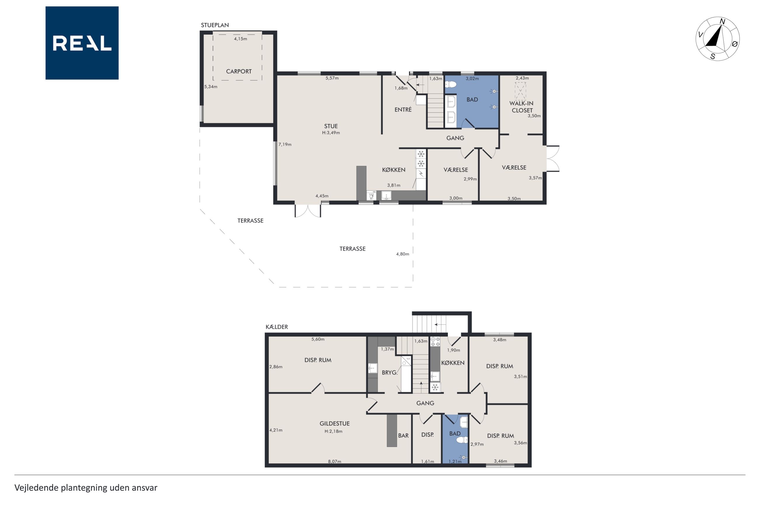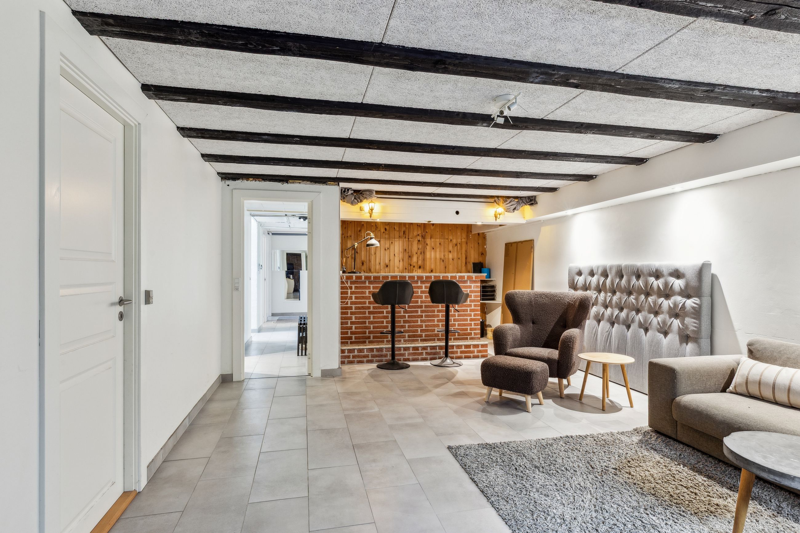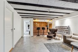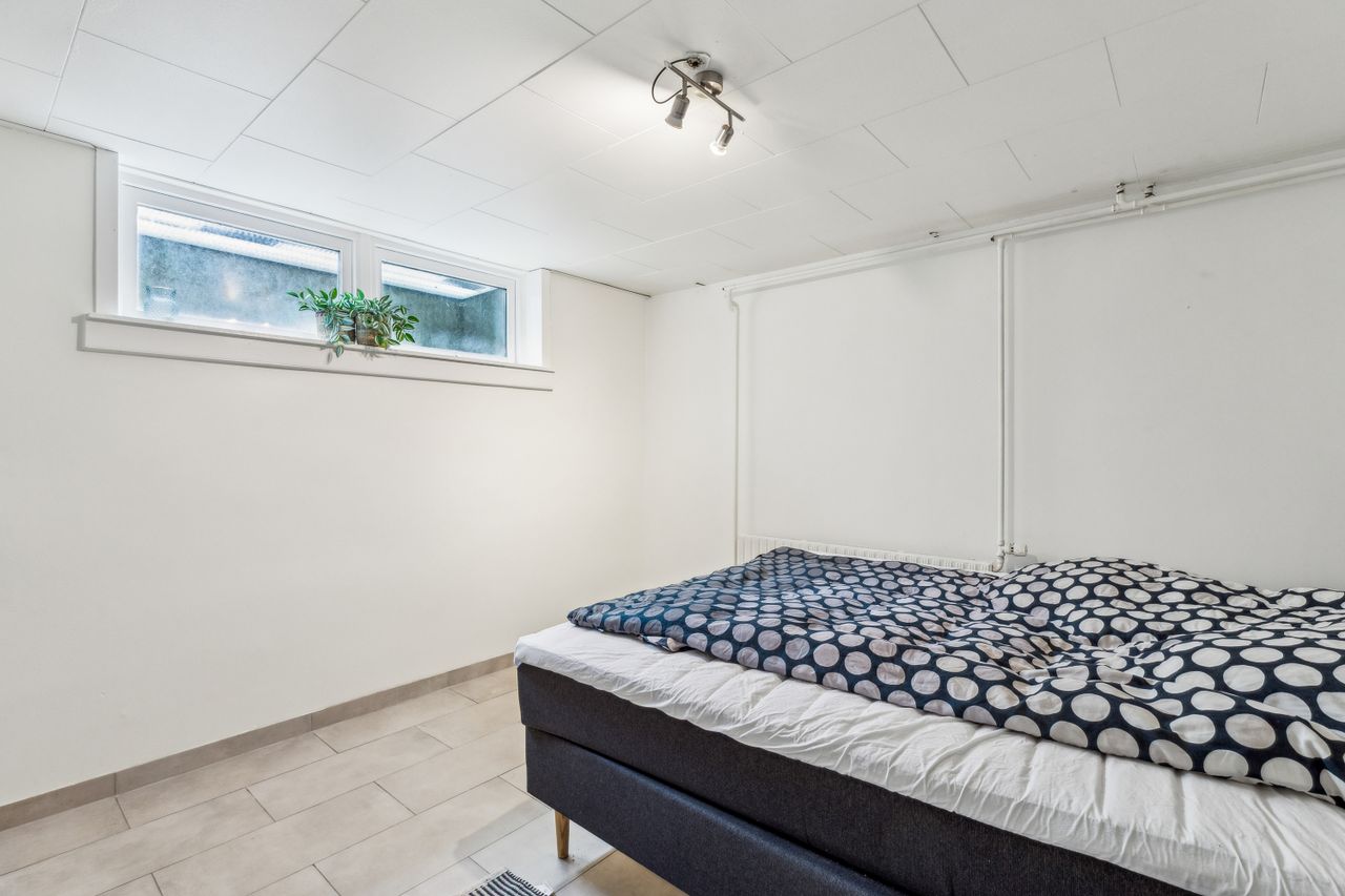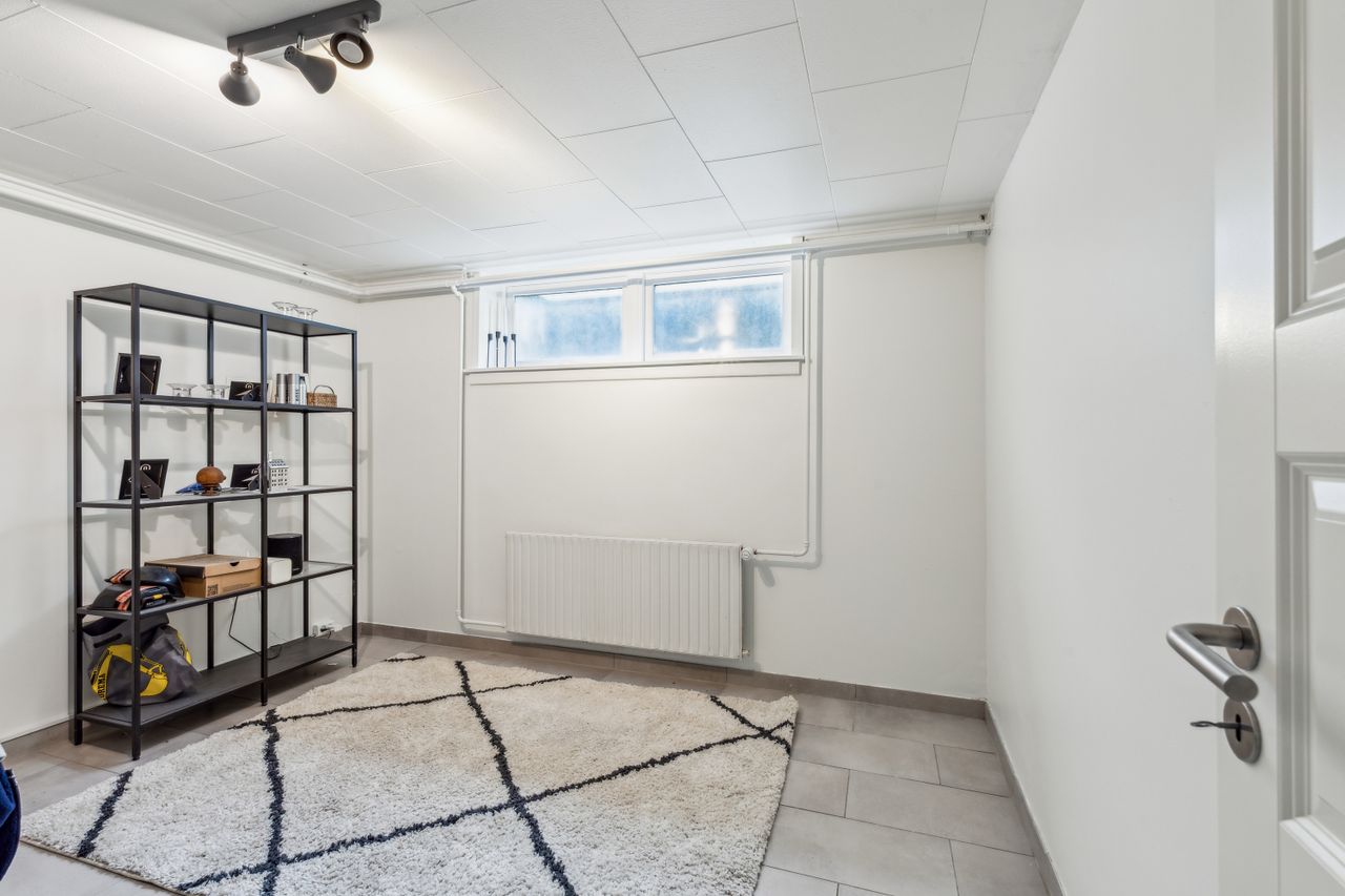 Ejendommens underetage byder på hele 120 højloftede og tørre kvadratmeter, som åbner op for et væld af muligheder. Her finder du blandt andet en indbydende gildesal med integreret bar, perfekt til sociale arrangementer, hobbyprojekter eller afslappede aftener med venner og familie. Dertil kommer flere disponible rum, der kan benyttes til opbevaring, hjemmekontor eller som gæsteværelser. Der er desuden etableret et lækkert badeværelse og direkte udgang, hvilket giver et ekstra niveau af funktionalitet og fleksibilitet.