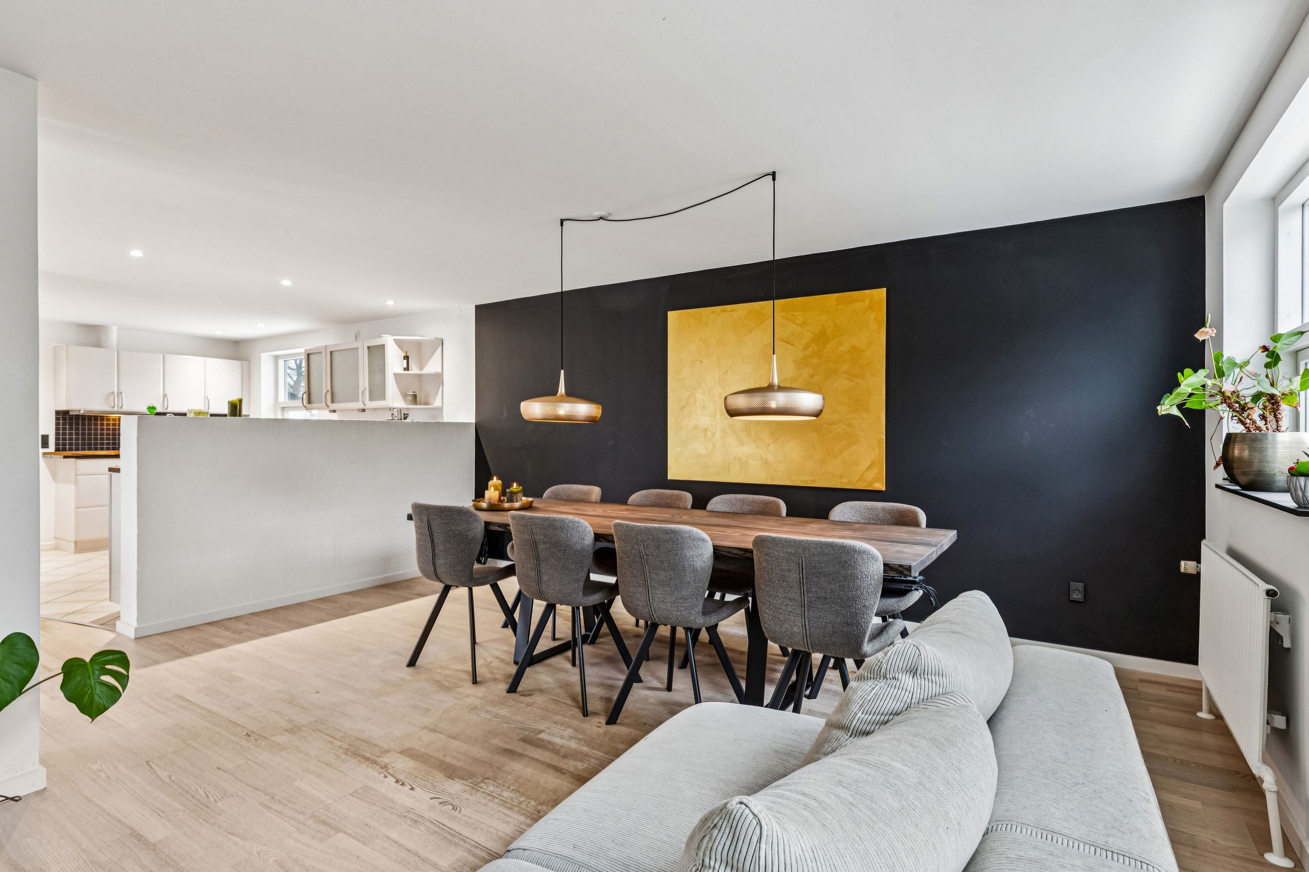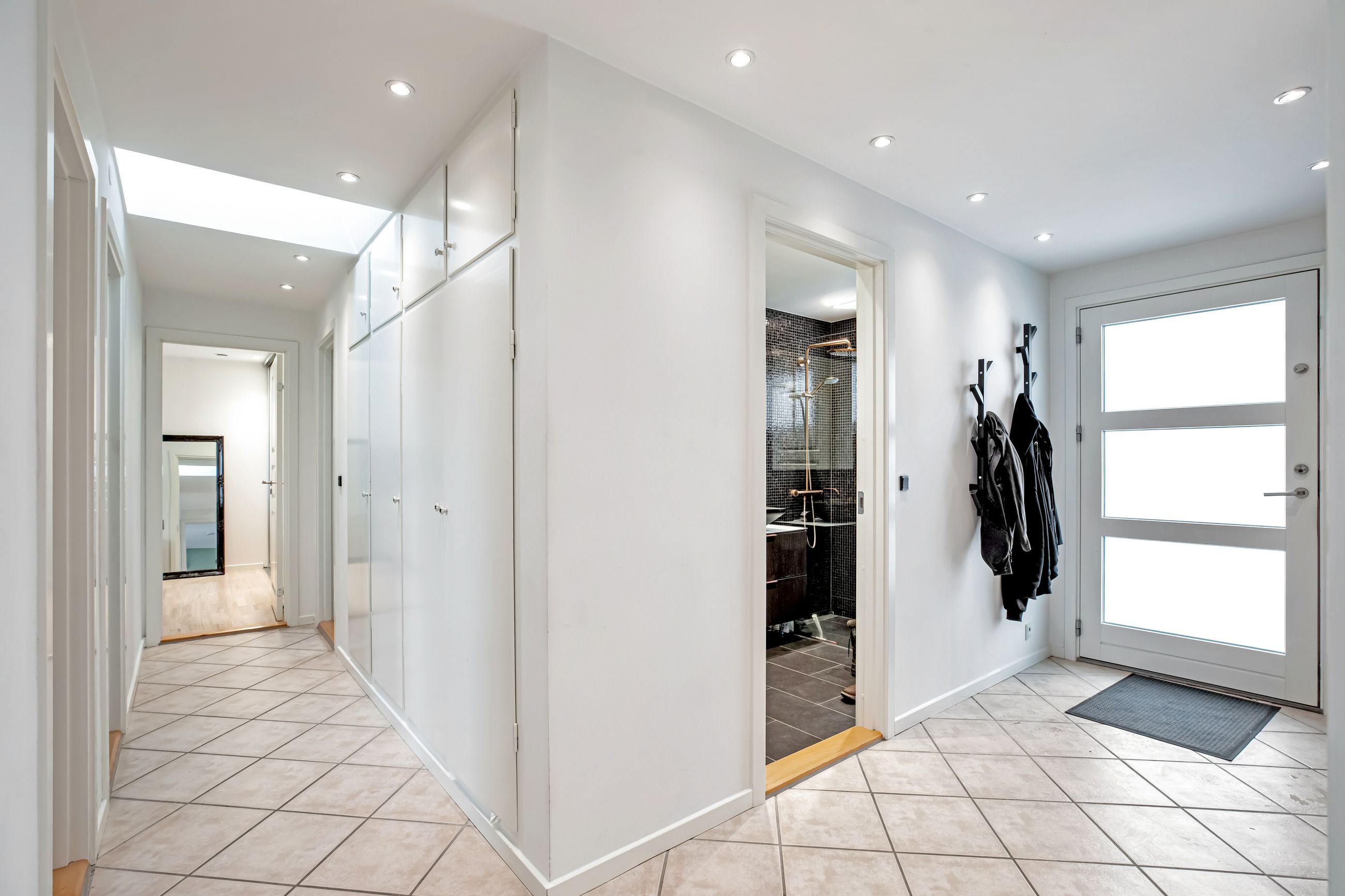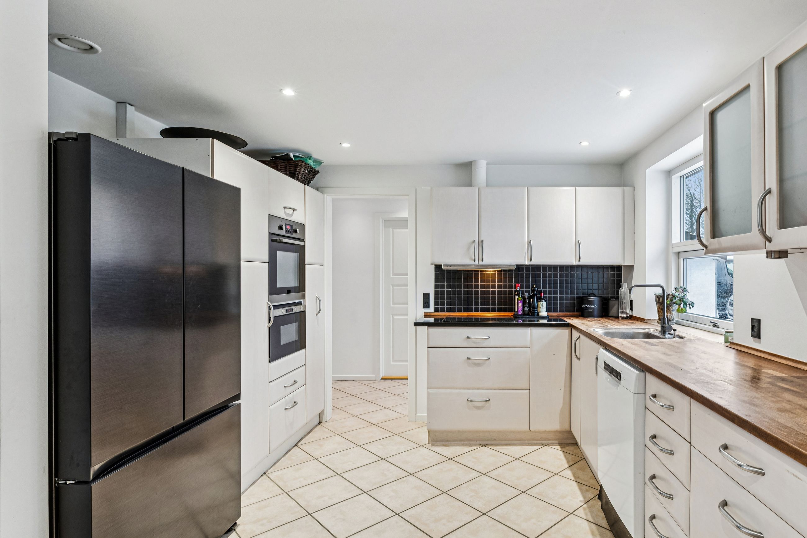 Derudover findes et stort og praktisk bryggers med egen indgang, som gør hverdagen nem og funktionel. Husets naturlige samlingspunkt er det store, åbne køkken-alrum i direkte forbindelse med stuen, hvor der er god plads til både hverdag og gæster, og hvor familien kan samles på tværs af aktiviteter. Det er også herfra der er direkte udgang til den vestvendte terrasse/have hvor man kan nyde solen til den går ned.