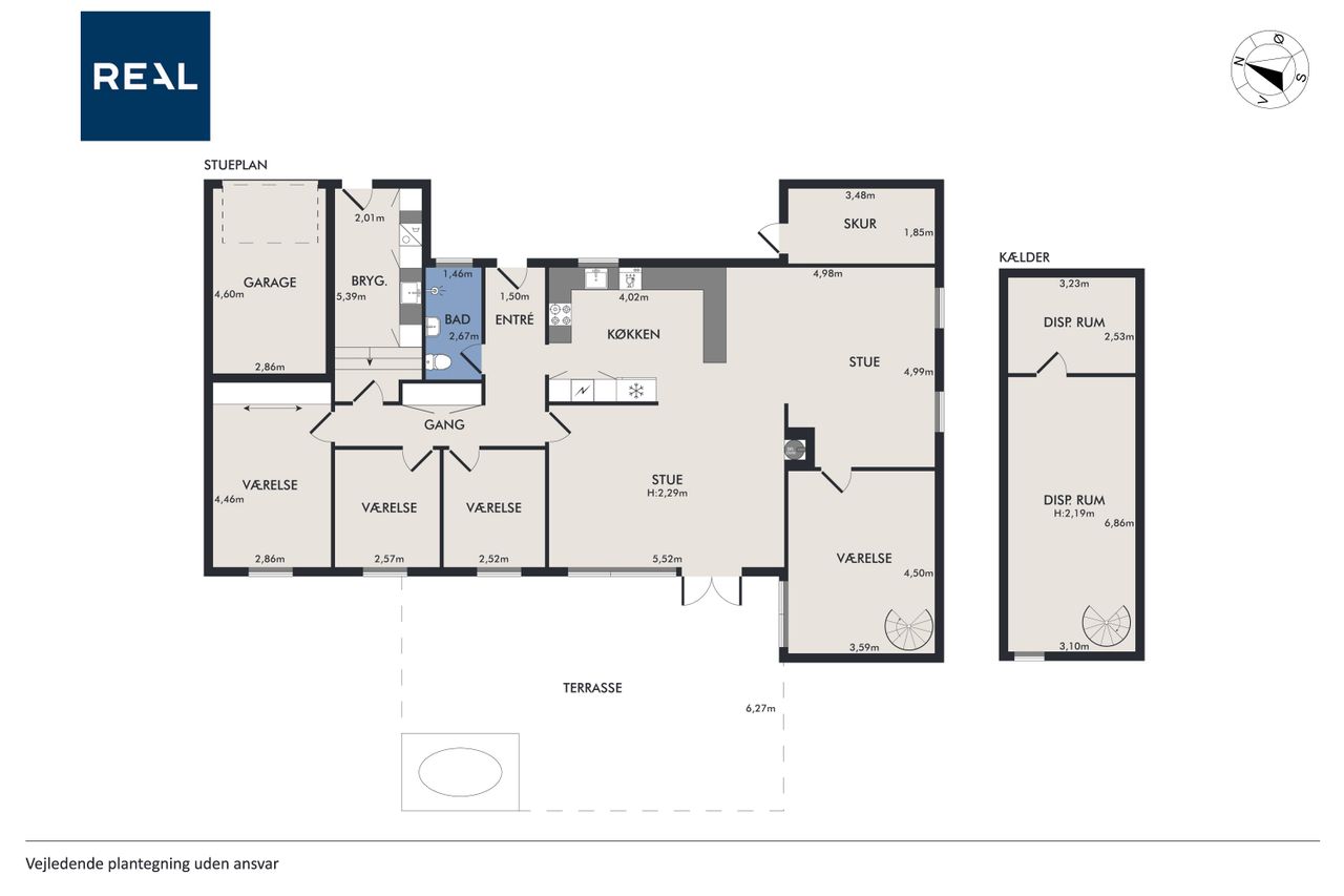 Den højloftede kælder giver ekstra anvendelsesmuligheder og kan eksempelvis benyttes som gæsteværelse, teenageafdeling, hobbyrum eller hyggelig slyngelstue – kun fantasien sætter grænserne.